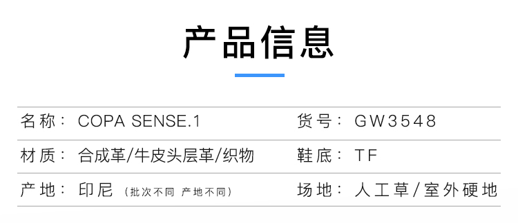 ADIDAS/阿迪达斯COPA SENSE.1 TF碎钉高端足球鞋男GW3548