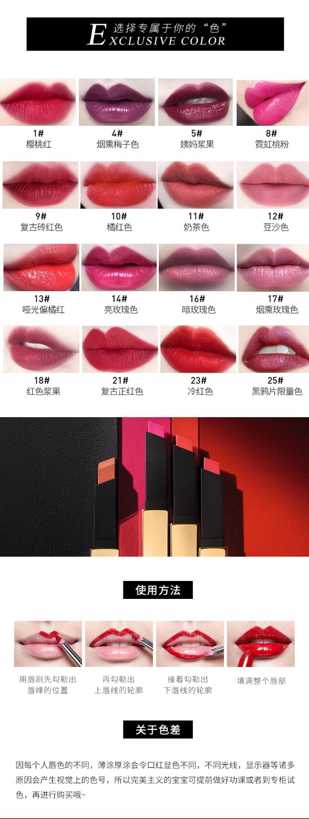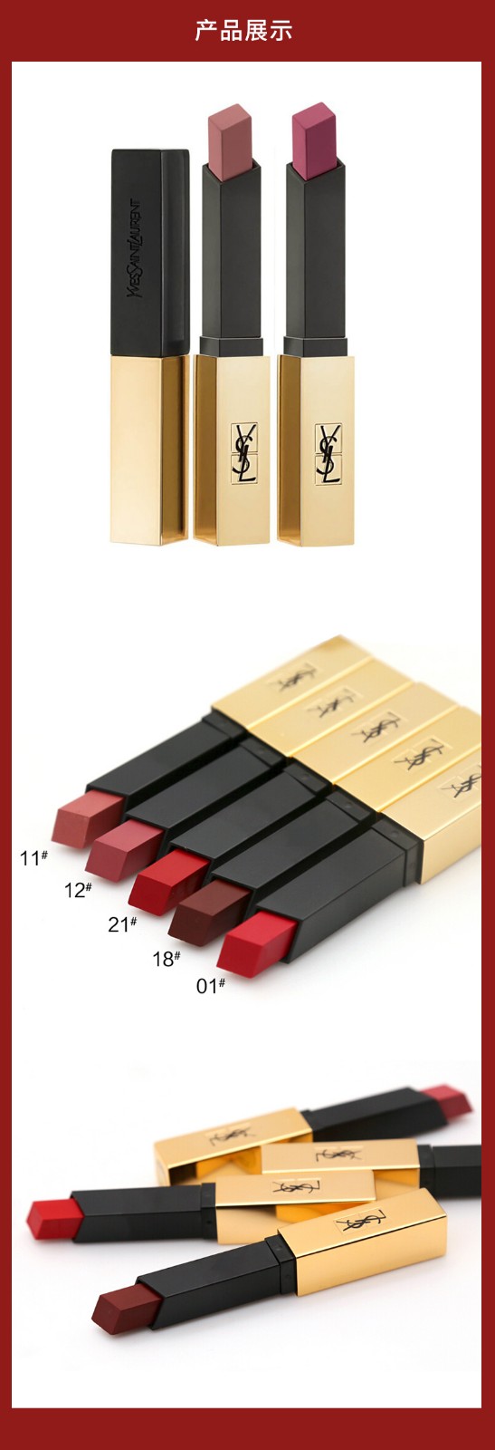 YSL/圣罗兰2018小金条哑光方管细管唇膏口红 21#亮红色 礼盒套装