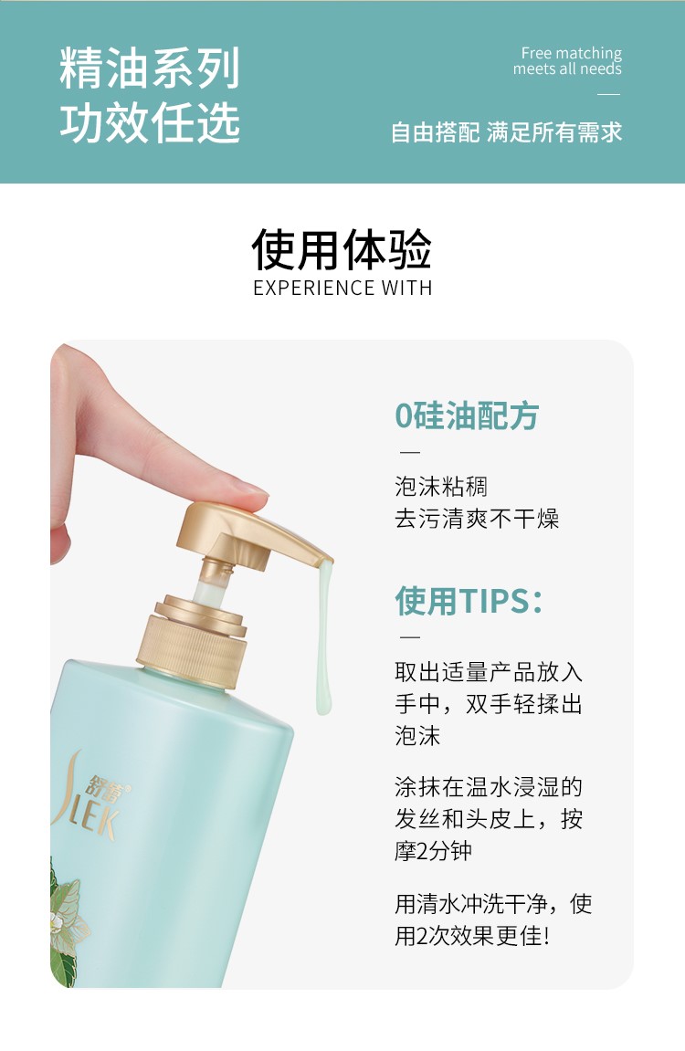 [透小蜜心选]【活动价¥49.9/2瓶】舒蕾SLEK 绿茶籽控油去屑/山茶花/参姜洗发露 500ml*2(赠薰衣草舒缓沐浴露380ml一瓶/16袋装8ml洗头水/200ml洗发水)(48小时内)
