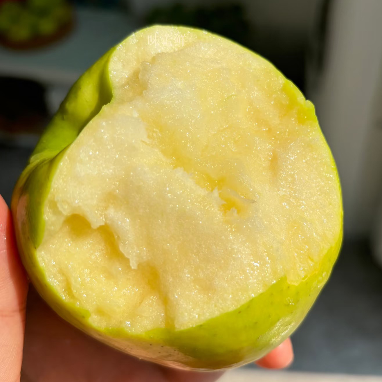 咬一口,果肉很硬实脆爽,入口纯甜无酸,是立冬后口感才巅峰的甜蜜苹果