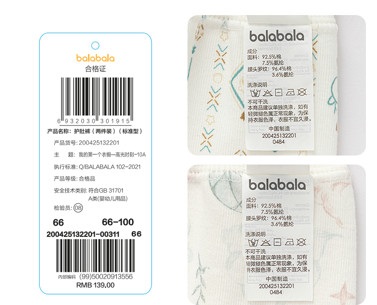 巴拉巴拉婴儿护肚裤两件装秋冬2025新款高腰护肚