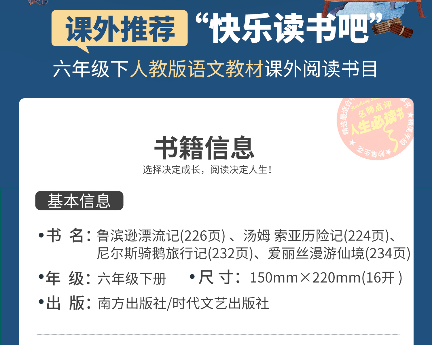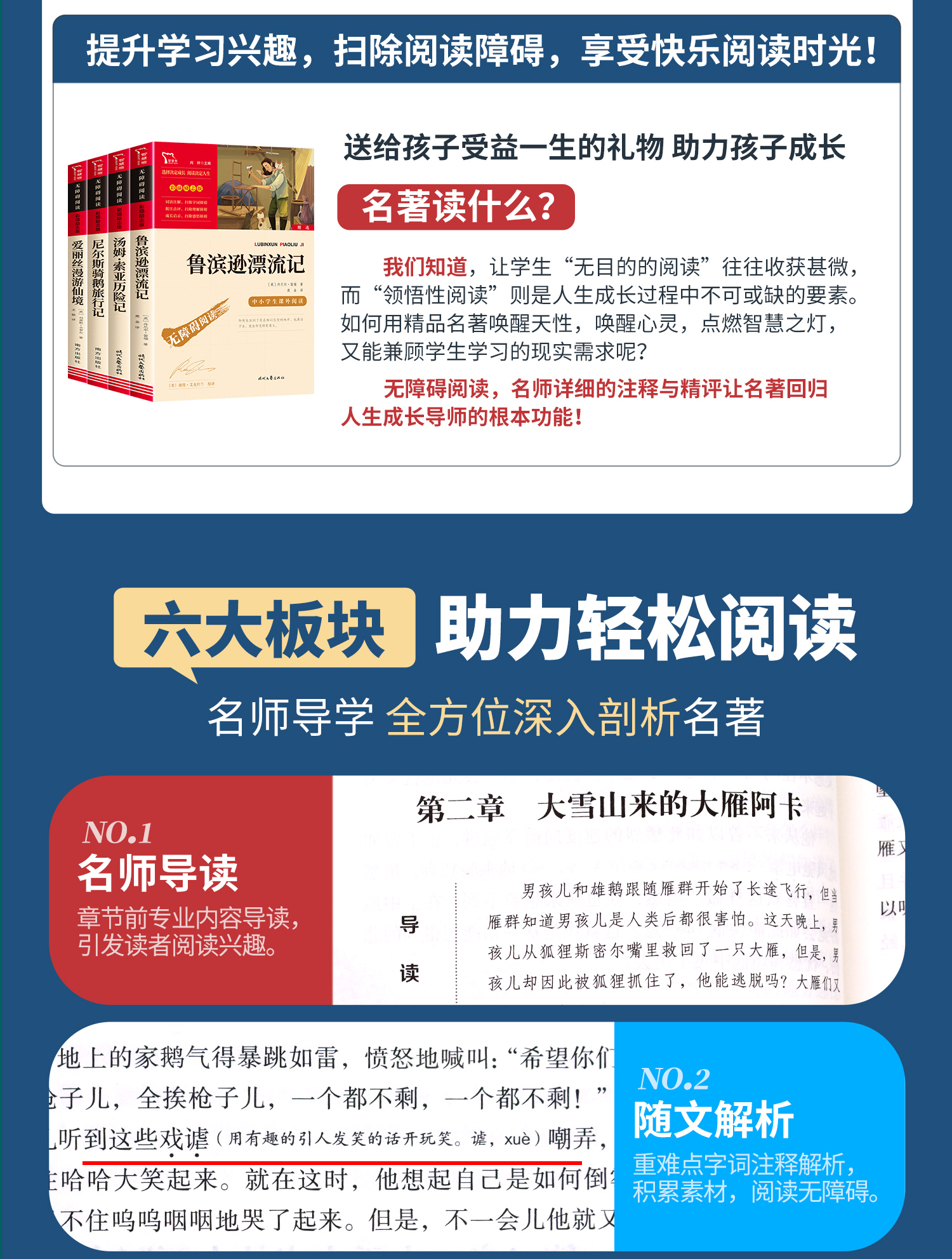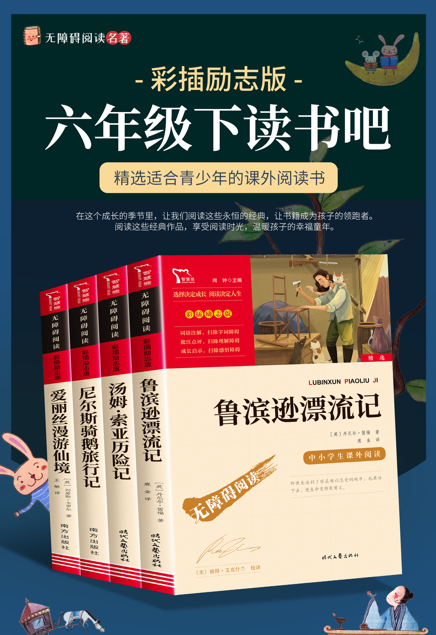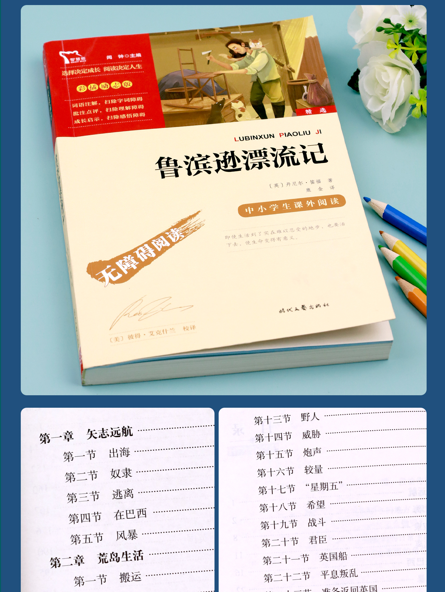 鲁滨逊漂流记六年级下册必读的课外书原著老师推荐书目爱丽丝梦游仙境漫游奇尼尔斯骑鹅旅行记汤姆索亚历险记全套快乐读书吧