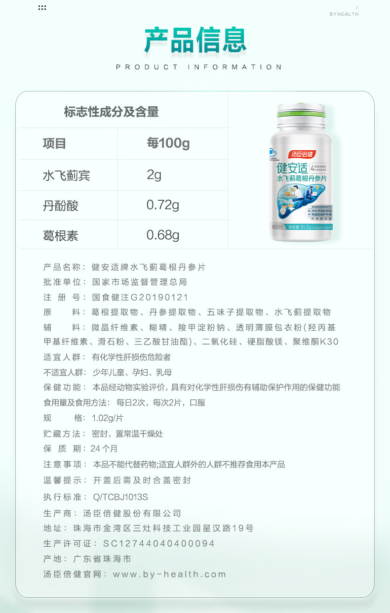 汤臣倍健水飞蓟葛根丹参片 120片/盒