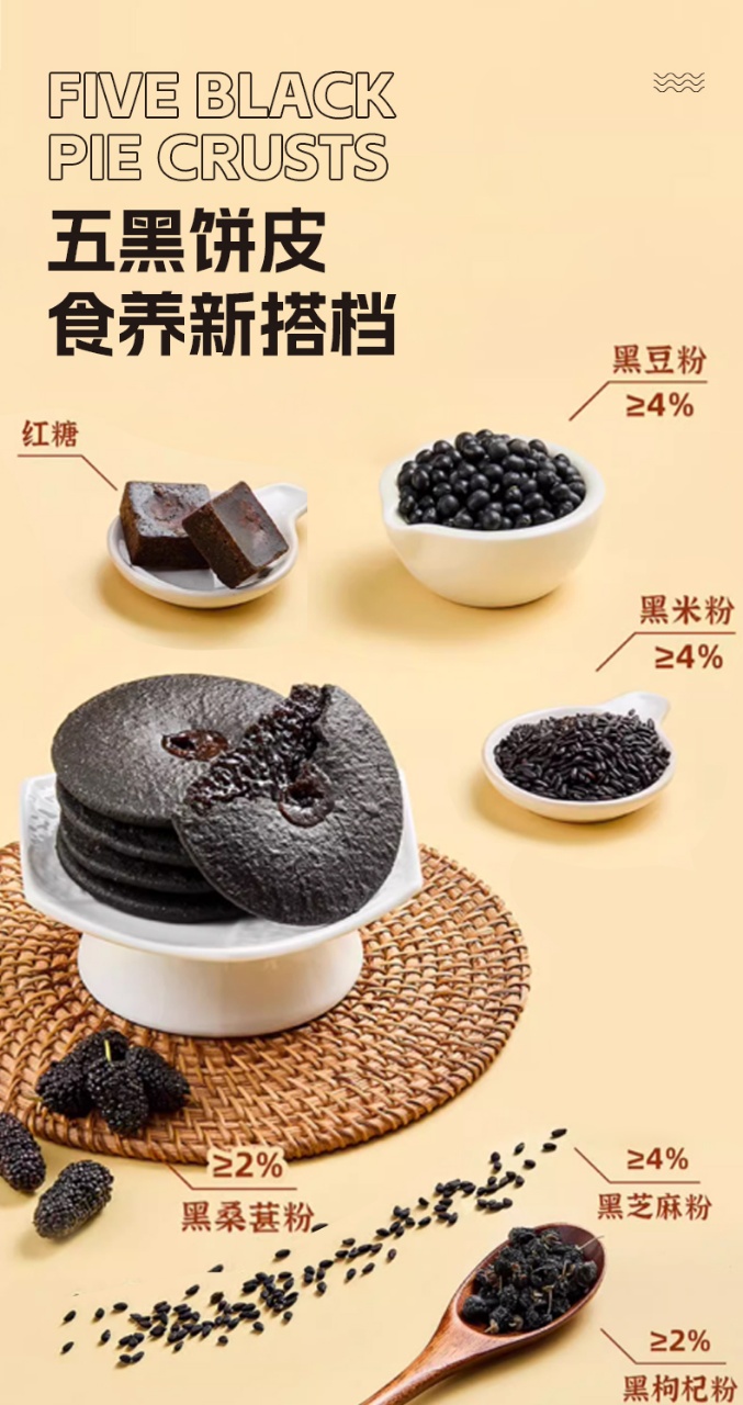 【食简零五黑粗粮饼】采用古法新制的创新工艺,将中医"五黑固本"智慧融入现代轻食: