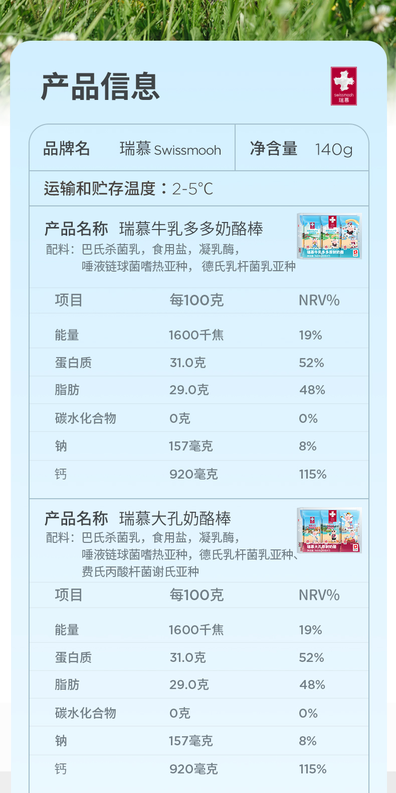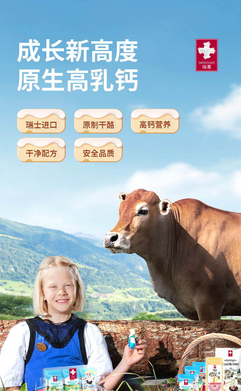 预售 瑞慕瑞士原装进口儿童补钙芝士奶酪棒奶酪140g*2袋/500g