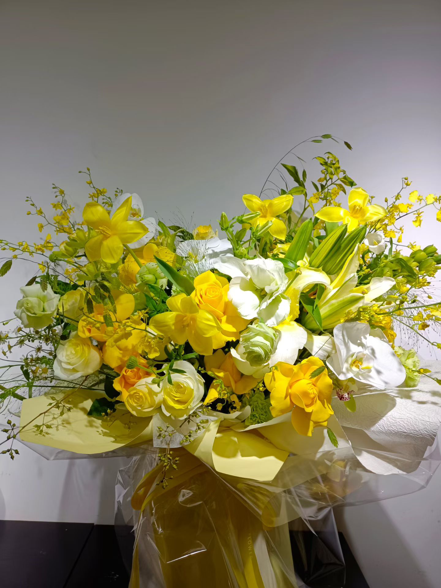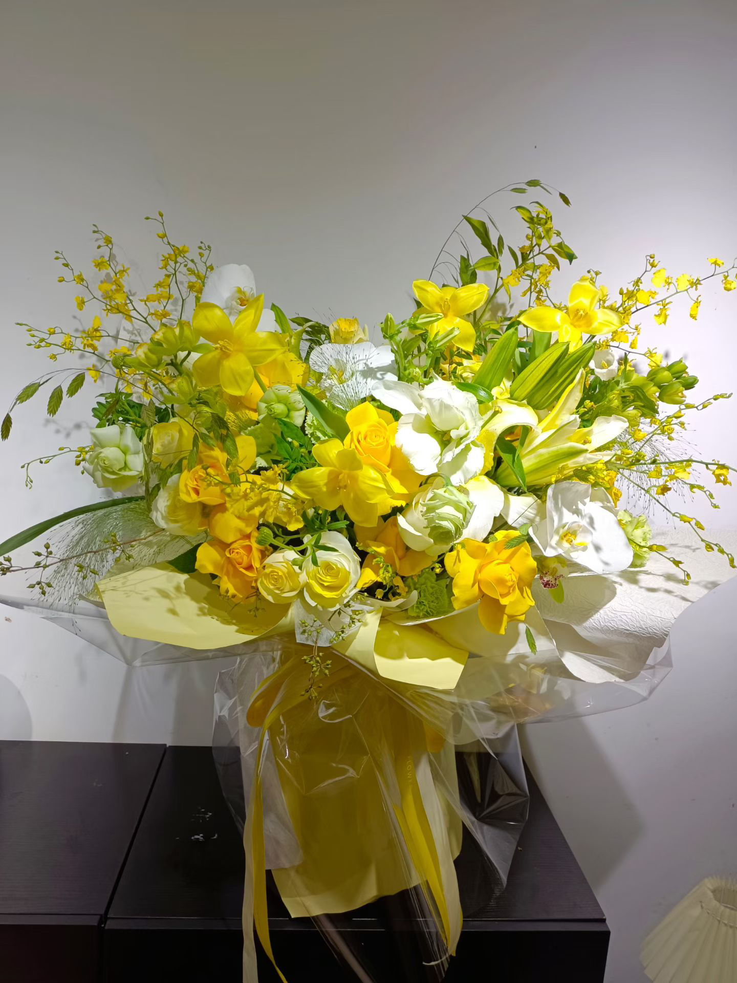 《晴柔》郁金香百合跳舞兰亮色调花束