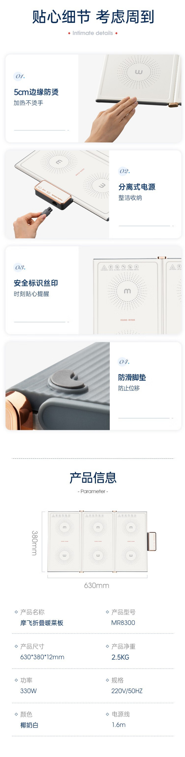 摩飞电器(13537) 折叠暖菜板热菜板多功能家用方形餐桌饭菜保温板加热暖菜板垫 一代轻薄折叠款MR8300
