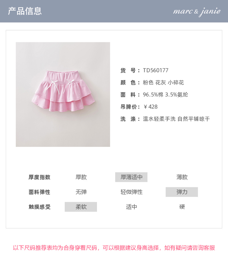 马克珍妮甜心芭蕾女童蝴蝶结蛋糕半裙2026年春装新款560177