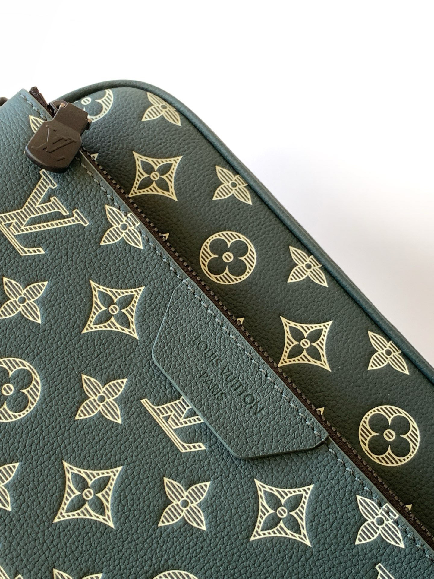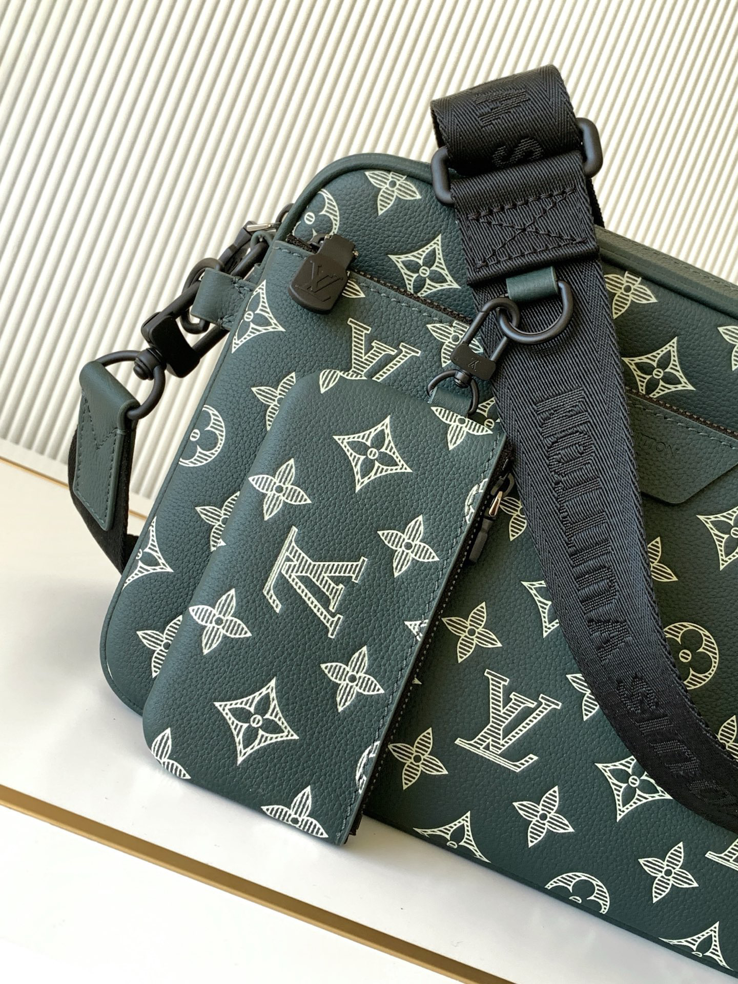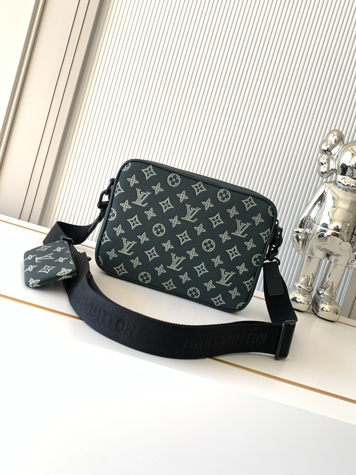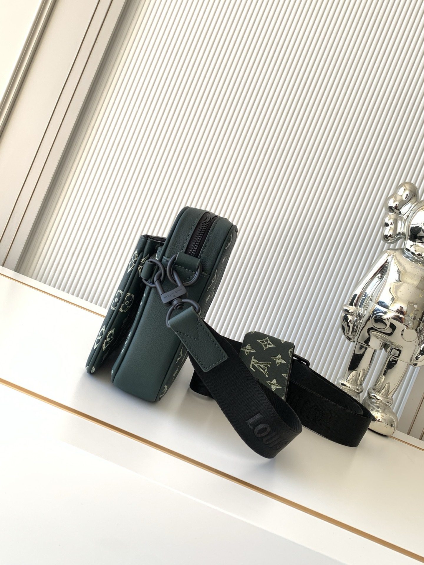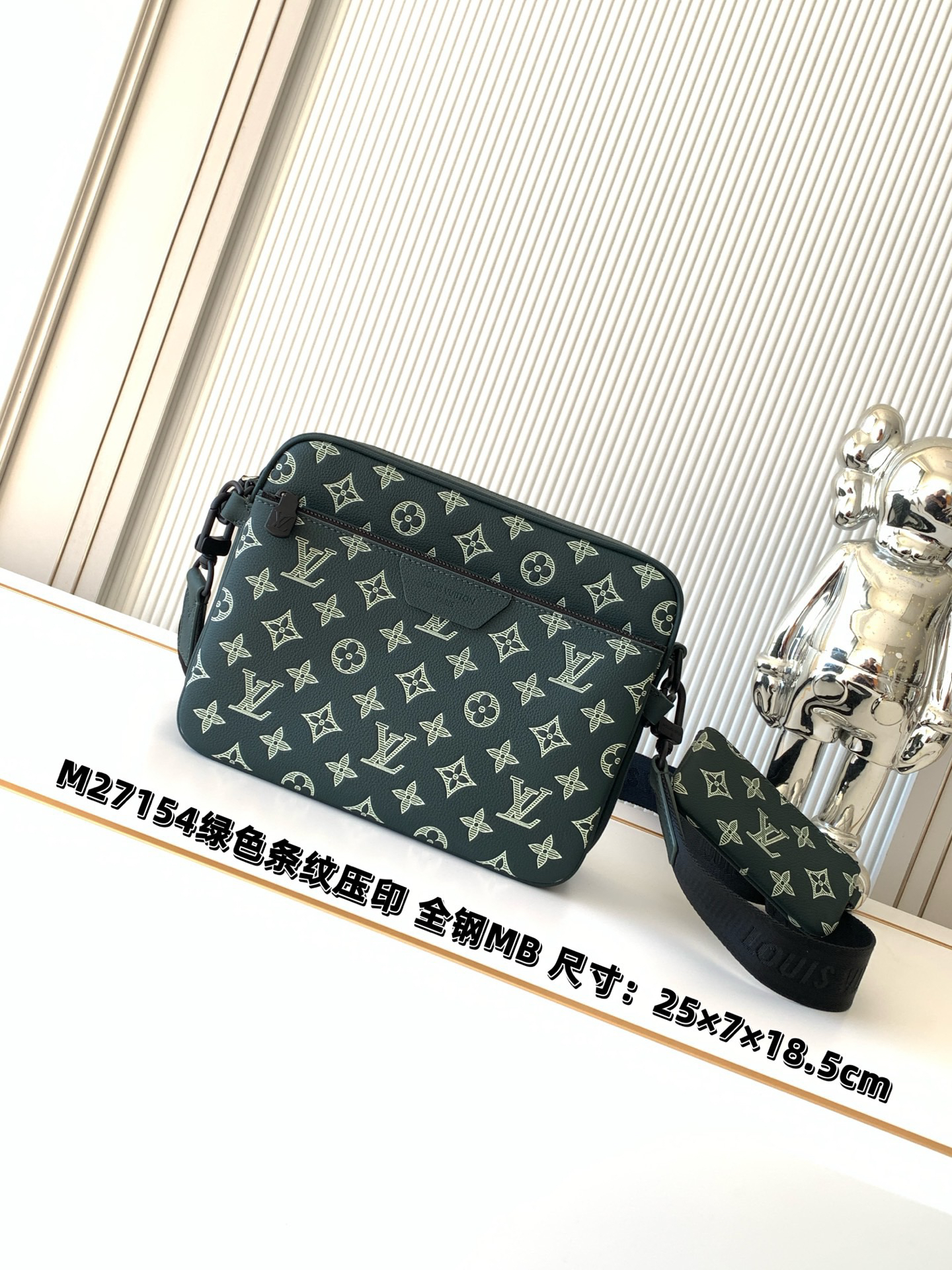 秋冬特惠💰1350 渠道级LV【全钢五金 MB163c01变码芯片】te级LV 全套包装 M27154深绿色条纹压花 本款 Trio Messenger 邮差包