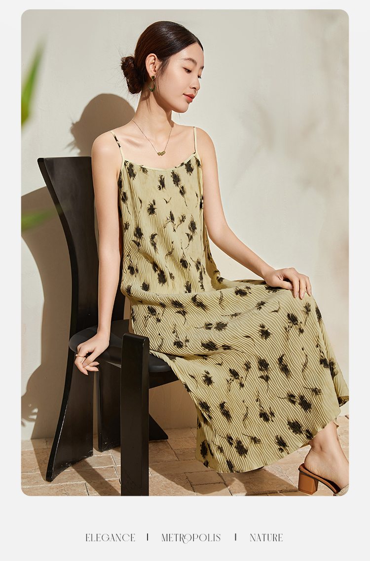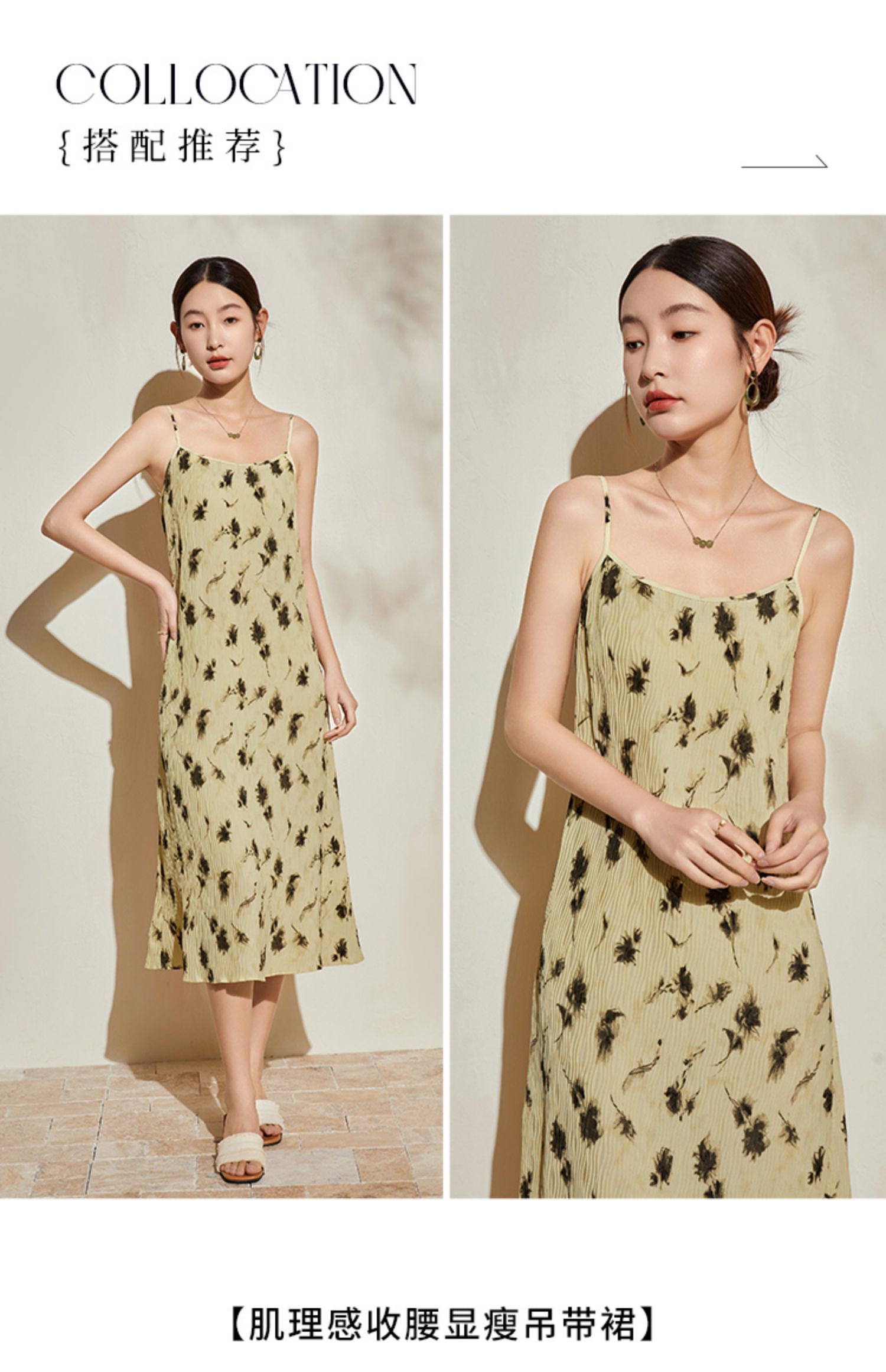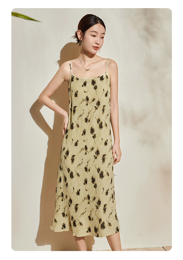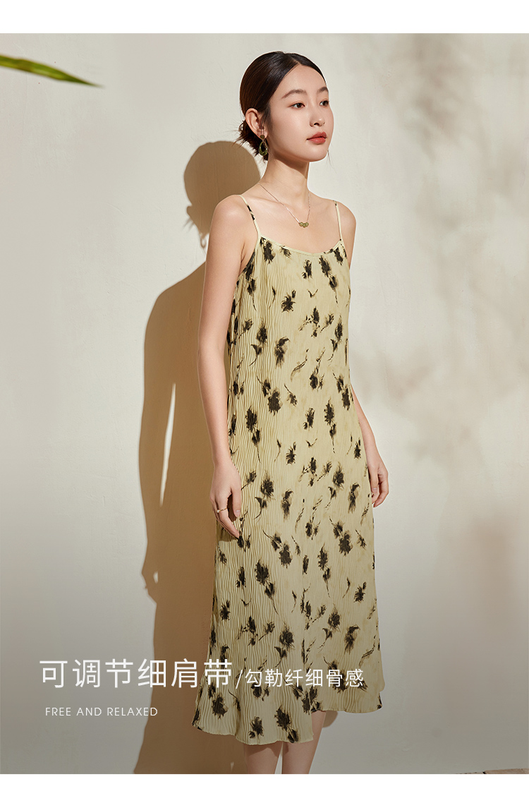 【专属特价】熙世界夏季轻国风水墨晕染印花吊带裙子度假风连衣裙女