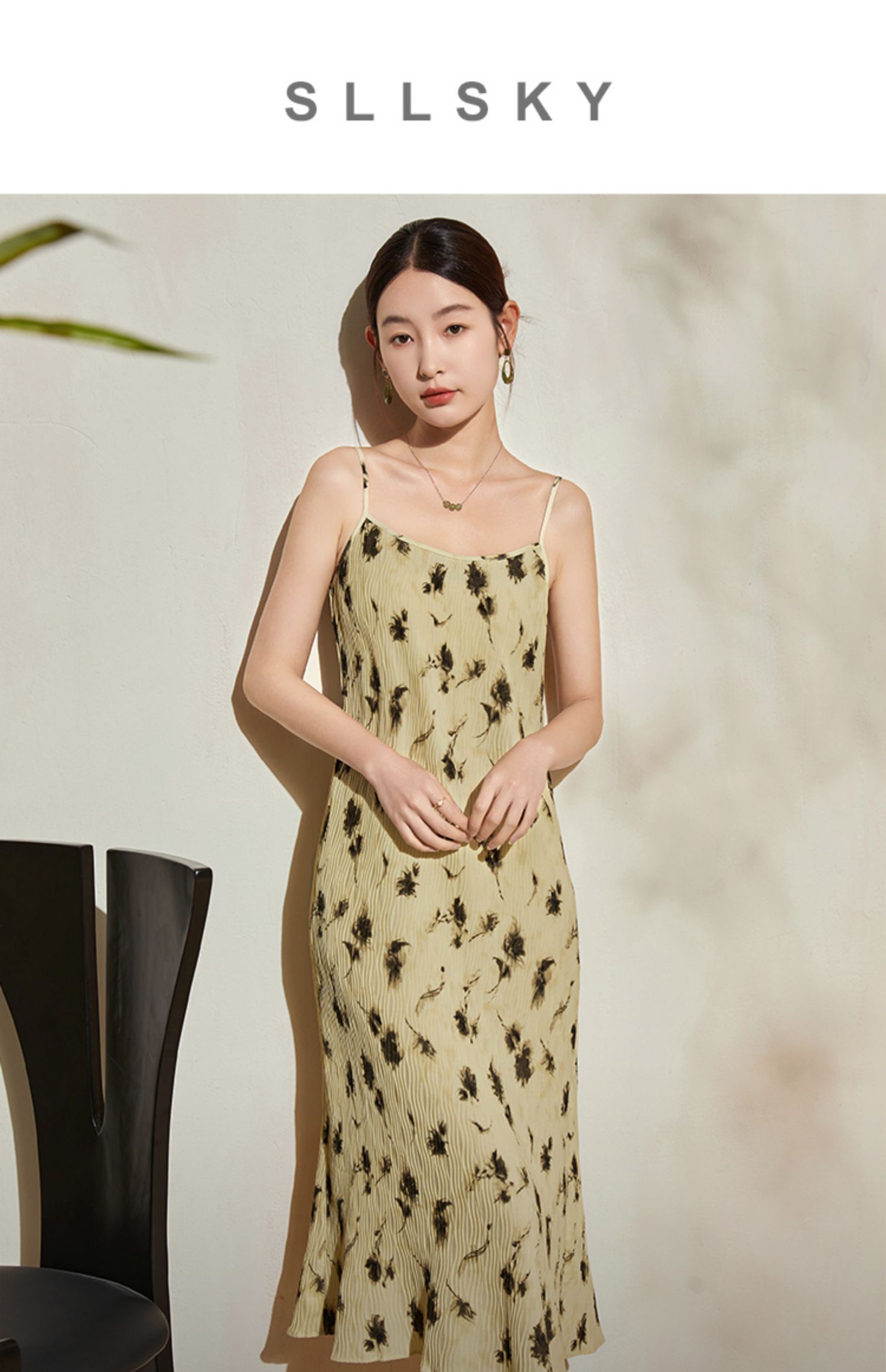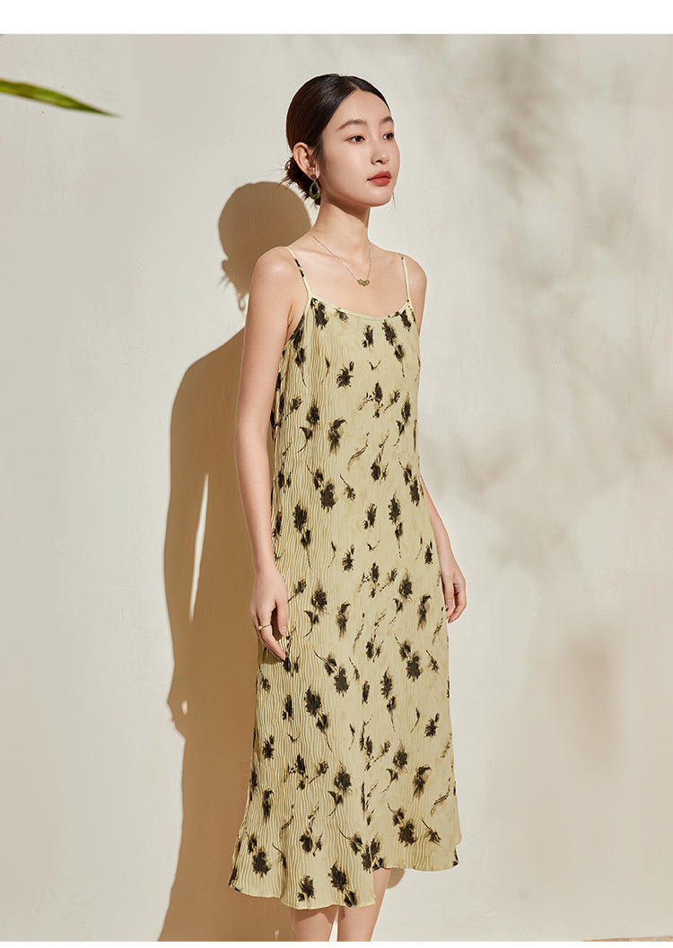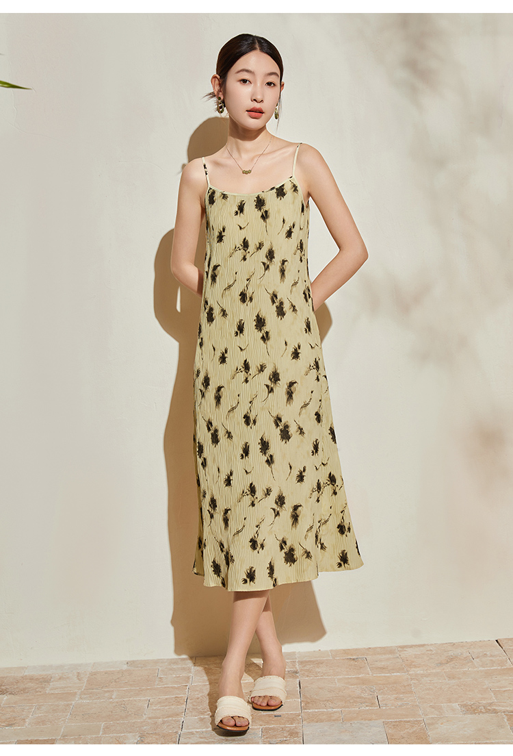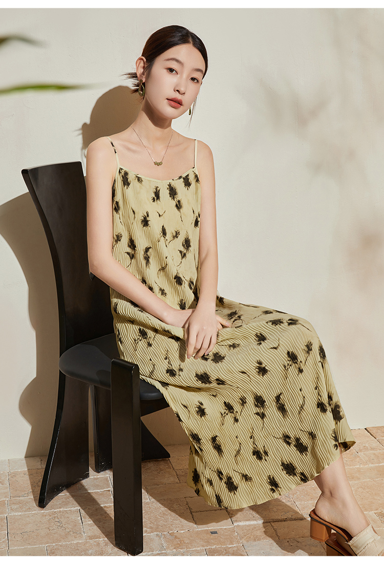 【专属特价】熙世界夏季轻国风水墨晕染印花吊带裙子度假风连衣裙女
