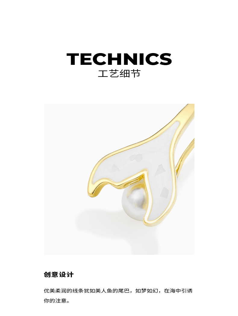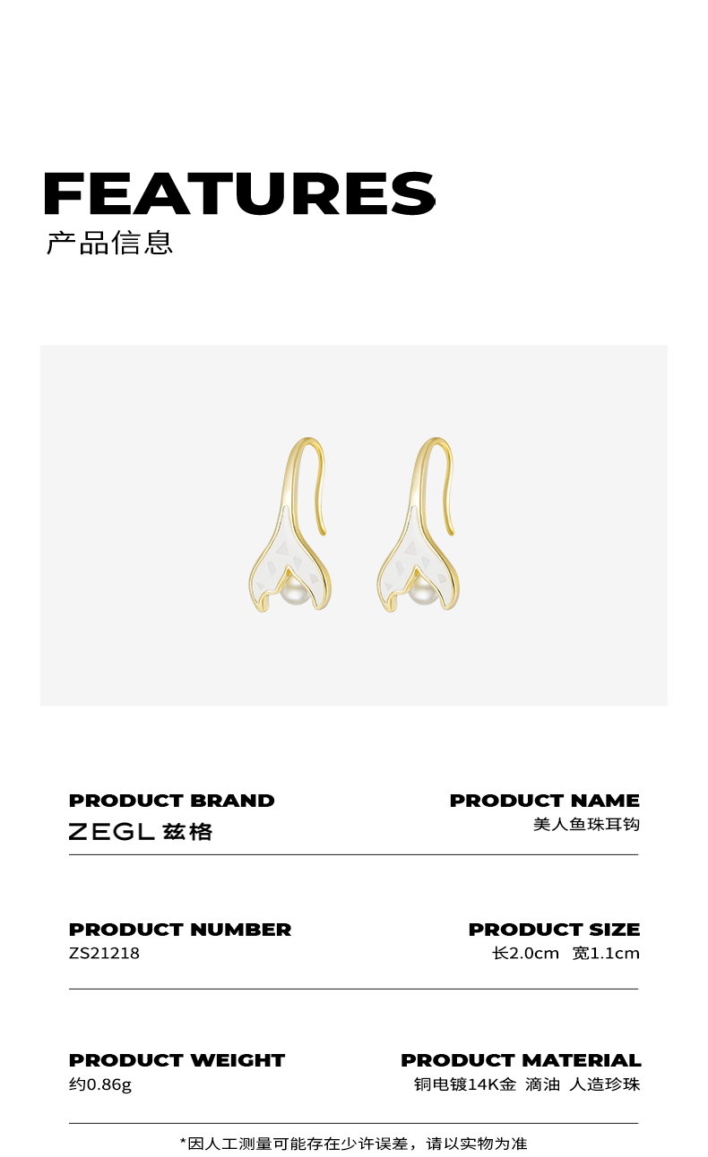 ZEGL设计师人造珍珠鱼尾耳钩款耳环女夏季小众耳钉气质高级感耳饰