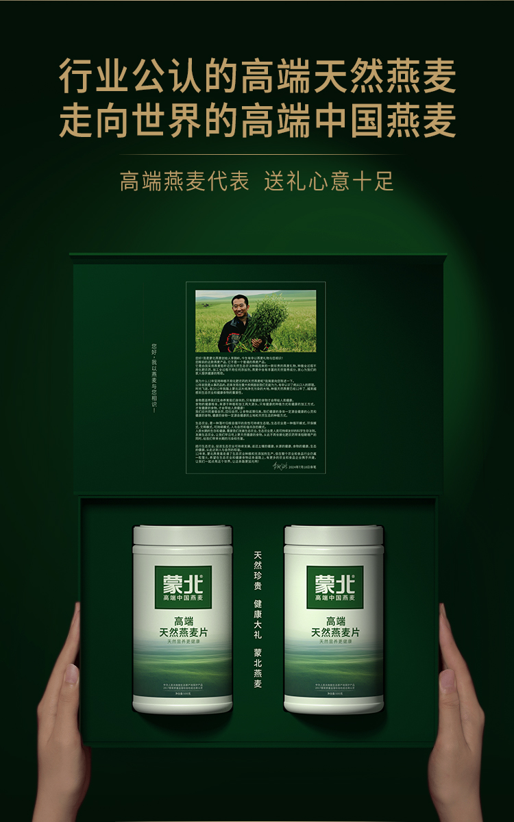 蒙北天然燕麦片高端礼盒 中国欧盟有机认证1000g/提(内含500g*2罐)