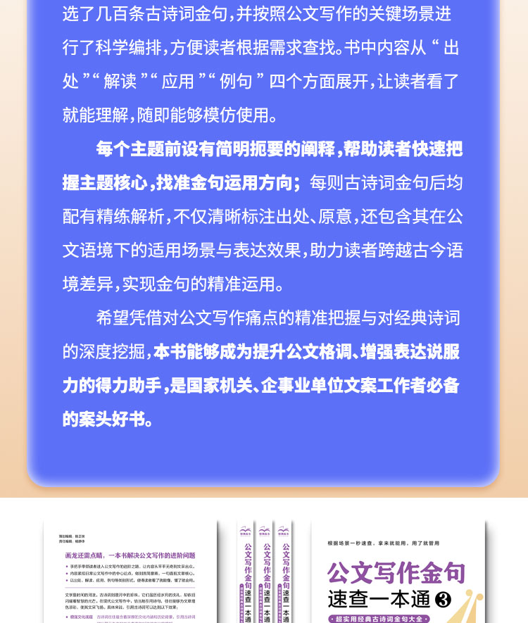 《公文写作金句速查一本通3:超实用经典古诗词金句大全》是一本聚焦公文写作实践需求,
