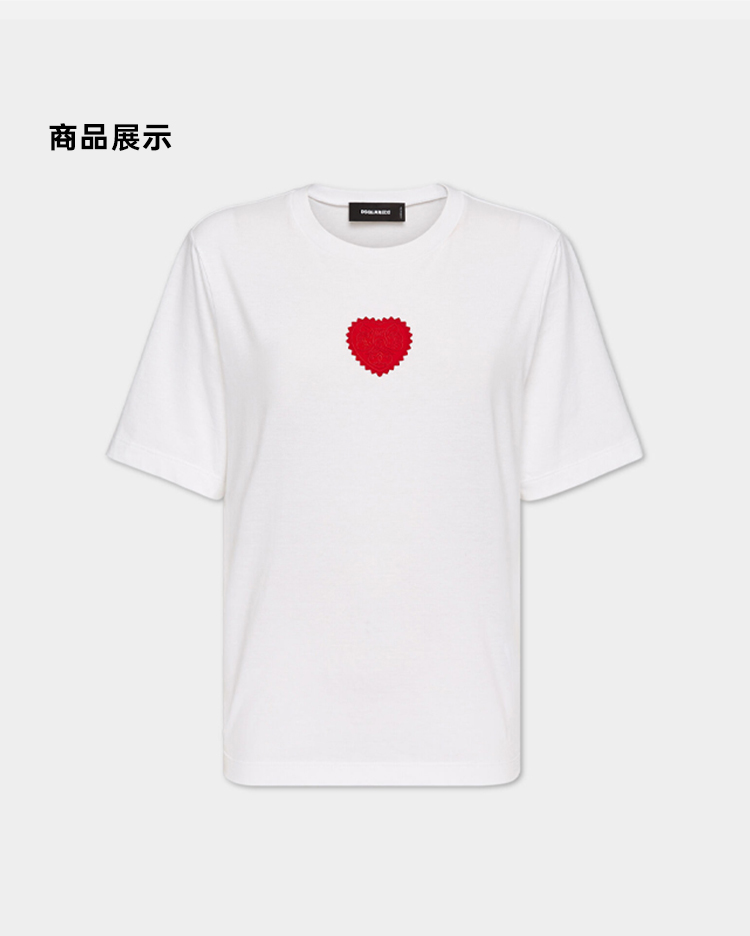 【二】DSQUARED2 女士天鹅绒心形棉质圆领短袖宽松T恤 白色 S75GD0448 S24668 100