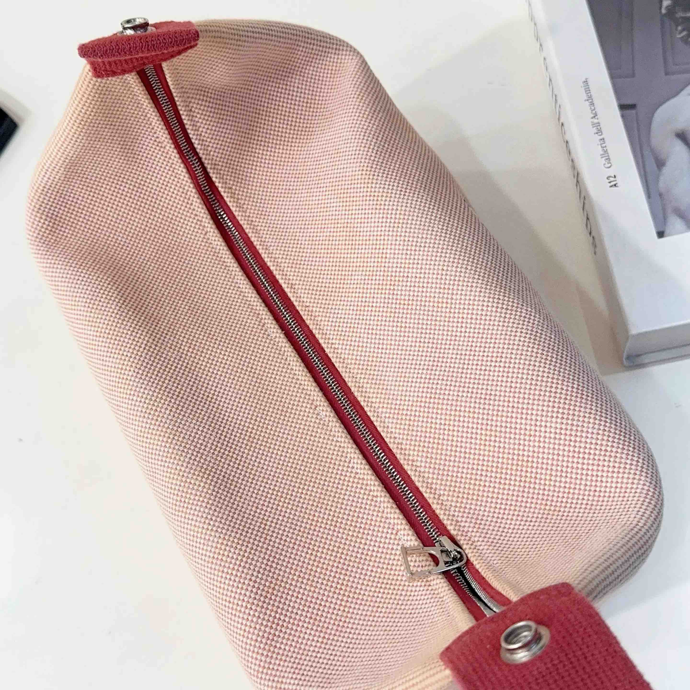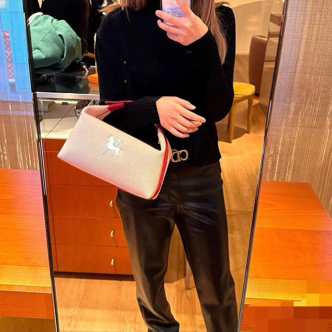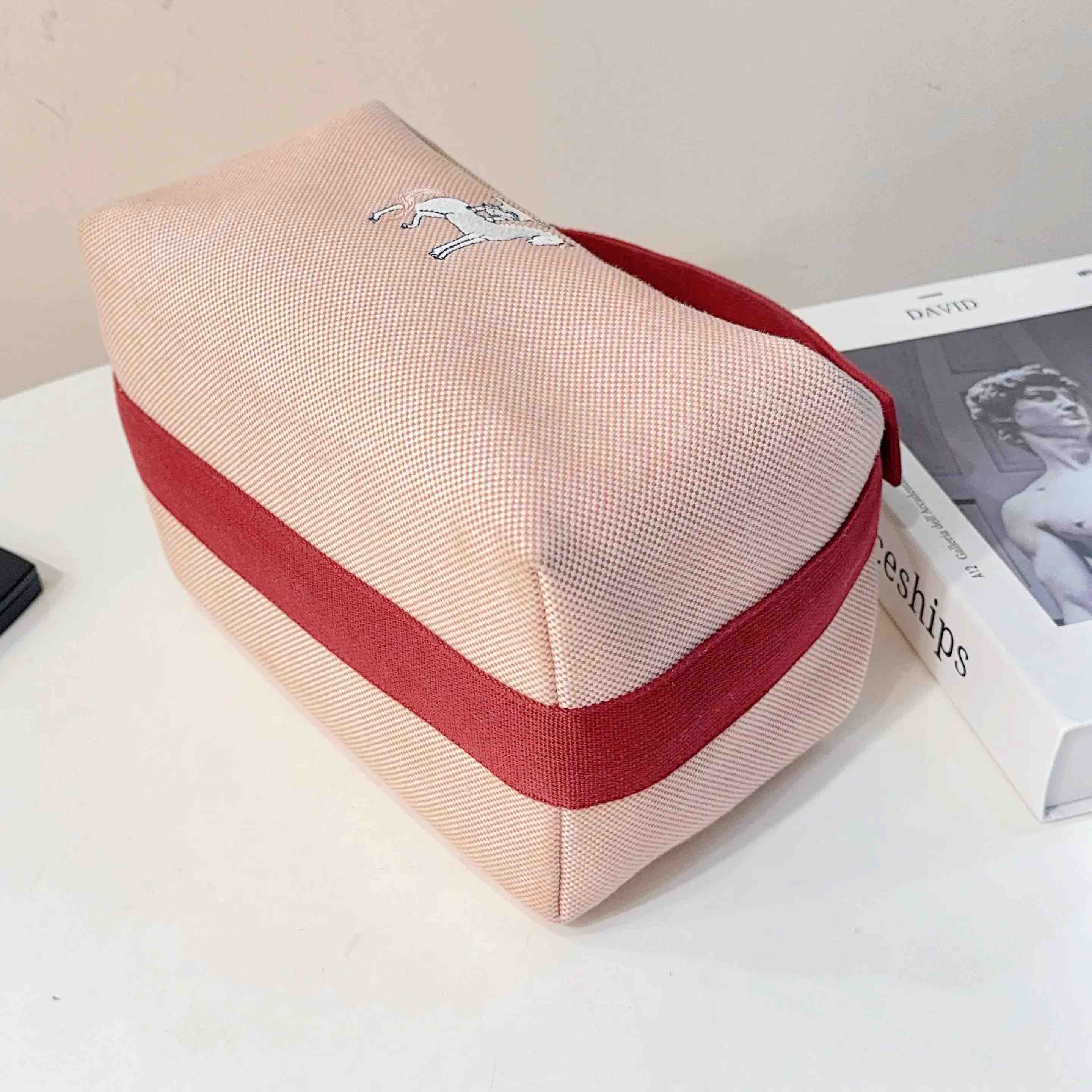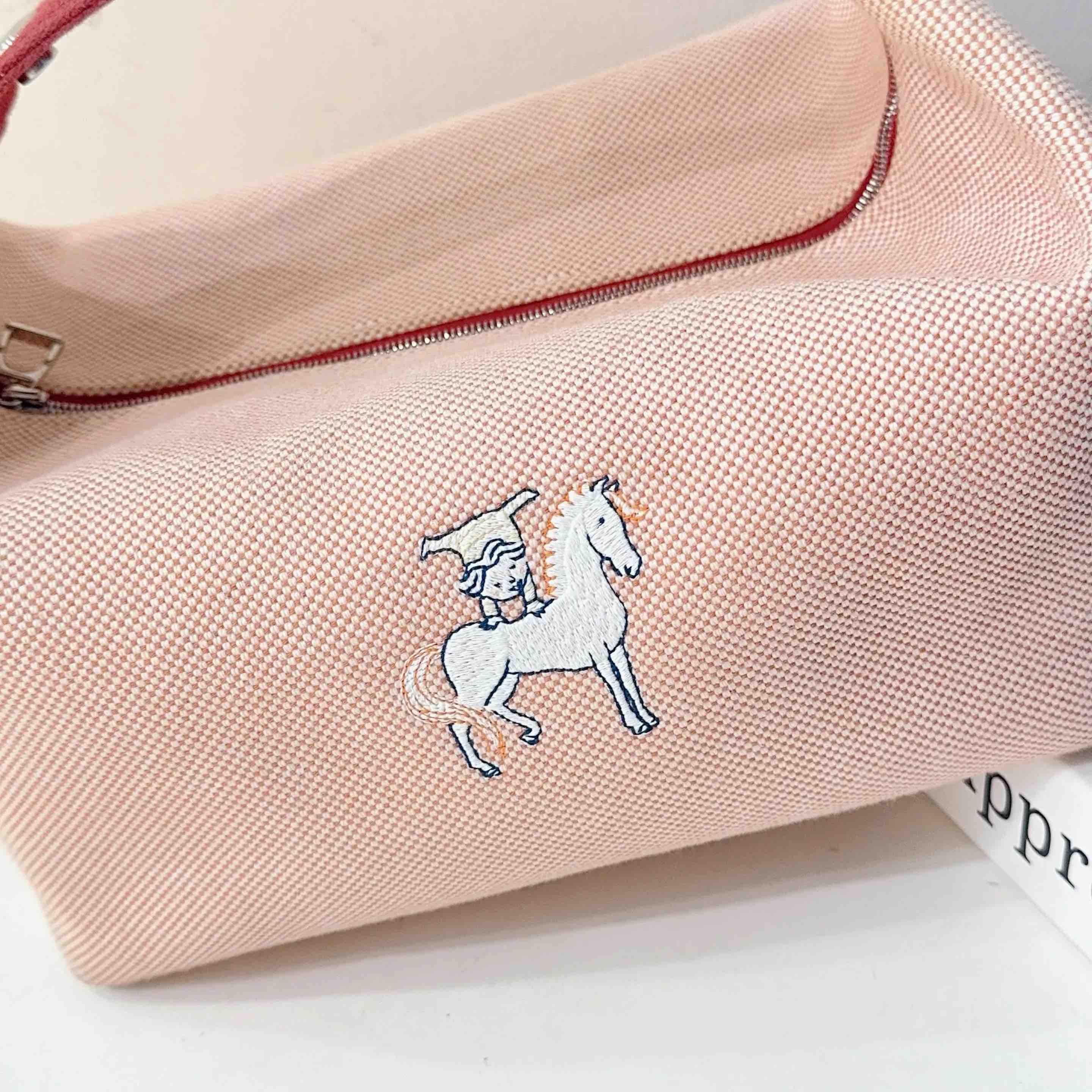 【商品详情】正品二手 爱马仕 Bride-à-Brac 小马 刺绣 帆布拼红 饭盒包 🛍️ 97新 24×13。通勤神器 轻便休闲