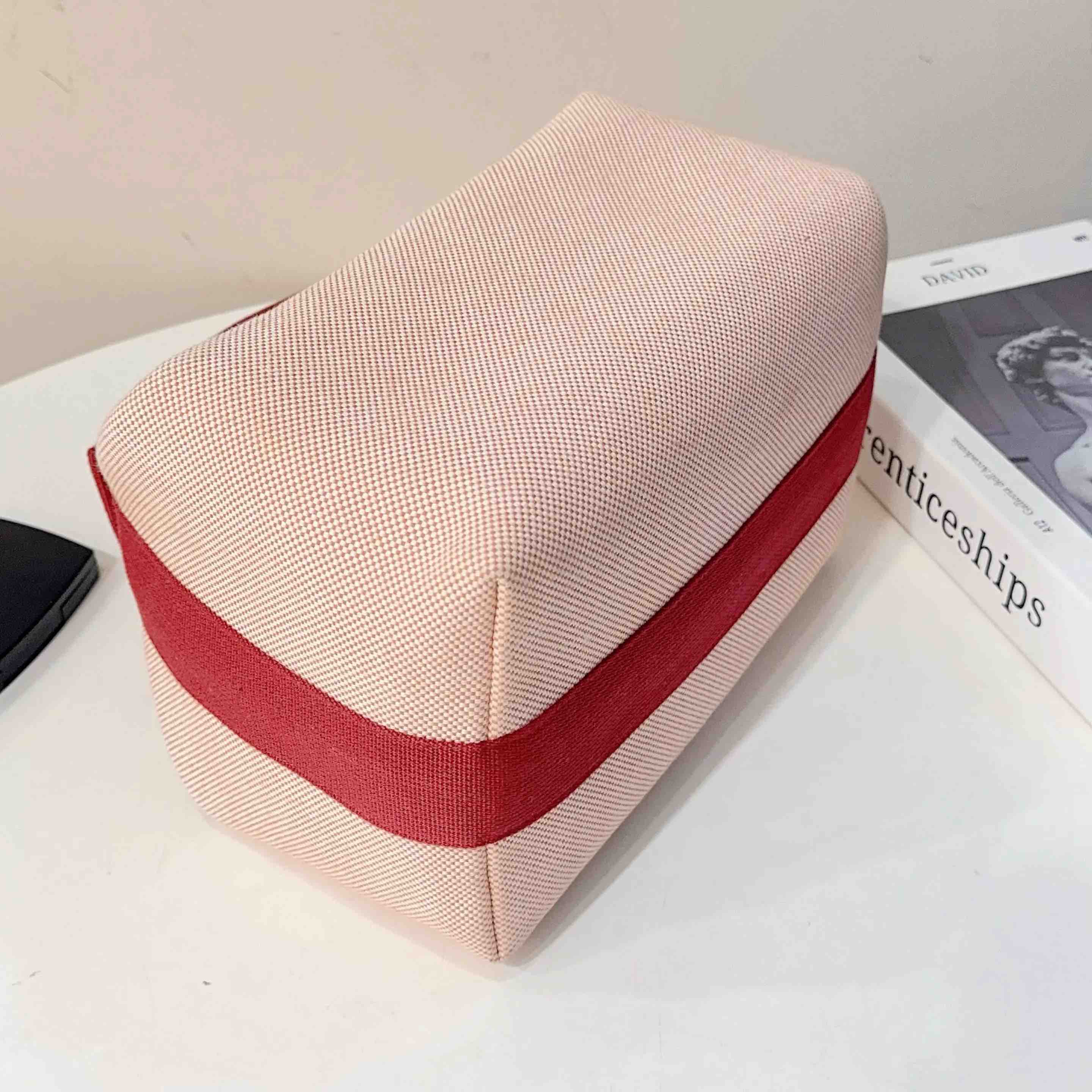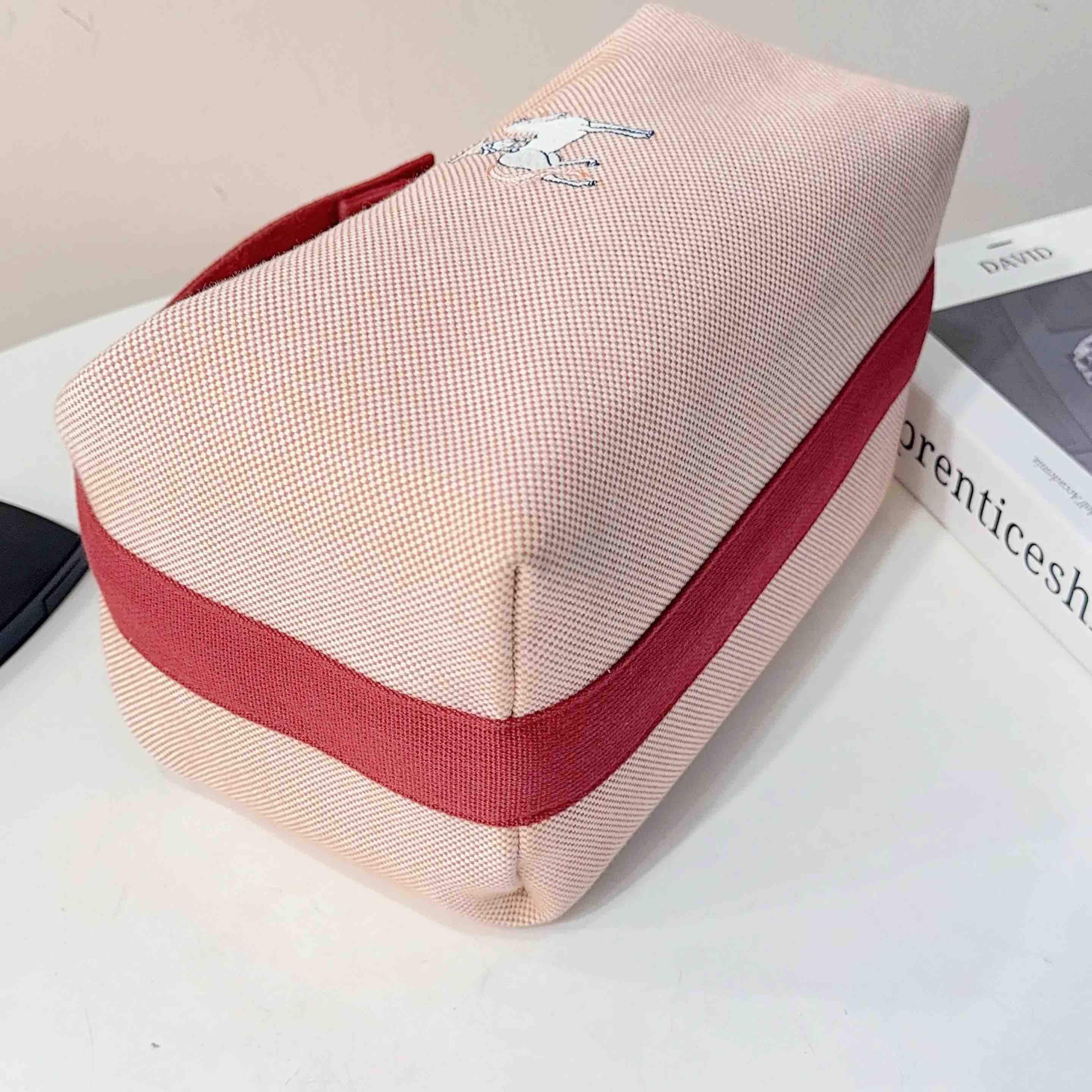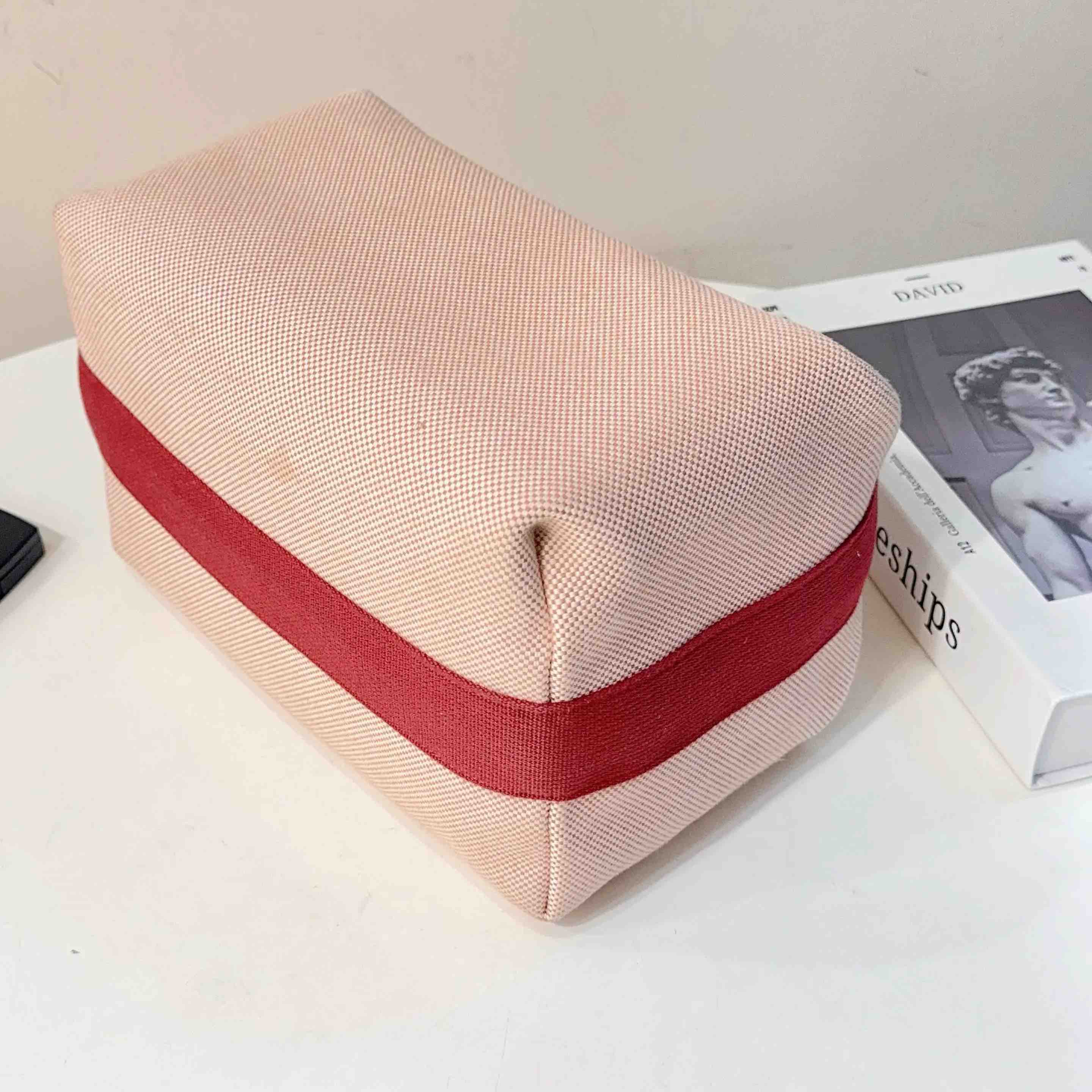 【商品详情】正品二手 爱马仕 Bride-à-Brac 小马 刺绣 帆布拼红 饭盒包 🛍️ 97新 24×13。通勤神器 轻便休闲