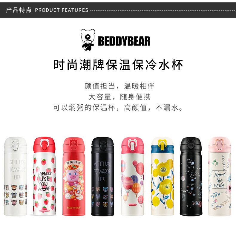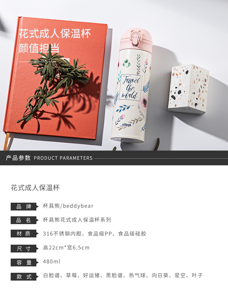 BEDDYBEAR/杯具熊 杯具熊花色弹跳盖成人保温杯 多款可选 480MLJPY带授权招加盟代理