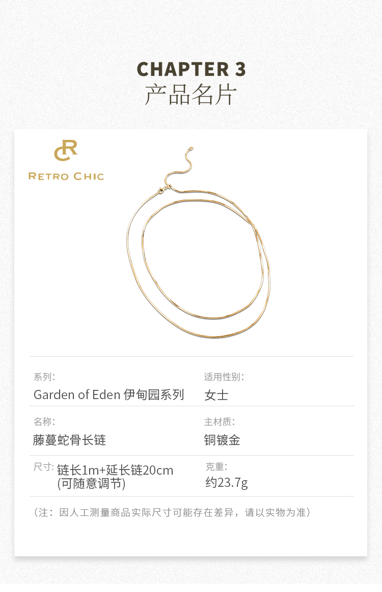 【王天辰&侯佩岑&沈梦辰&刘孜&刘忻&刘恋&王悦伊同款】Garden of Eden 伊甸园系列 | 金色藤蔓蛇骨长链