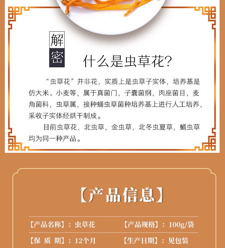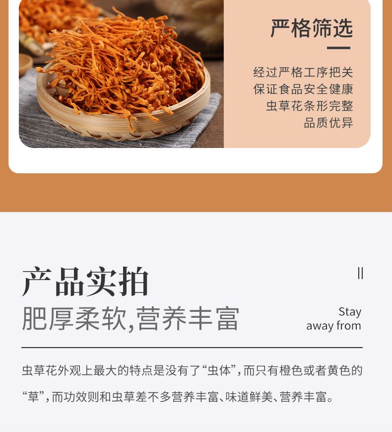 【严选】【金新农】【严格质检 每朵条形完整 肉头厚实 凉拌炖汤】湖北恩施耘丰鑫品虫草花100g/袋 (厂家直发)
