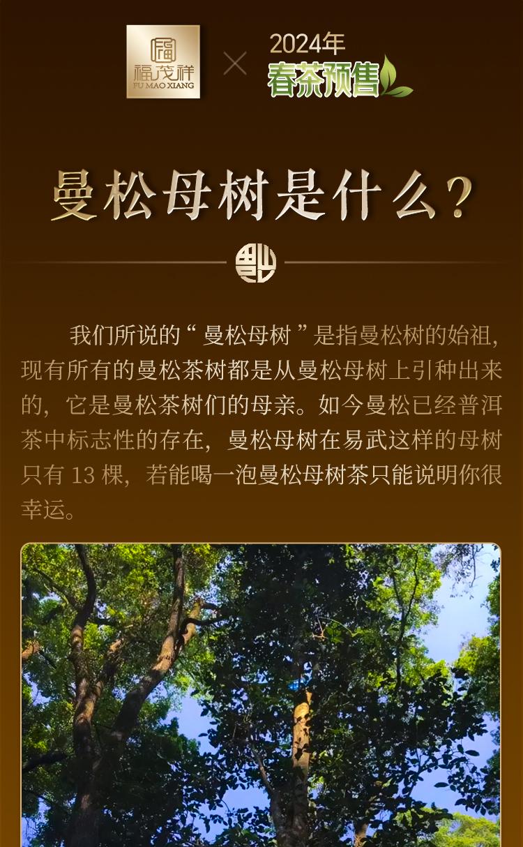 【2024年春茶】【曼松母树】曼松茶的始祖 全球仅有13棵古树 限量珍藏版 2024年云南普洱茶易武茶区曼松纯料古树茶357g饼茶