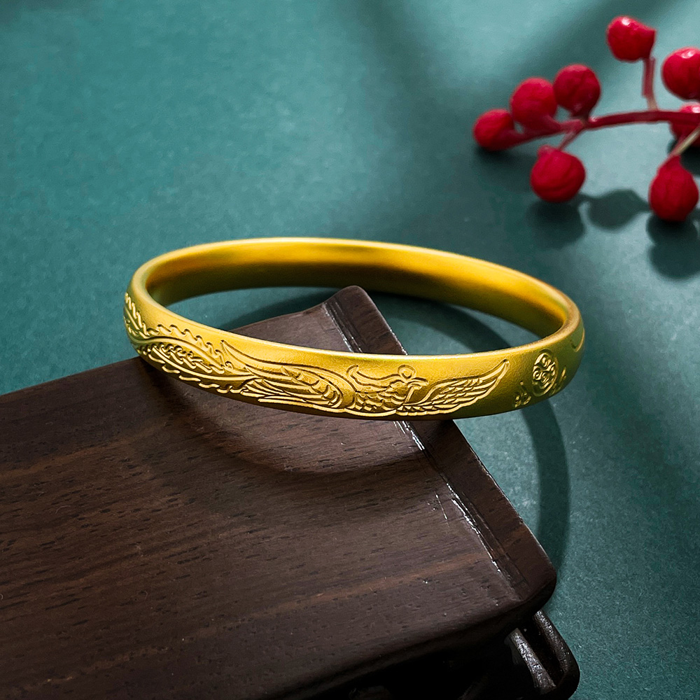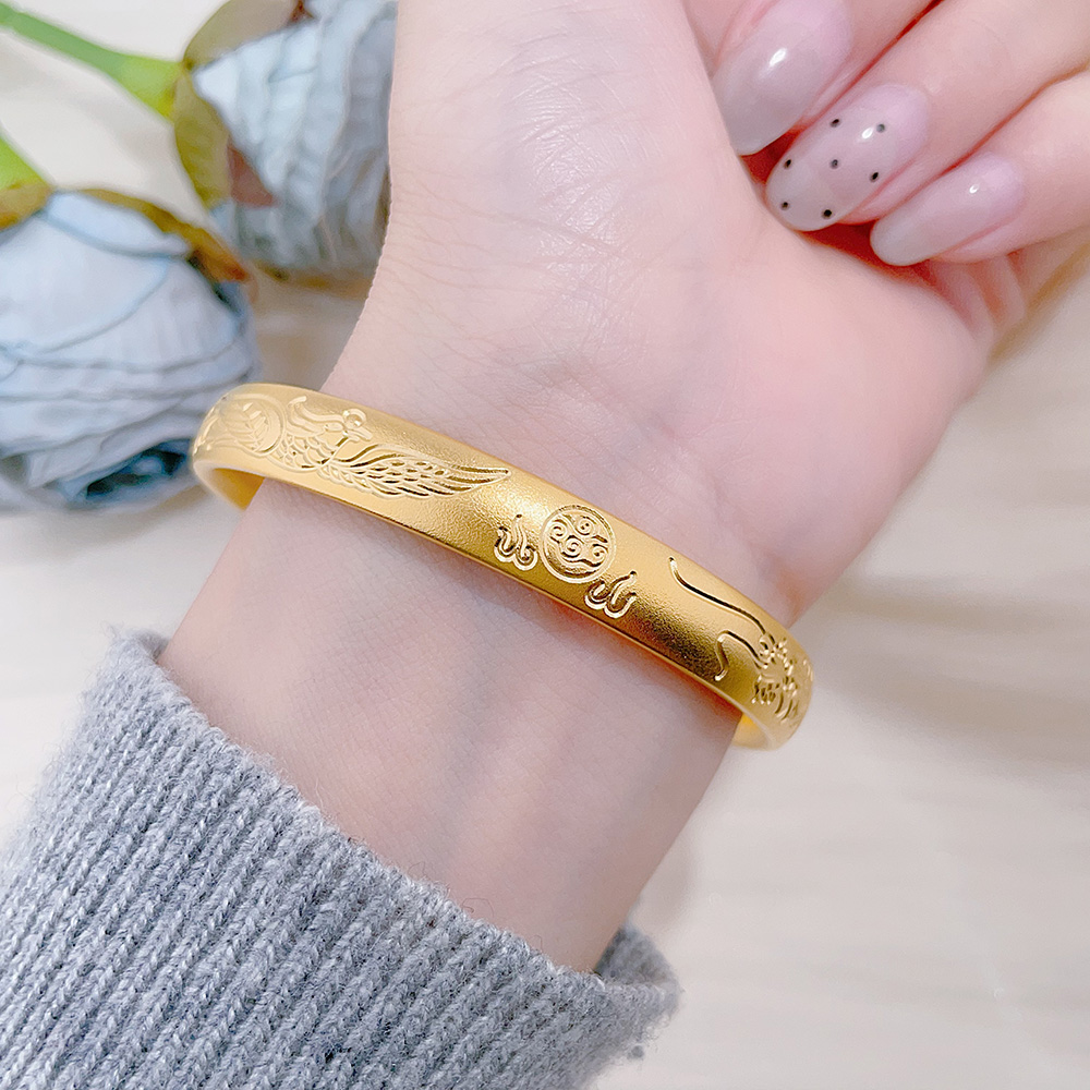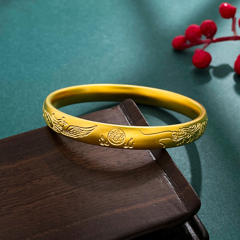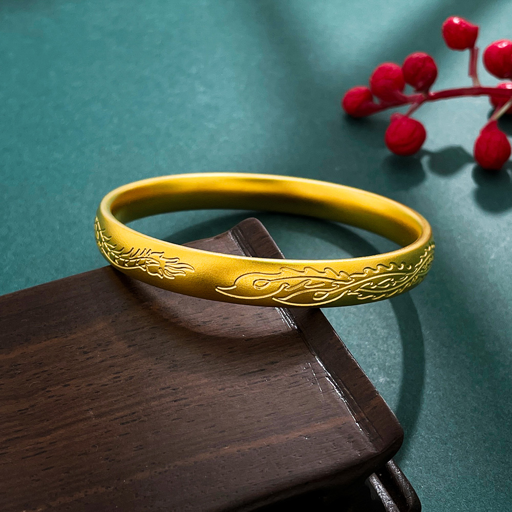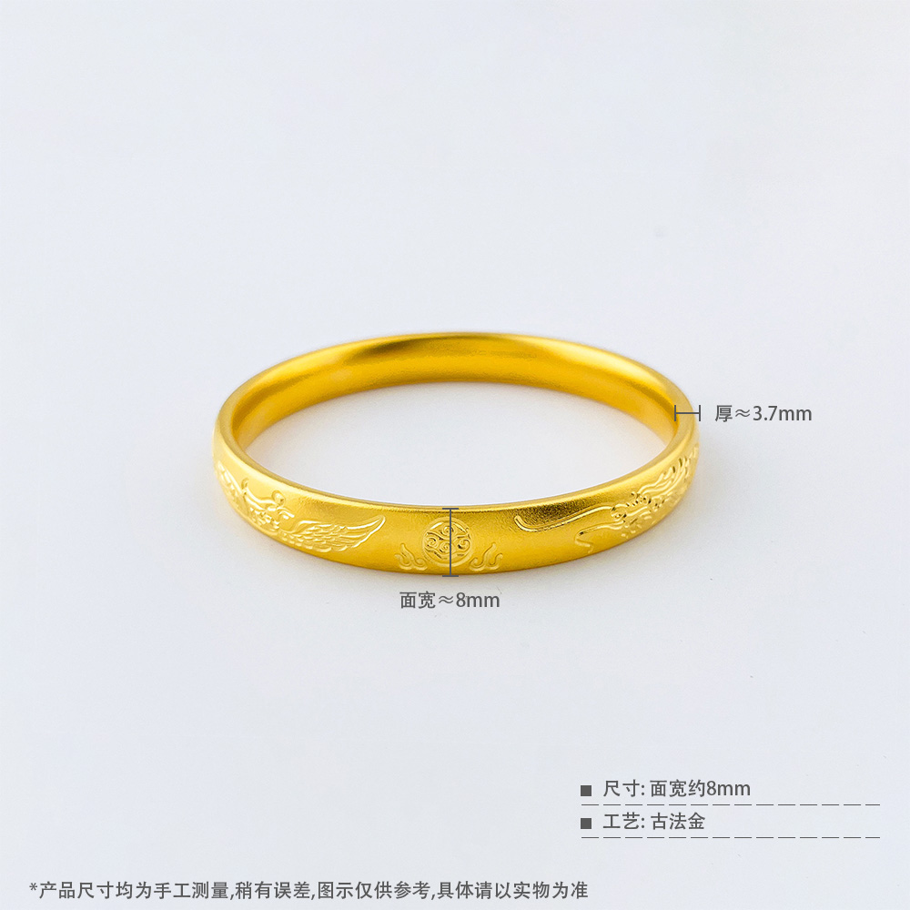 【限时克减150元】足金999 #婚庆 古法空心固口手镯龙凤戏珠龙凤镯龙凤呈祥婚嫁手镯(面宽约7.8-8.2mm,厚约3.7mm)(YQGFSZ00518)预售产品下单后不退款不退货不换货不补差价