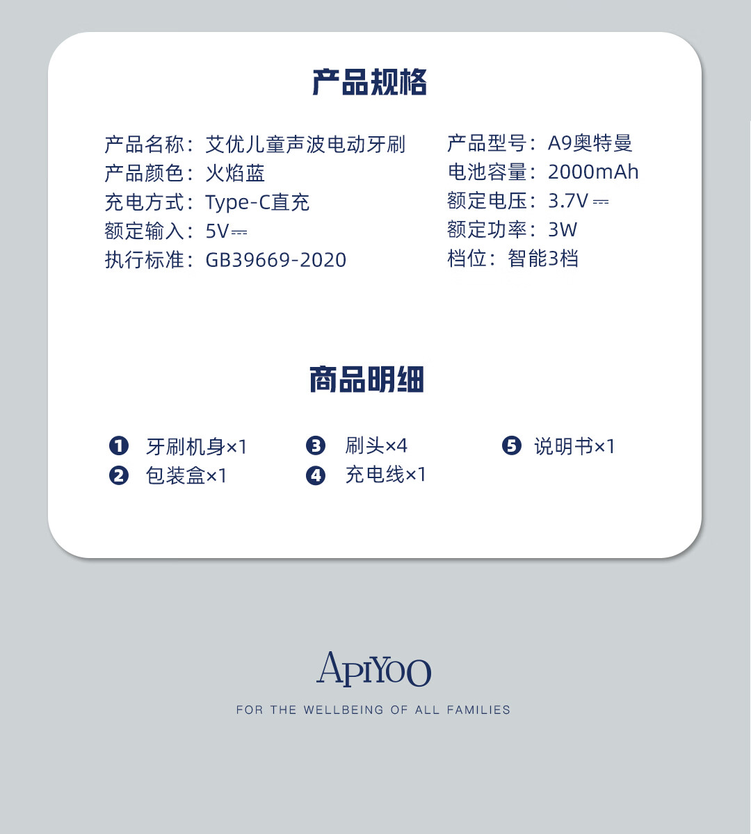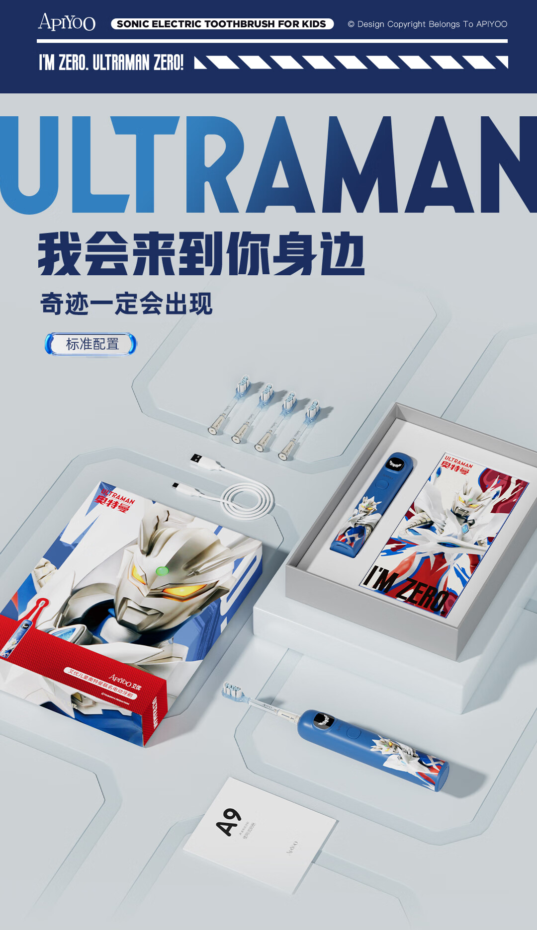 ApiYoo艾优终极赛罗奥特曼儿童电动牙刷3-6-15岁 ZB