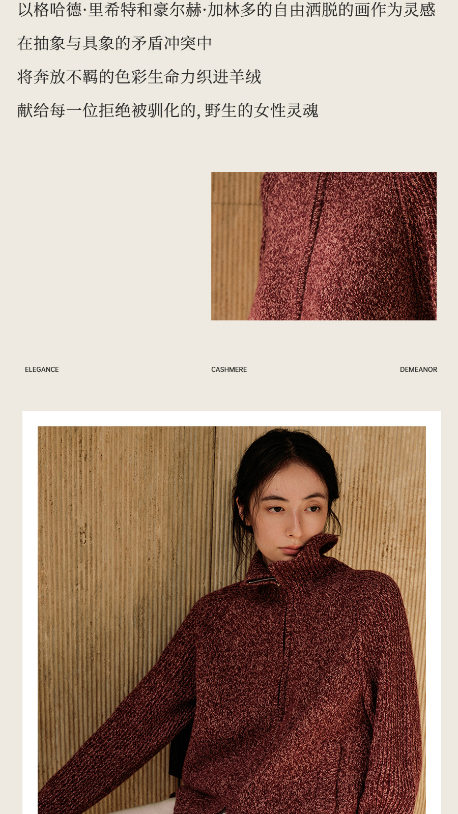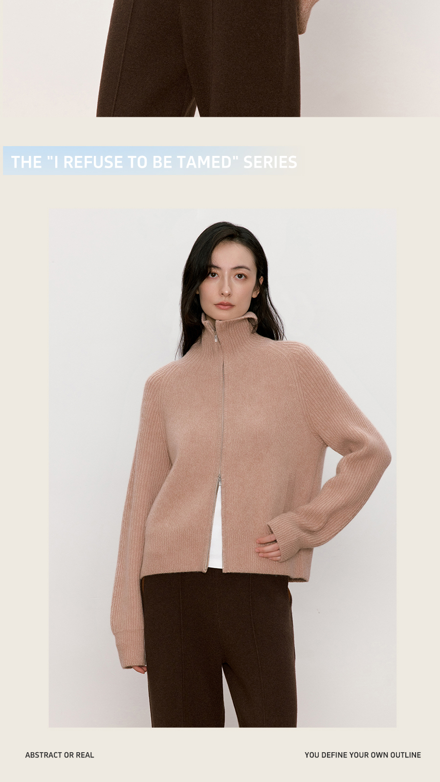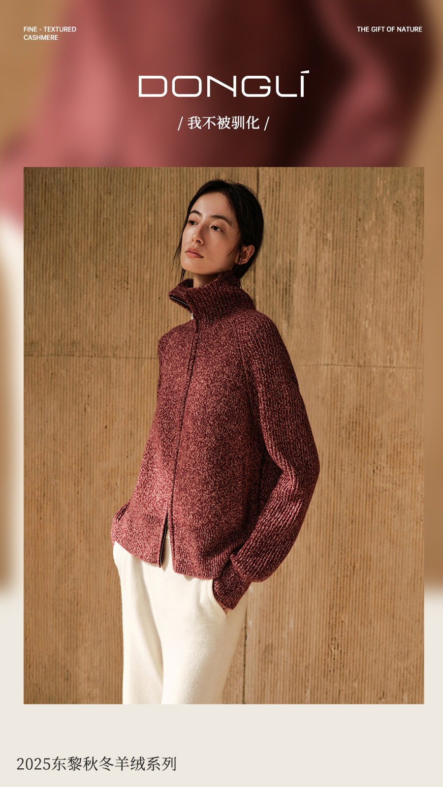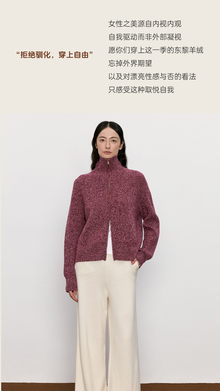 东黎 • 我不被驯化 山羊绒女士秋季翻领拉链开衫 5367