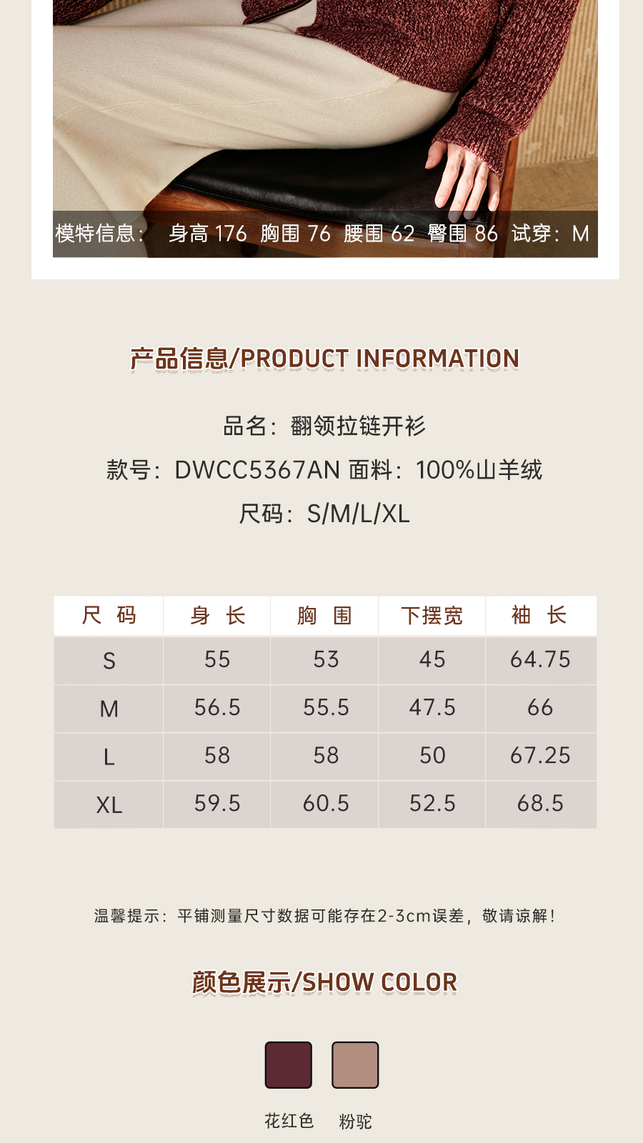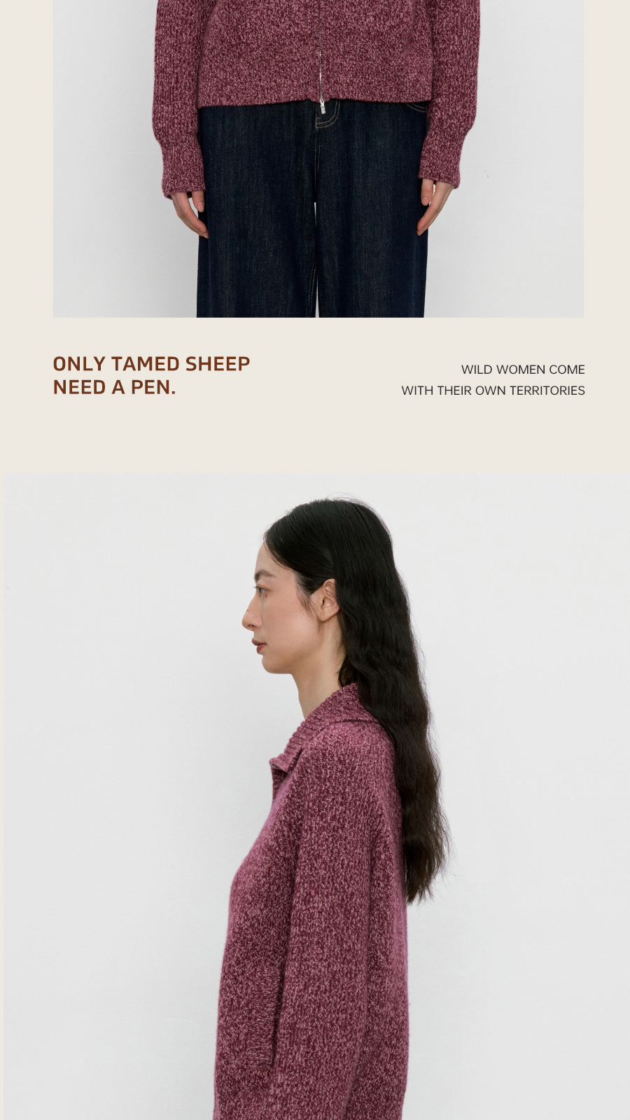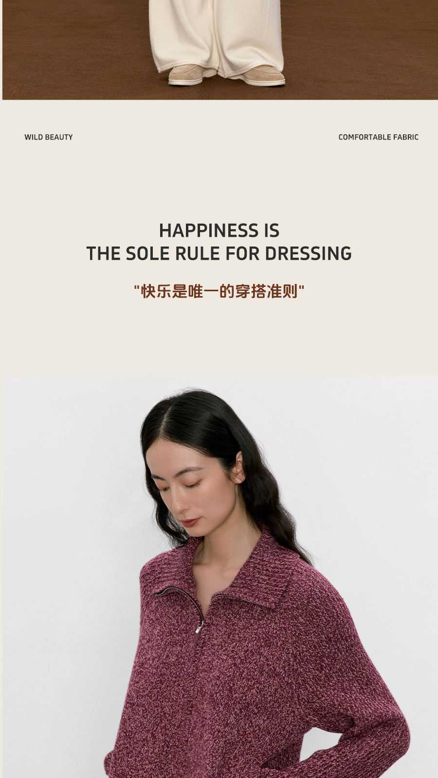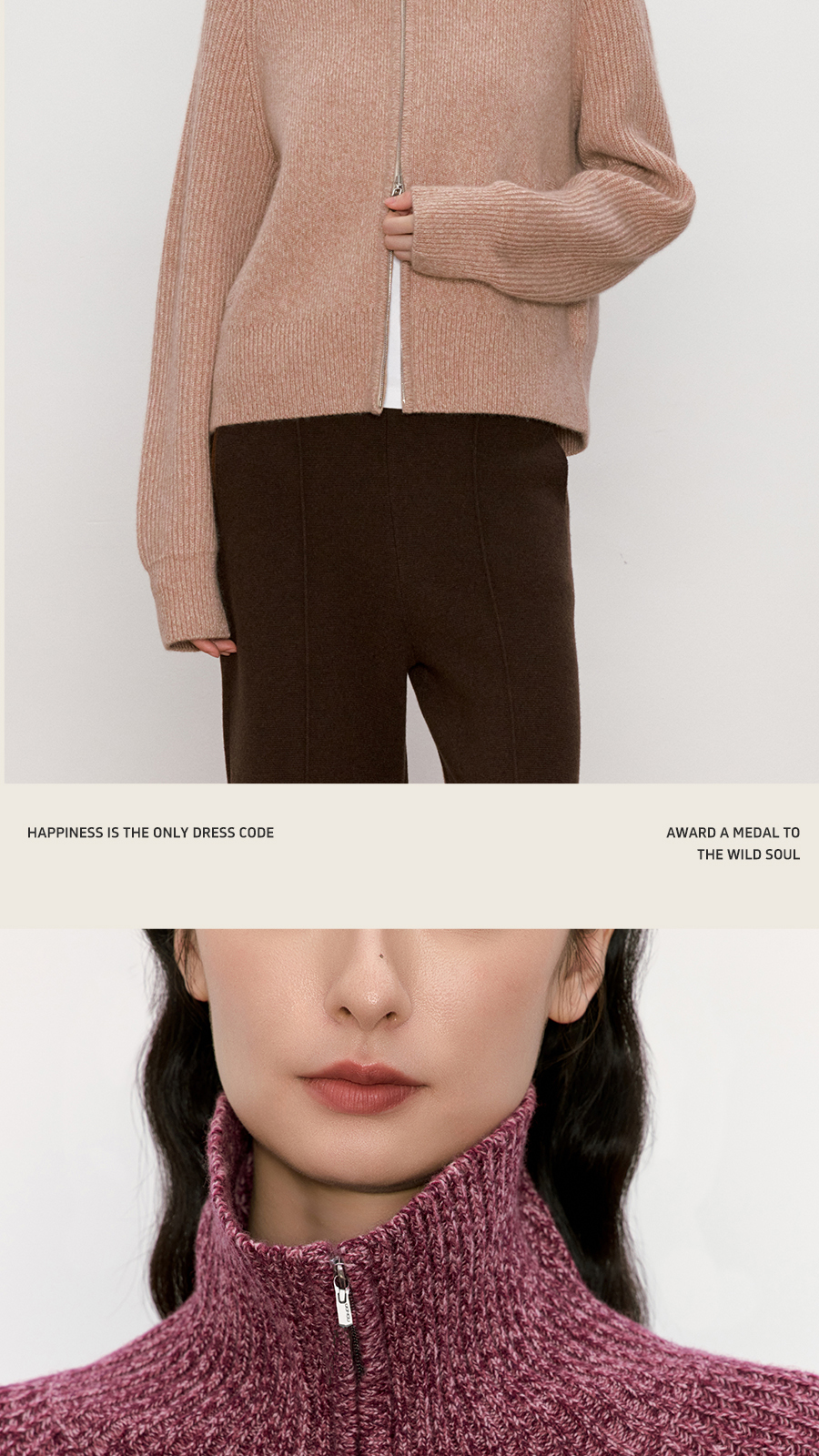 东黎 • 我不被驯化 山羊绒女士秋季翻领拉链开衫 5367
