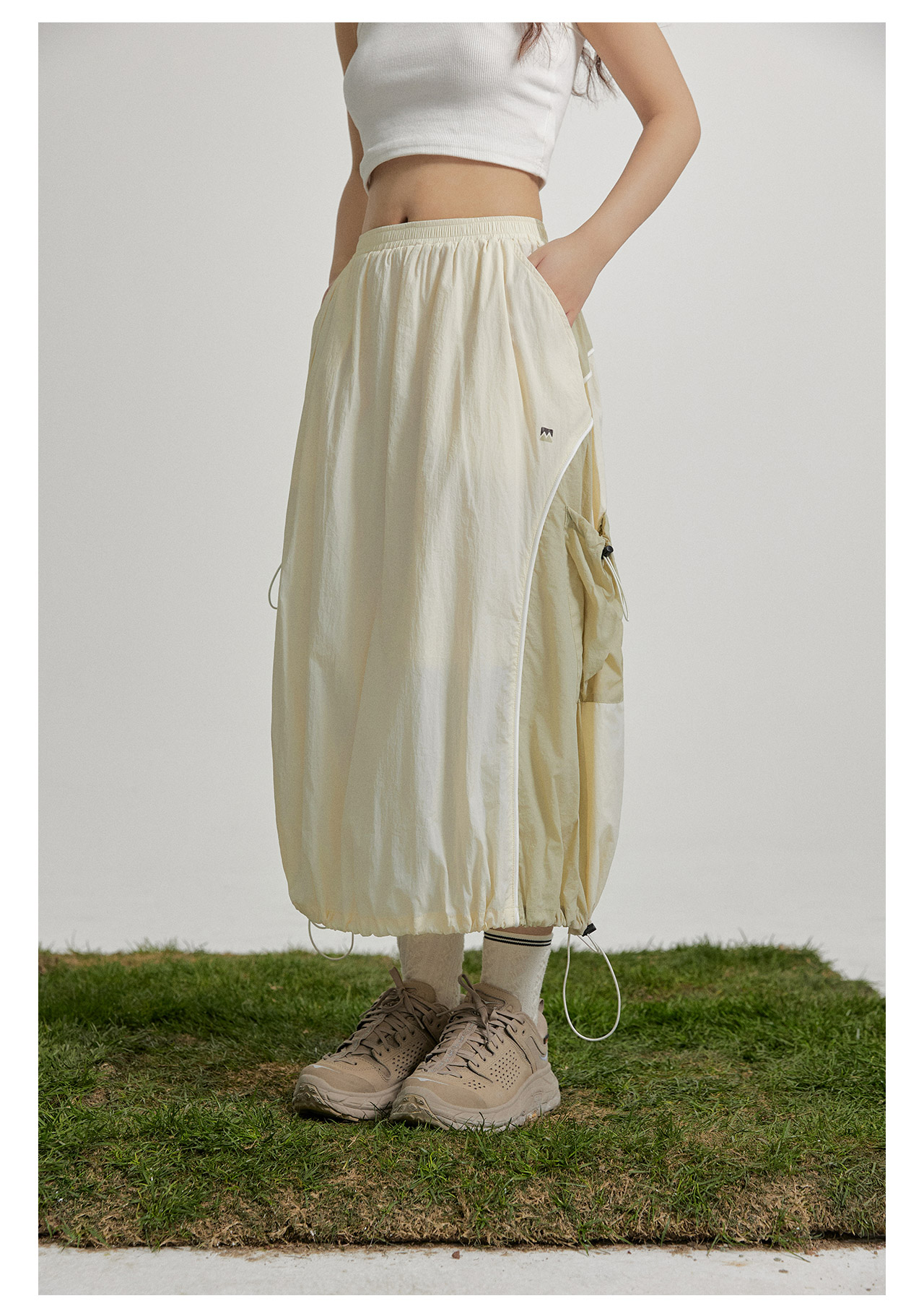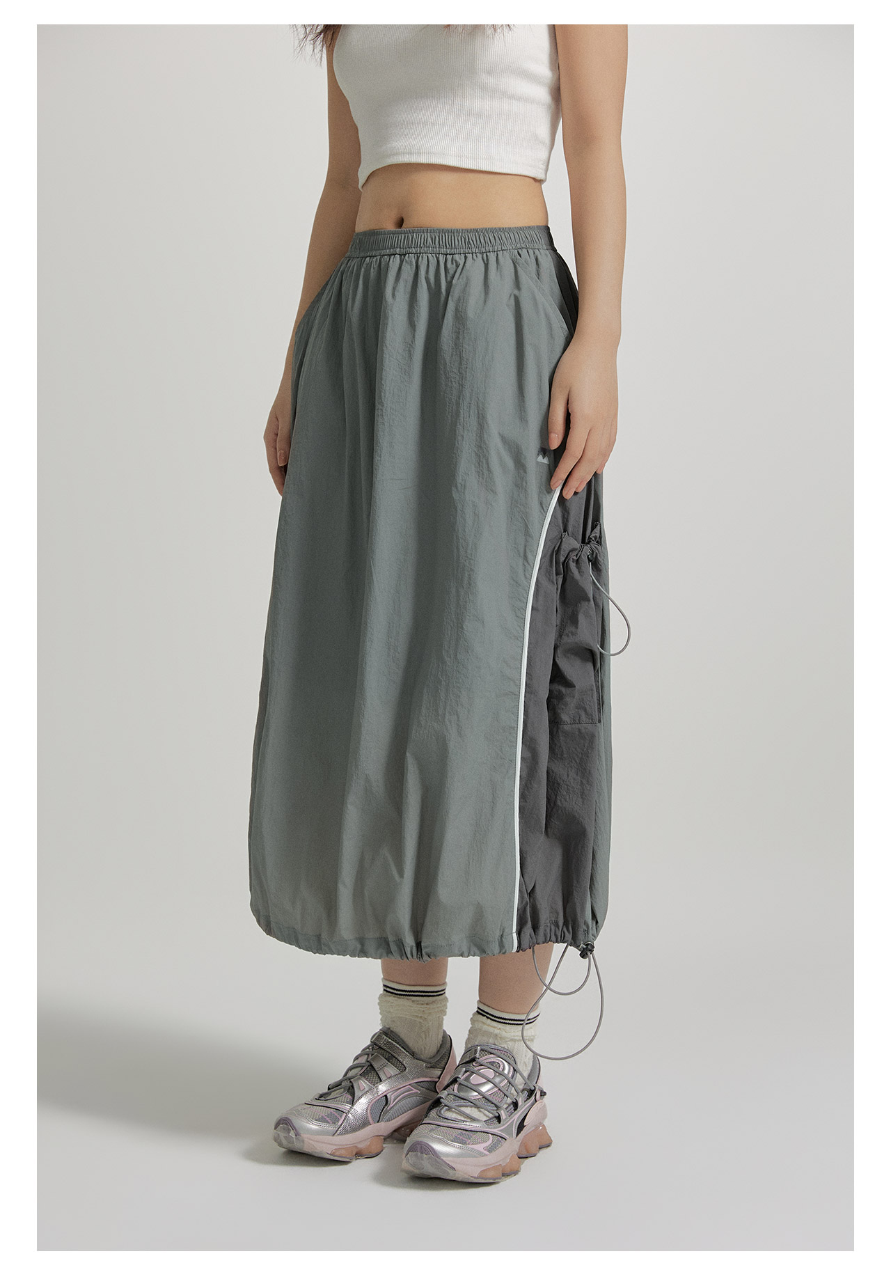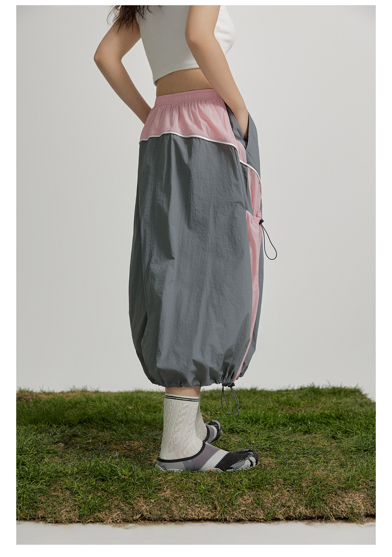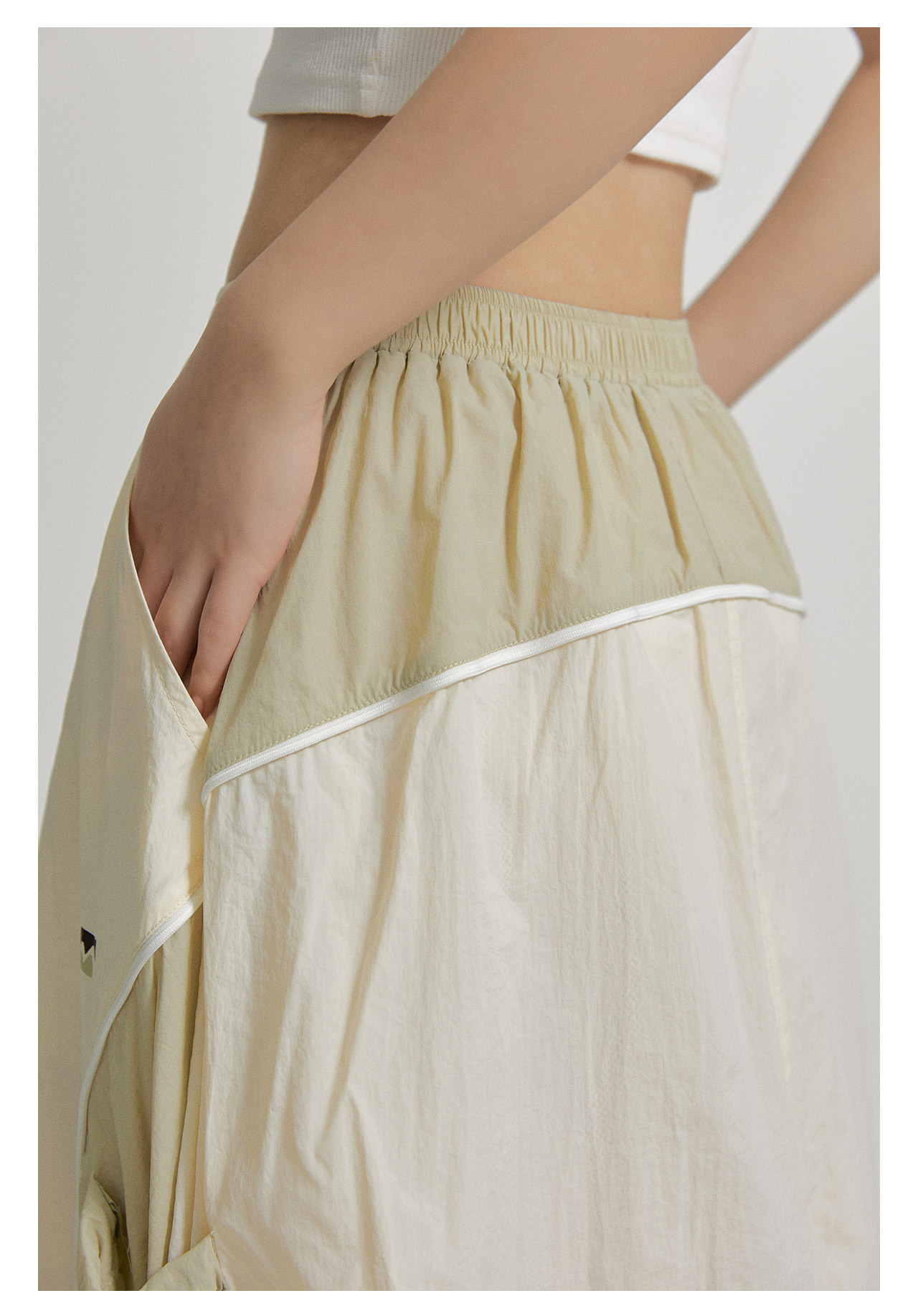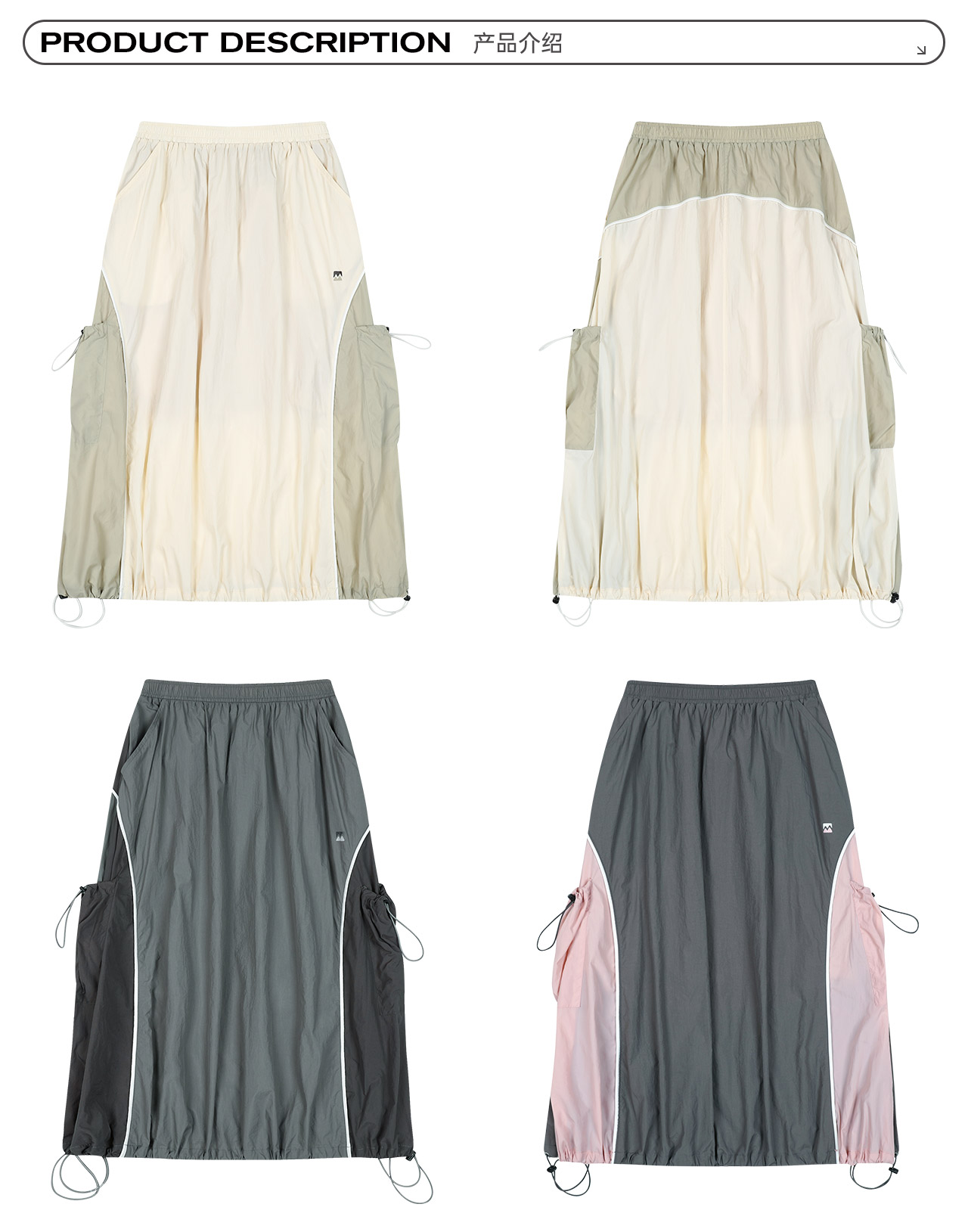 mostwantedlab彩虹/M2412002/春彩虹山脉户外梭织运动拼色多口袋松紧半身裙