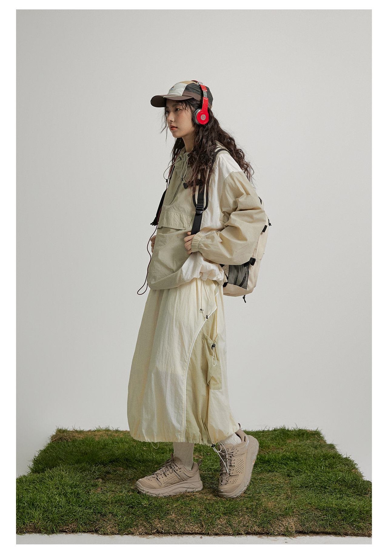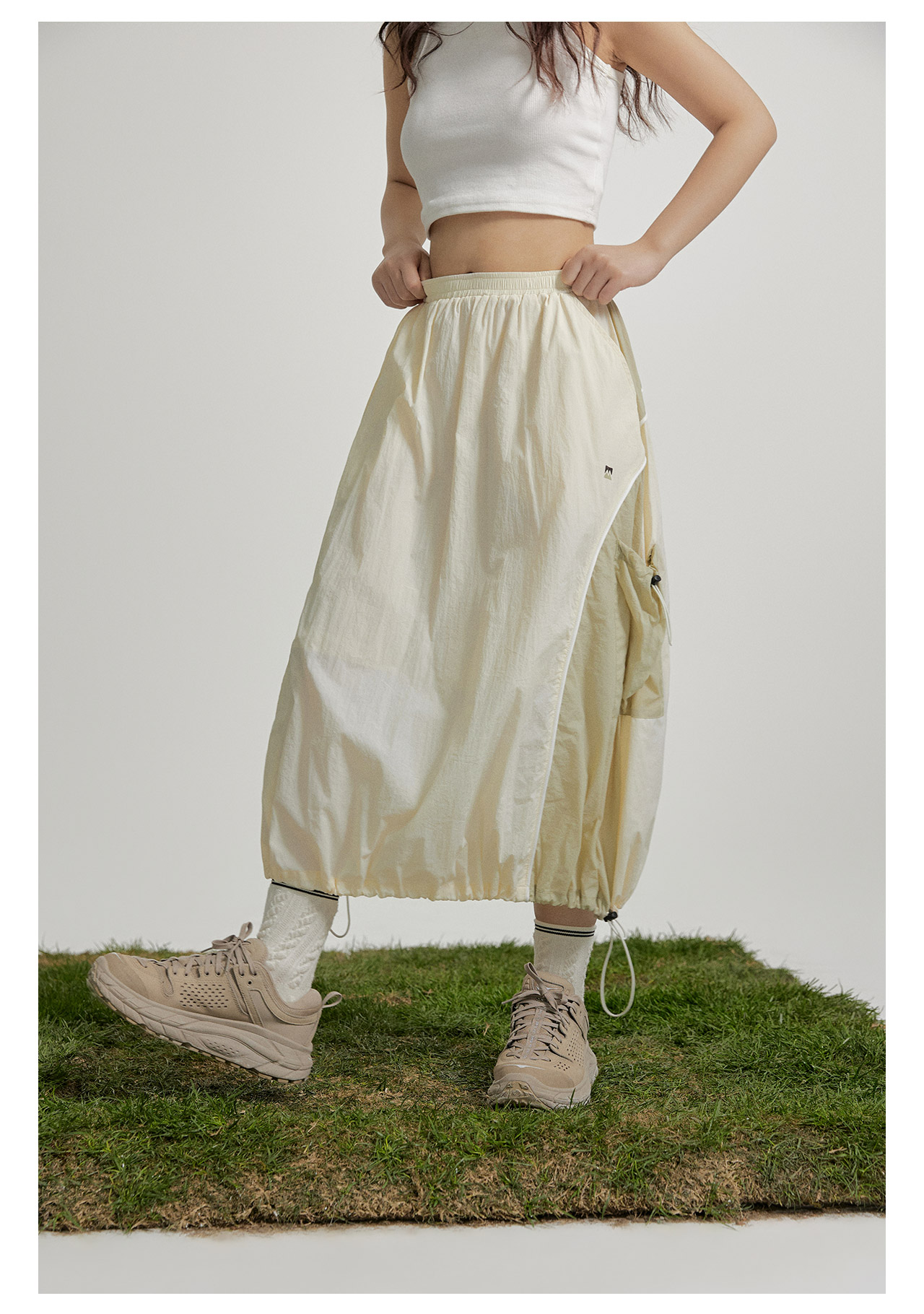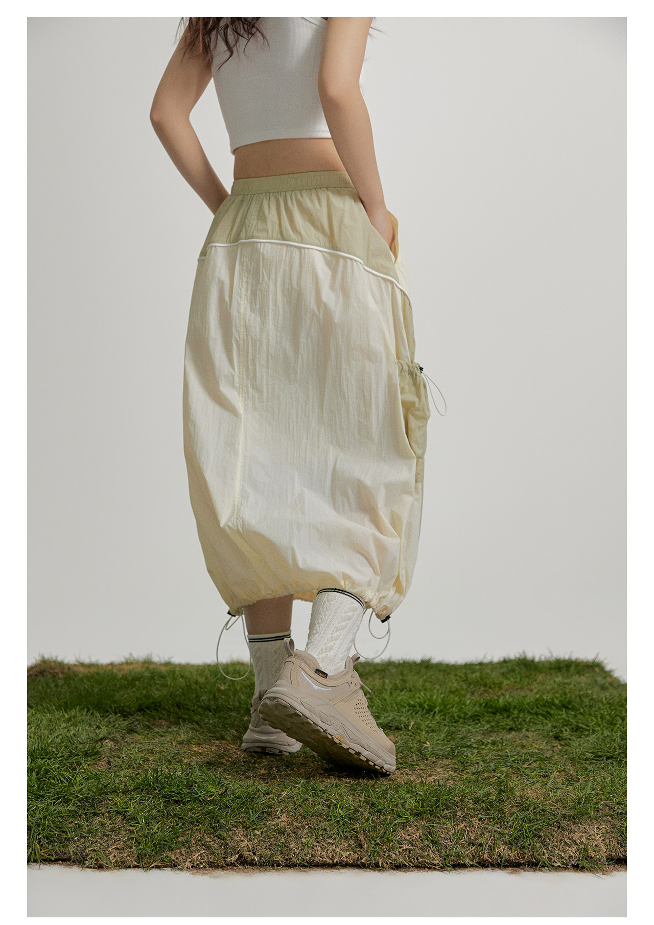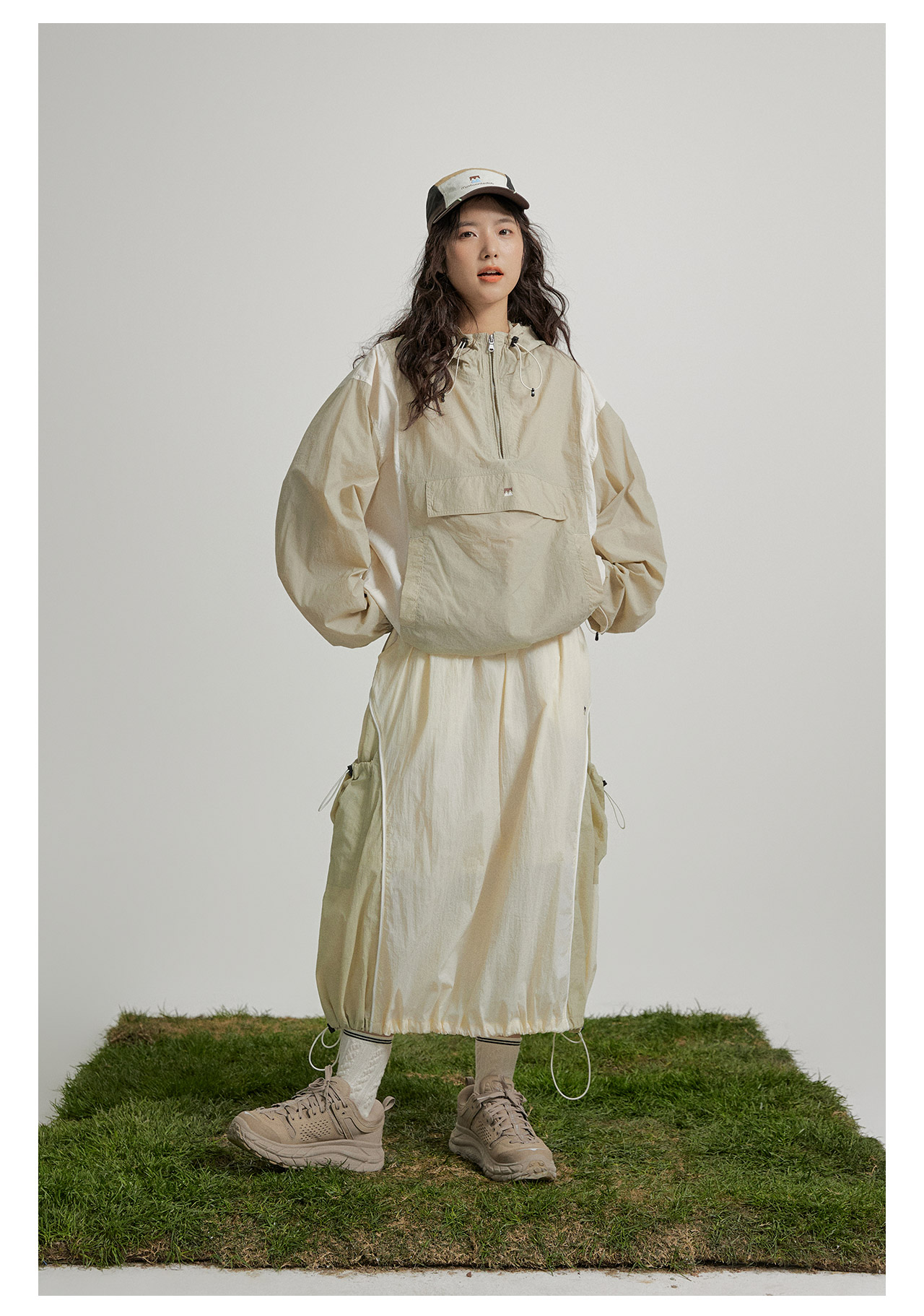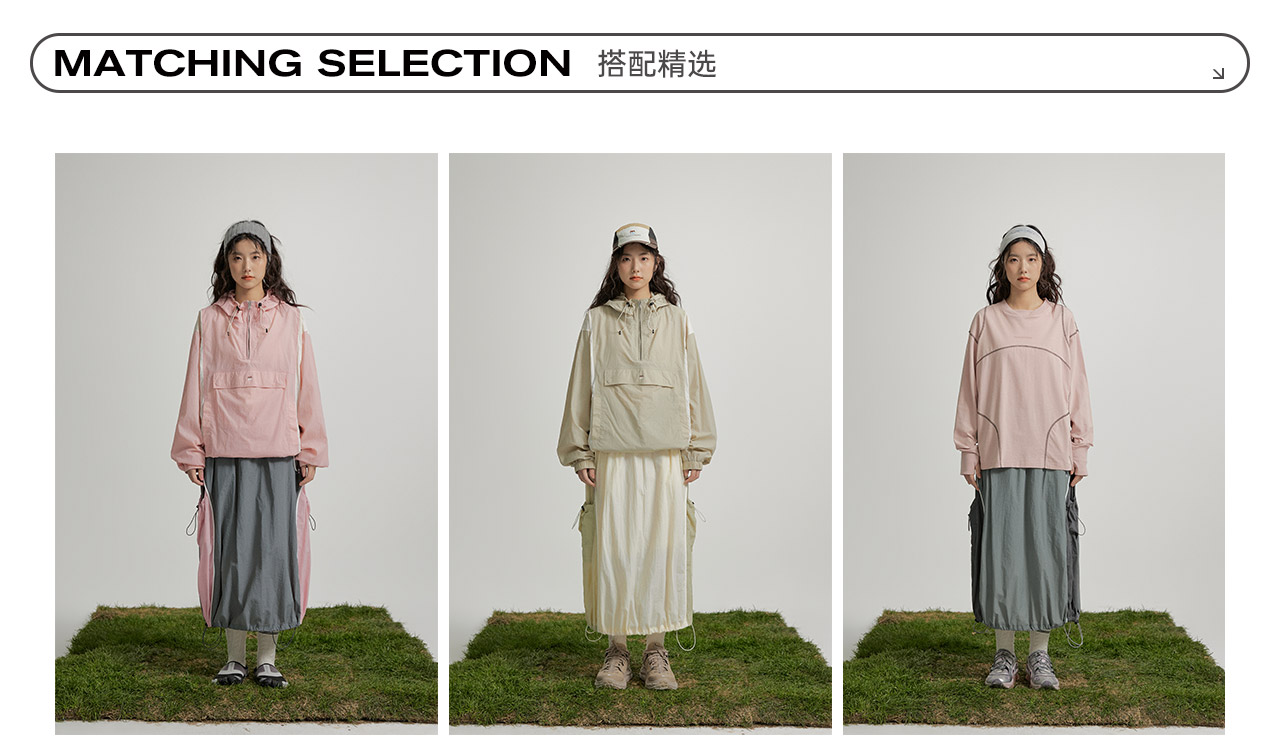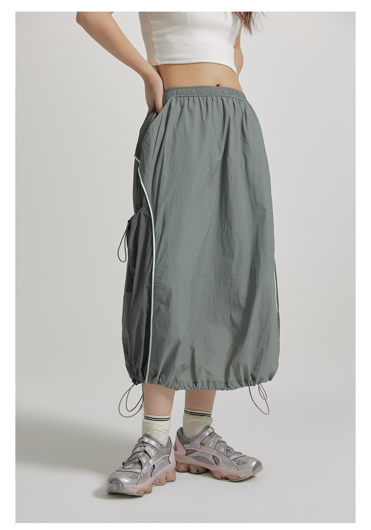 mostwantedlab彩虹/M2412002/春彩虹山脉户外梭织运动拼色多口袋松紧半身裙