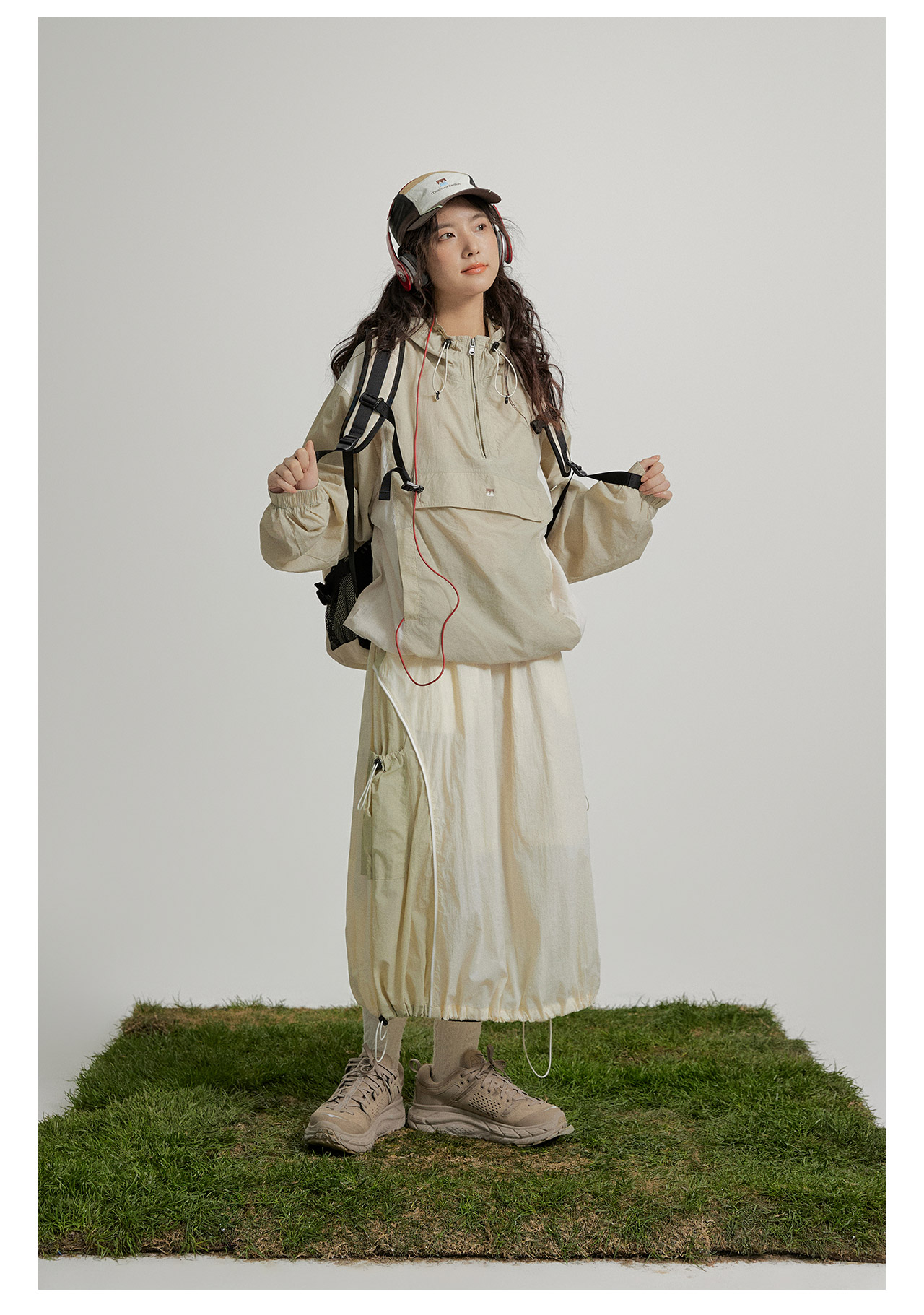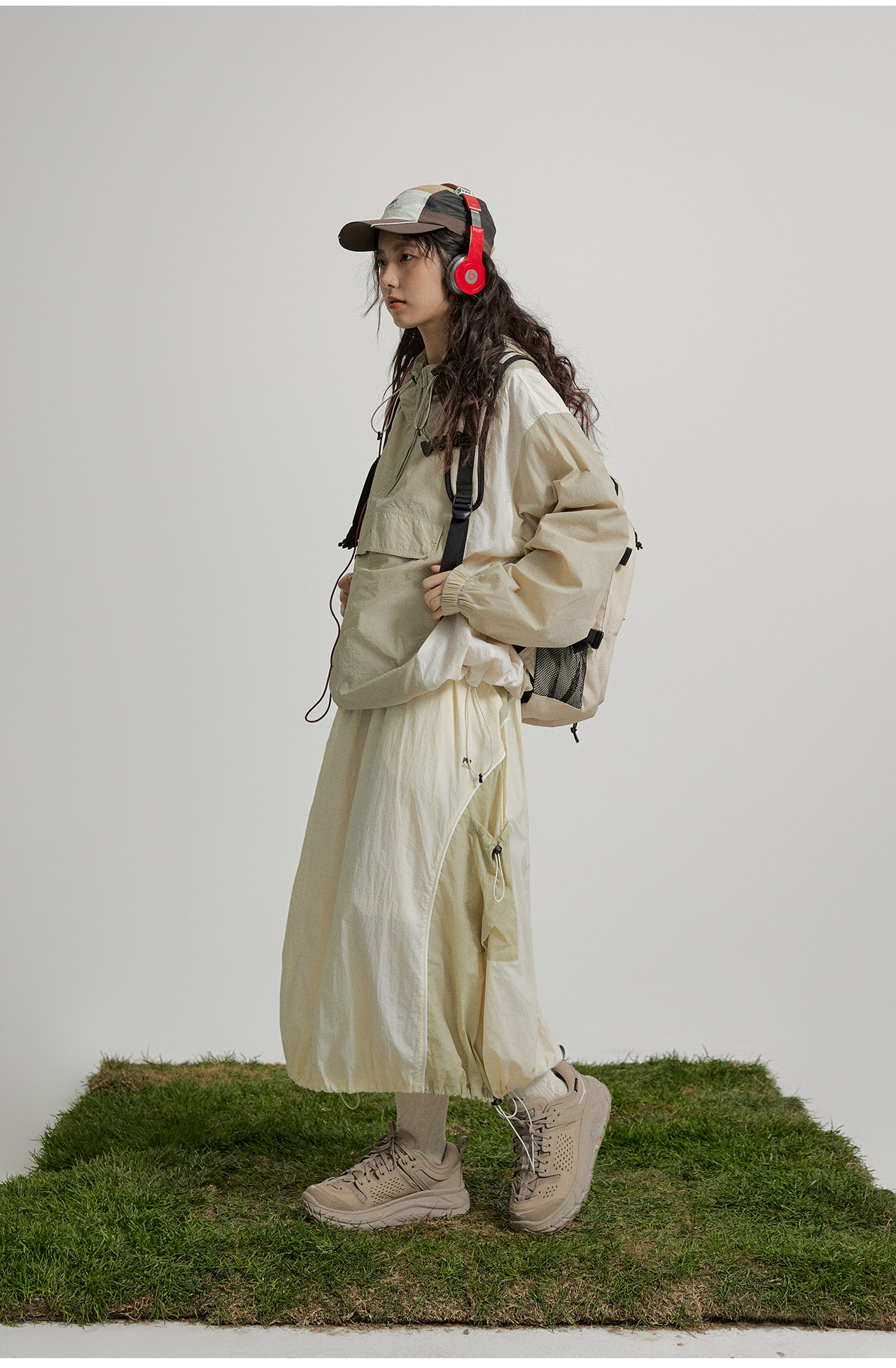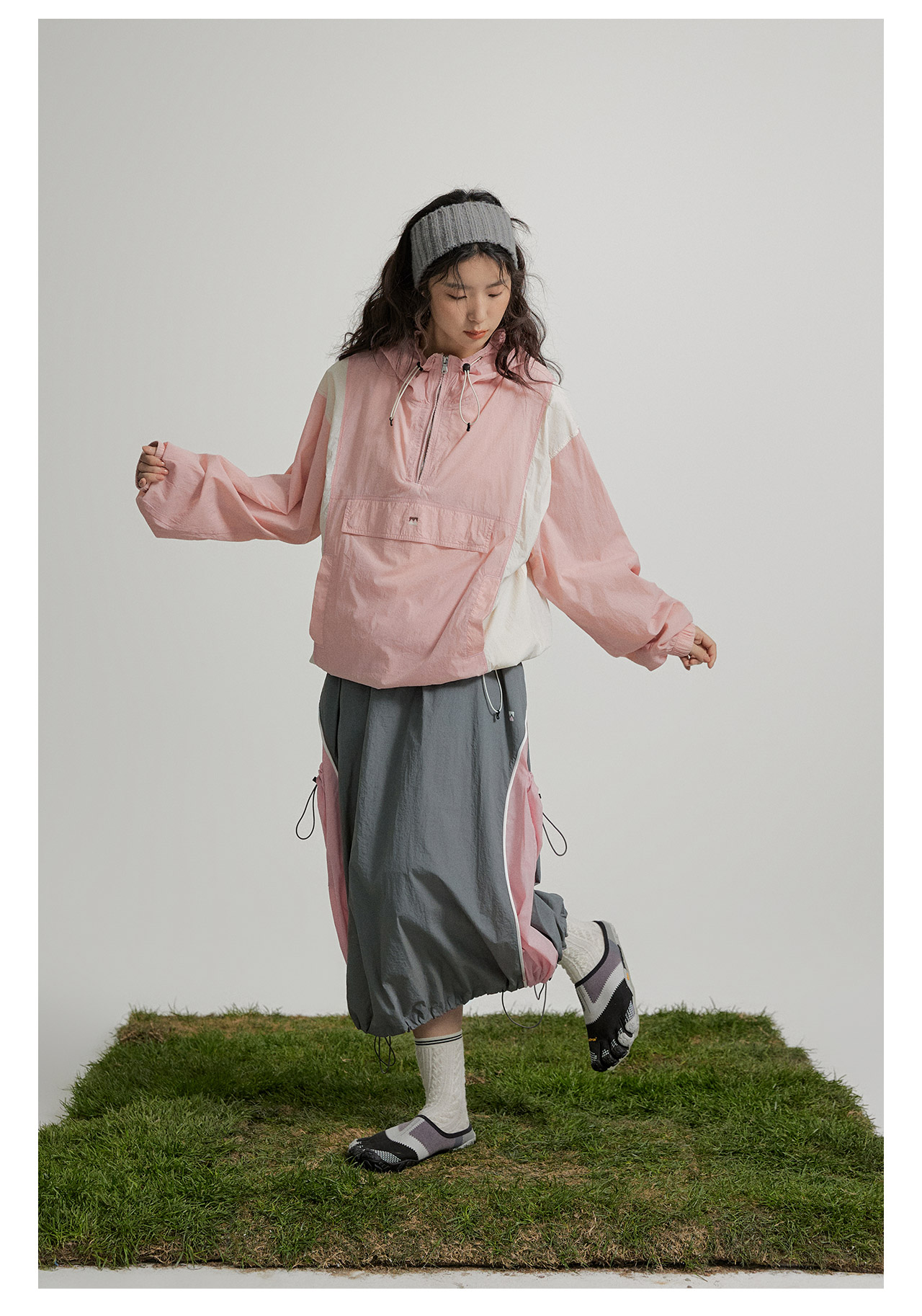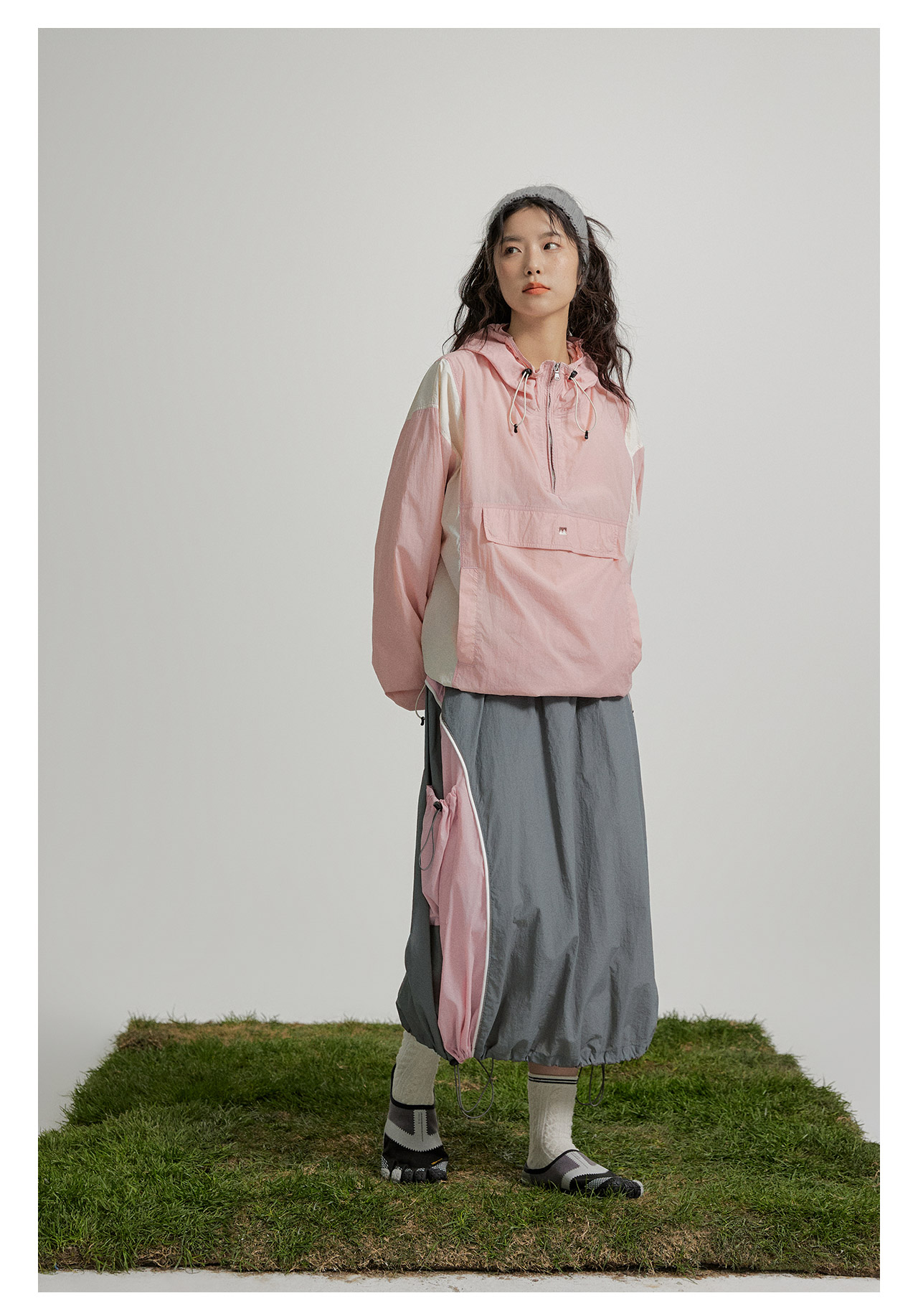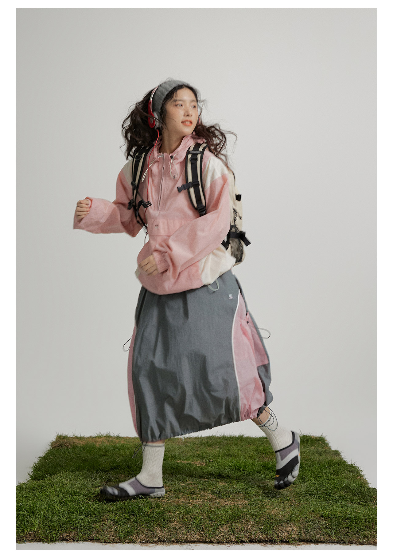 mostwantedlab彩虹/M2412002/春彩虹山脉户外梭织运动拼色多口袋松紧半身裙