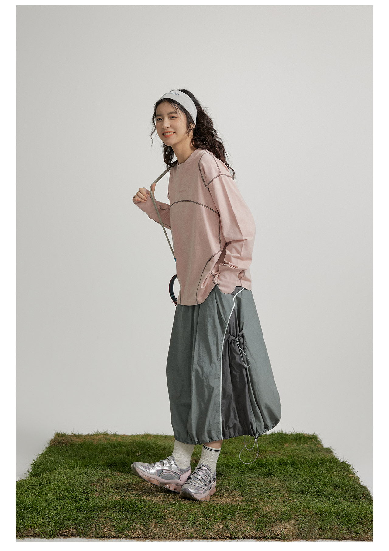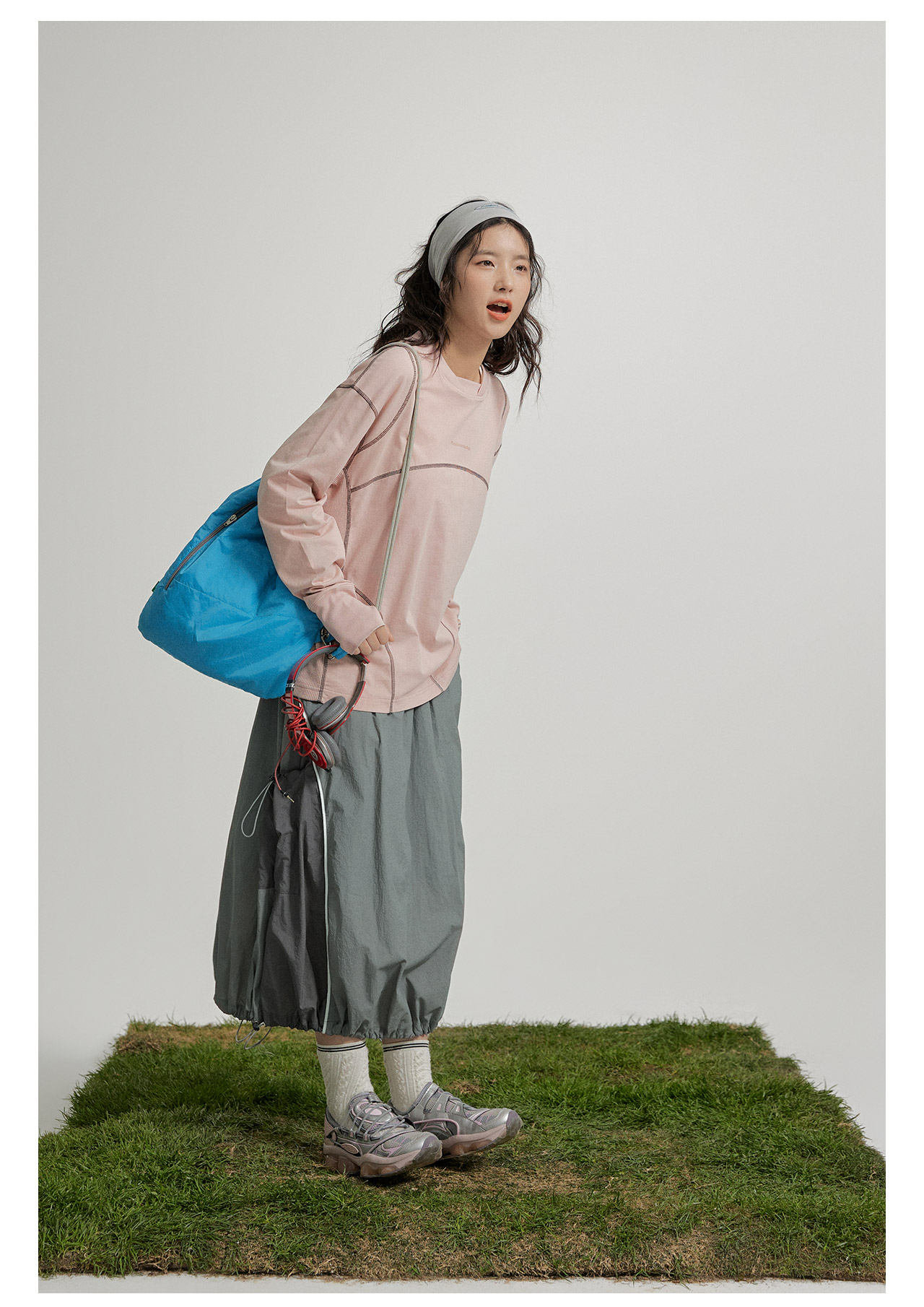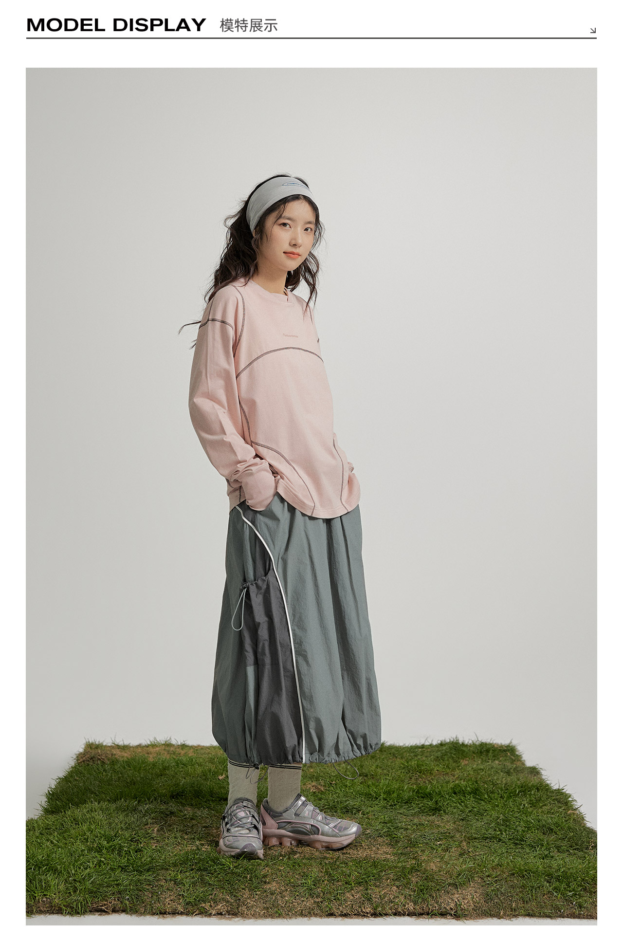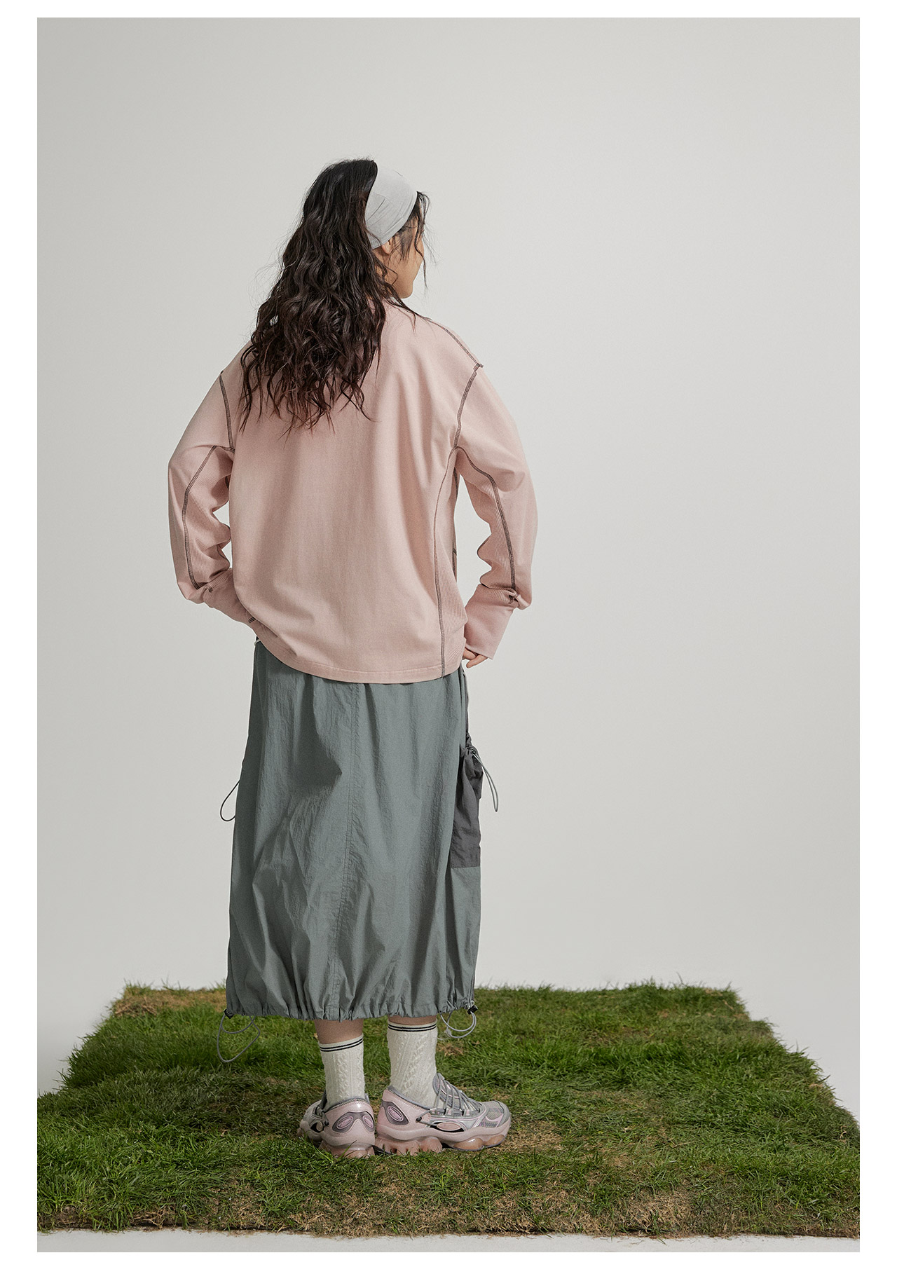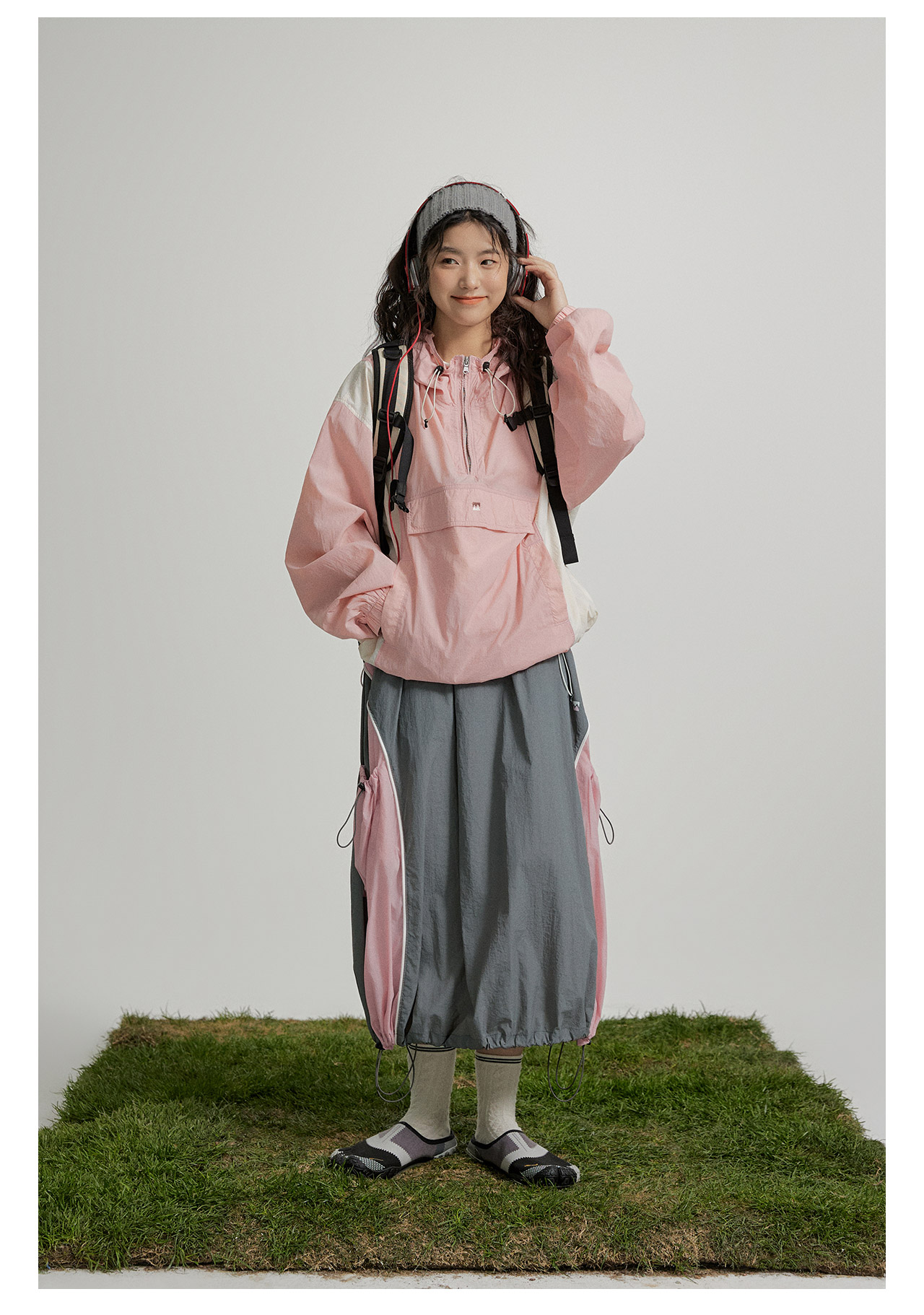 mostwantedlab彩虹/M2412002/春彩虹山脉户外梭织运动拼色多口袋松紧半身裙