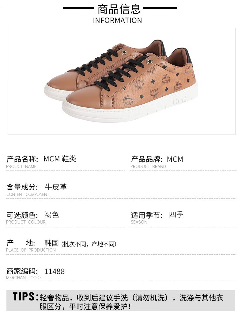 【超惠秒】MCM 男士经典百搭 干邑色 真皮 运动休闲鞋/板鞋 11488