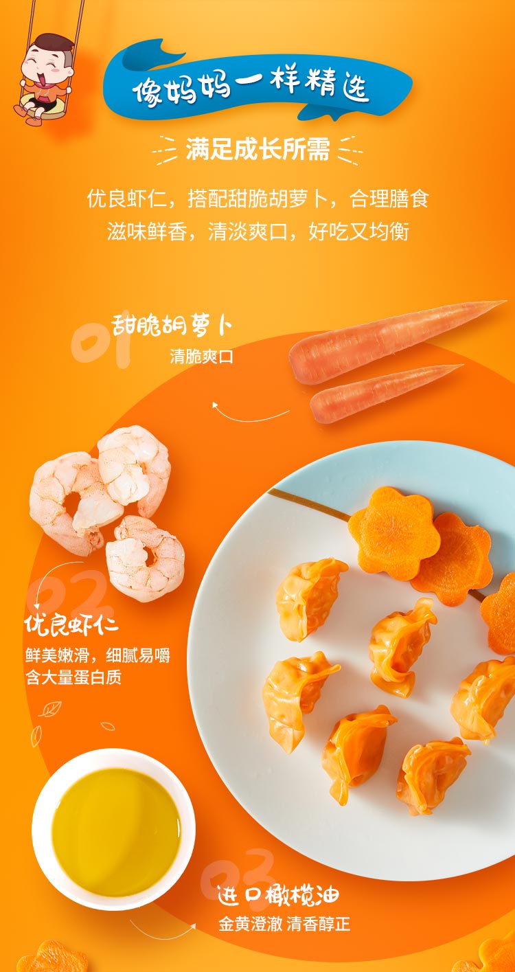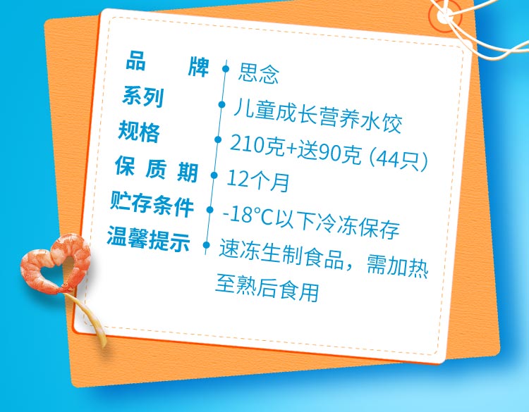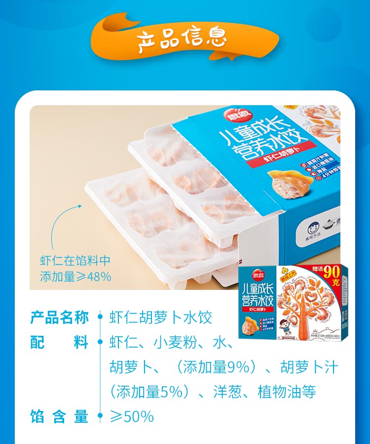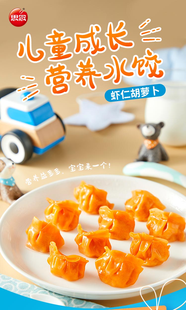 思念 水饺儿童水饺成长营养水饺 虾仁胡萝卜加量装210g