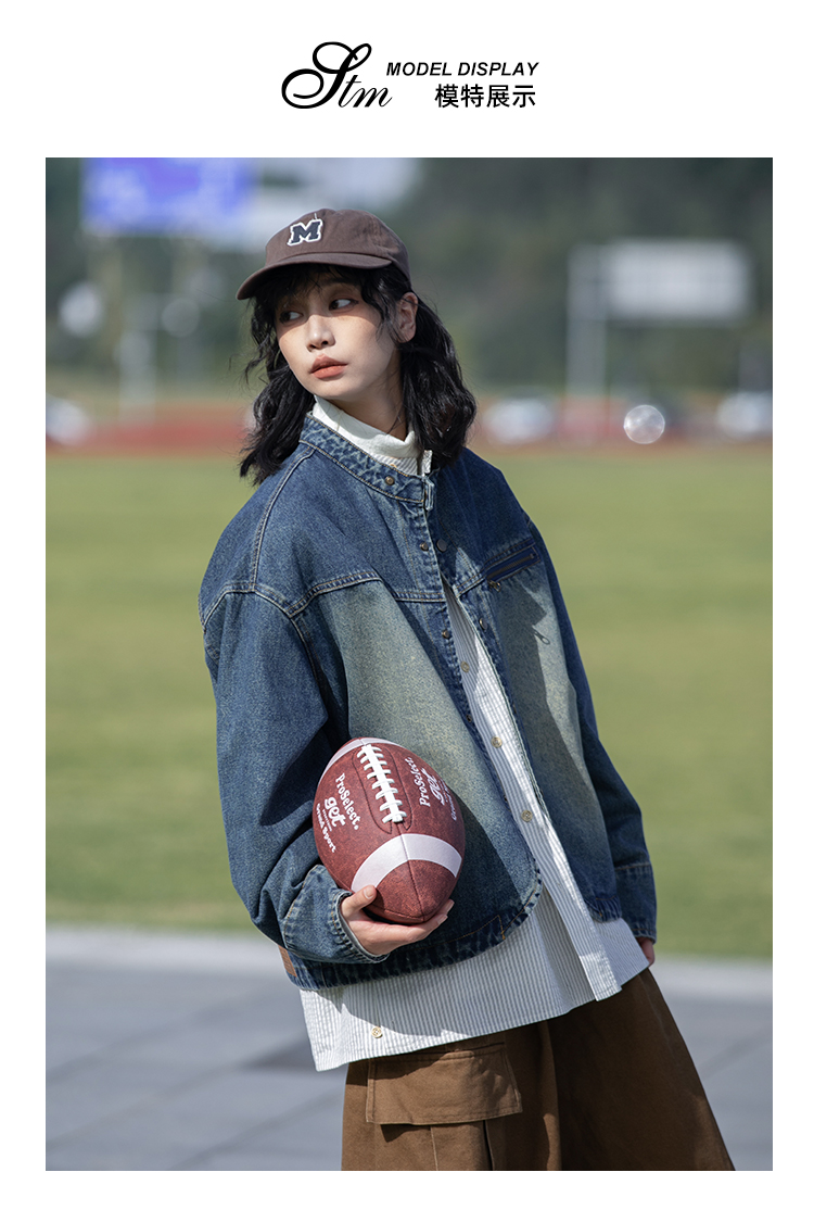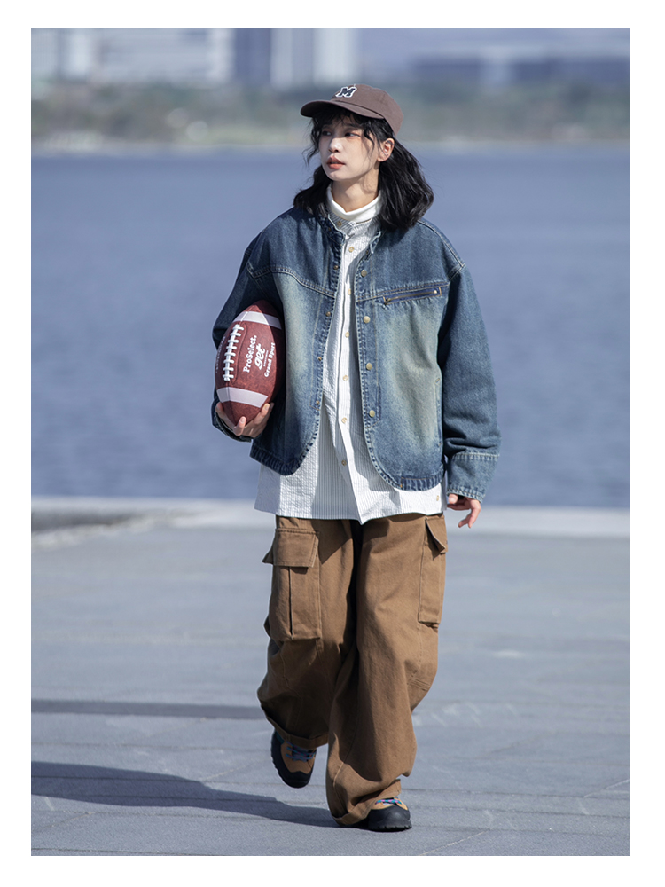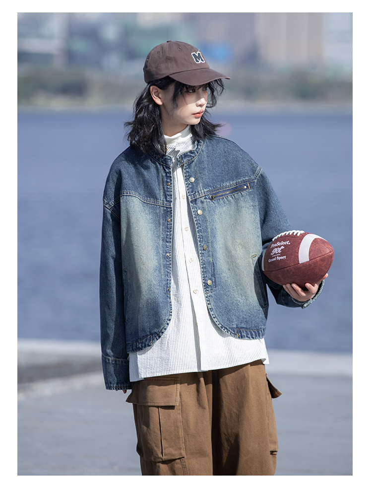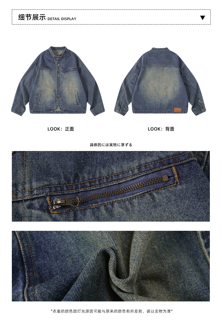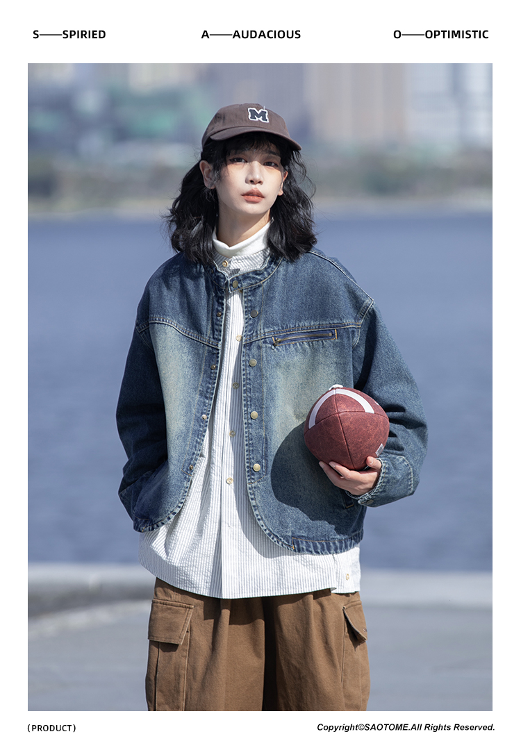 早乙女惠子saotome/STMJK231232/做旧水洗小立领牛仔夹克