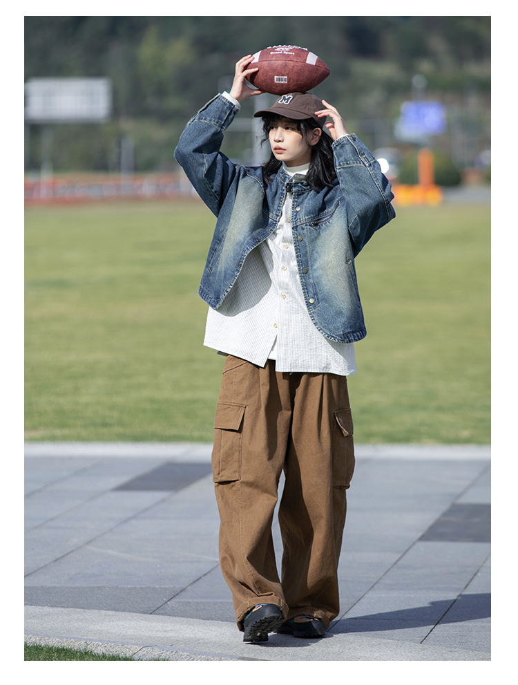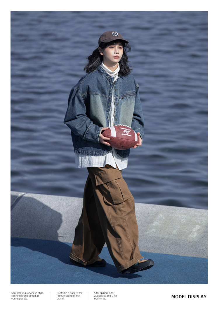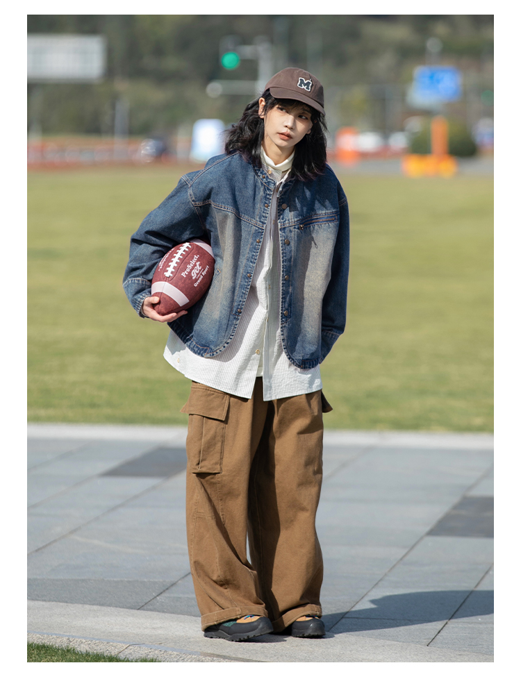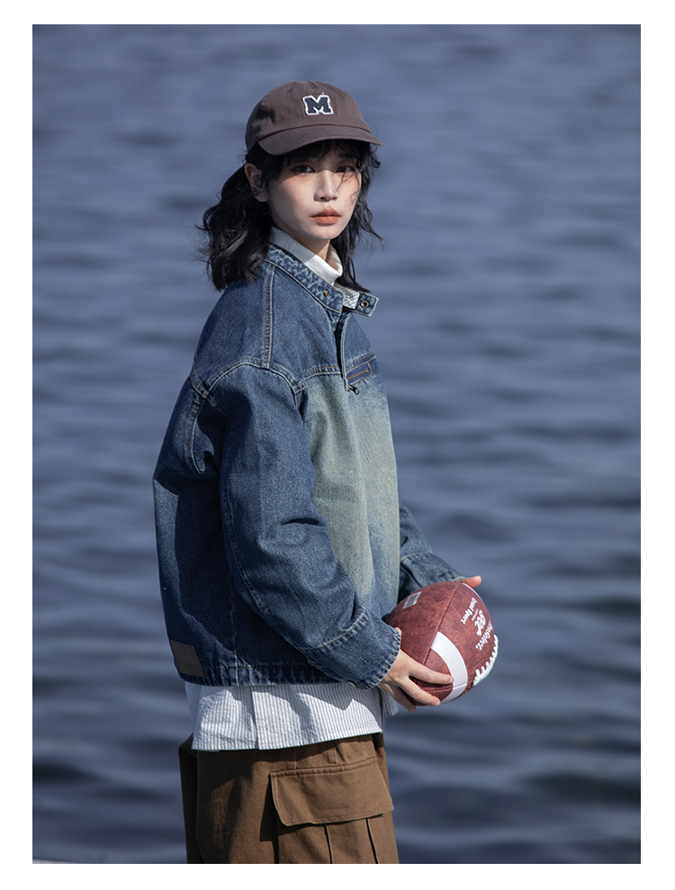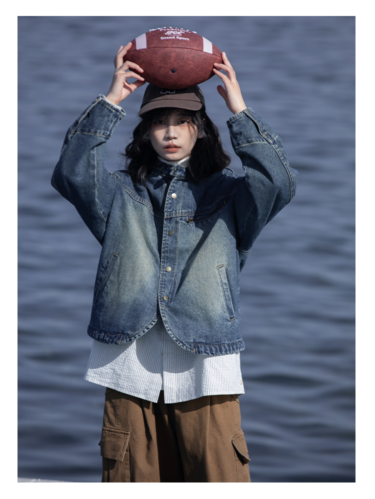 早乙女惠子saotome/STMJK231232/做旧水洗小立领牛仔夹克