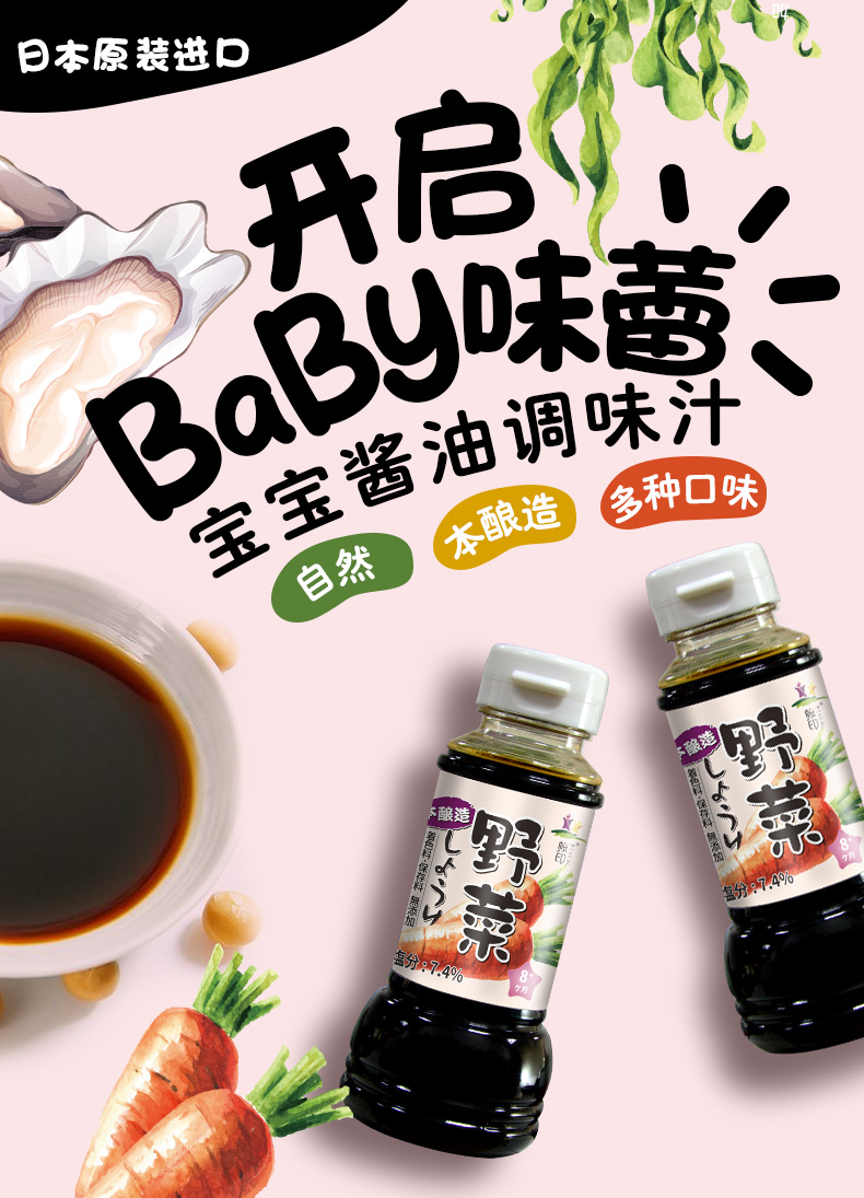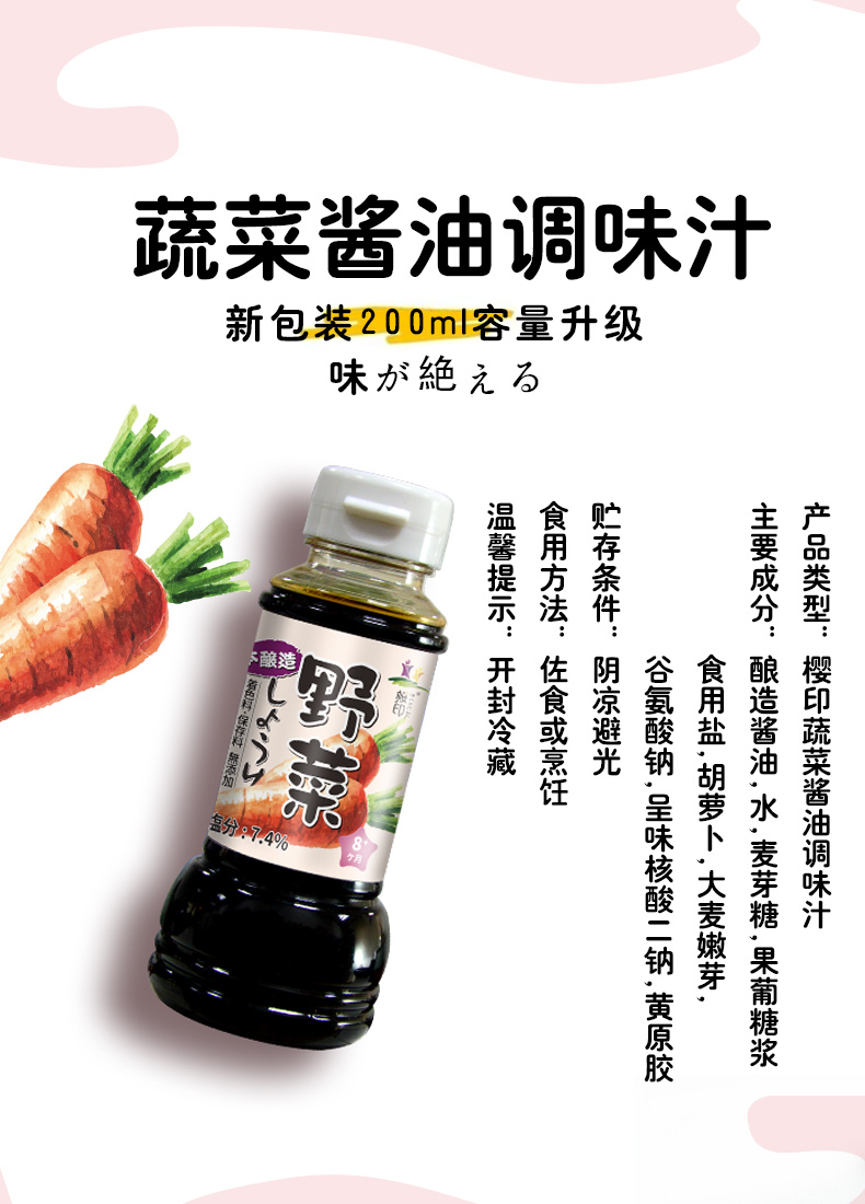 樱印(桜印)日本原装进口宝宝儿童辅食蔬菜酱油调味汁200ml/瓶