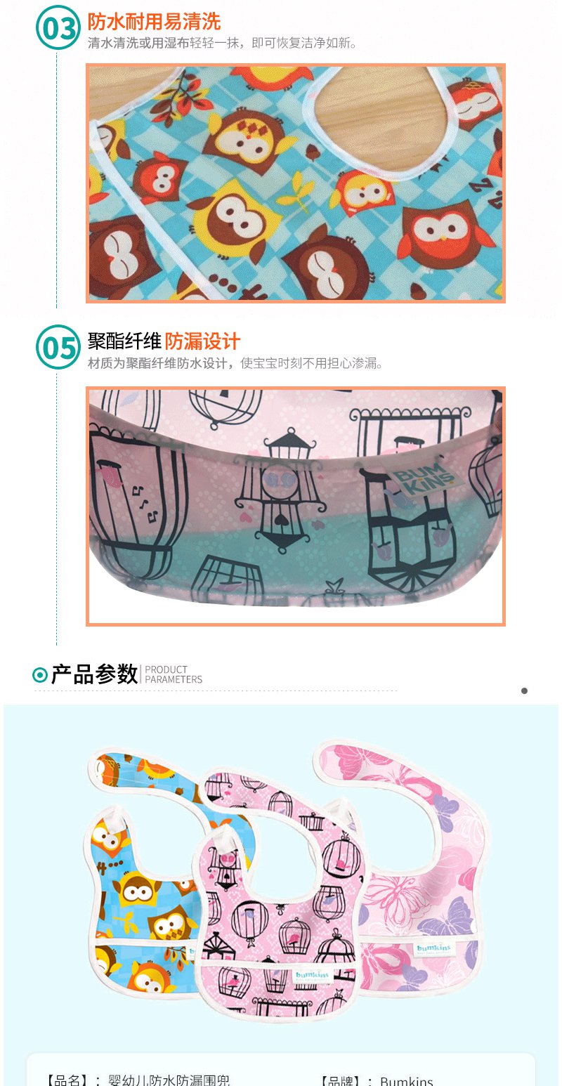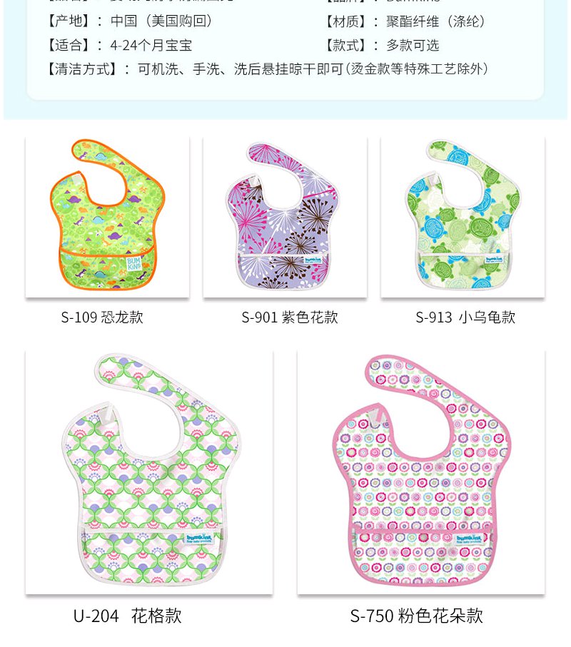 Bumkins食饭兜防水喂男女婴儿童超小孩口水巾围嘴软宝宝吃饭围兜