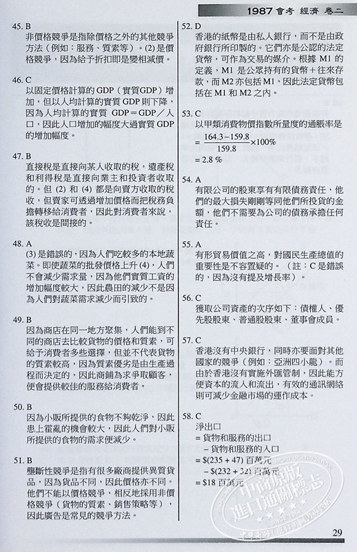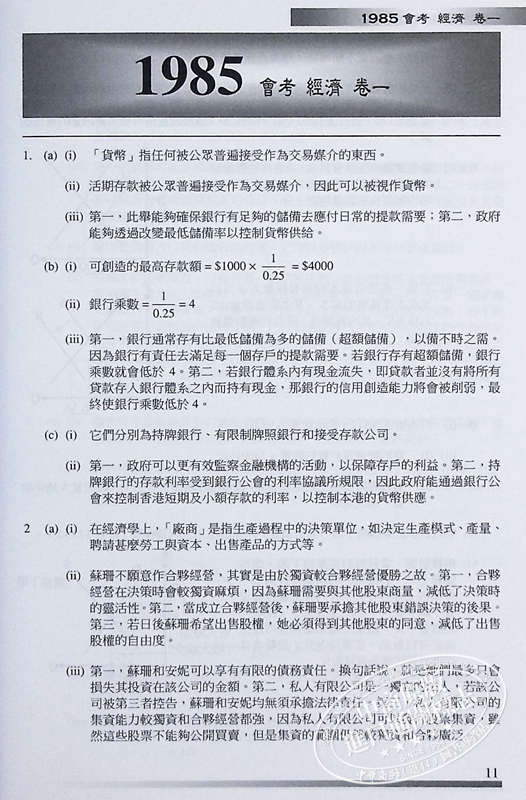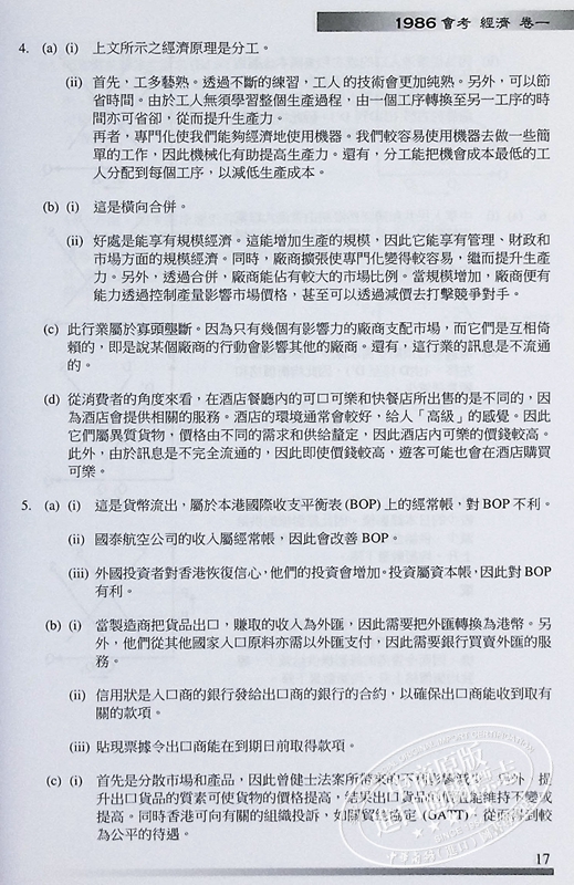 【中商原版】香港中学文凭试 经济 历年真题答案文憑試 經濟 相關試題參考答案
