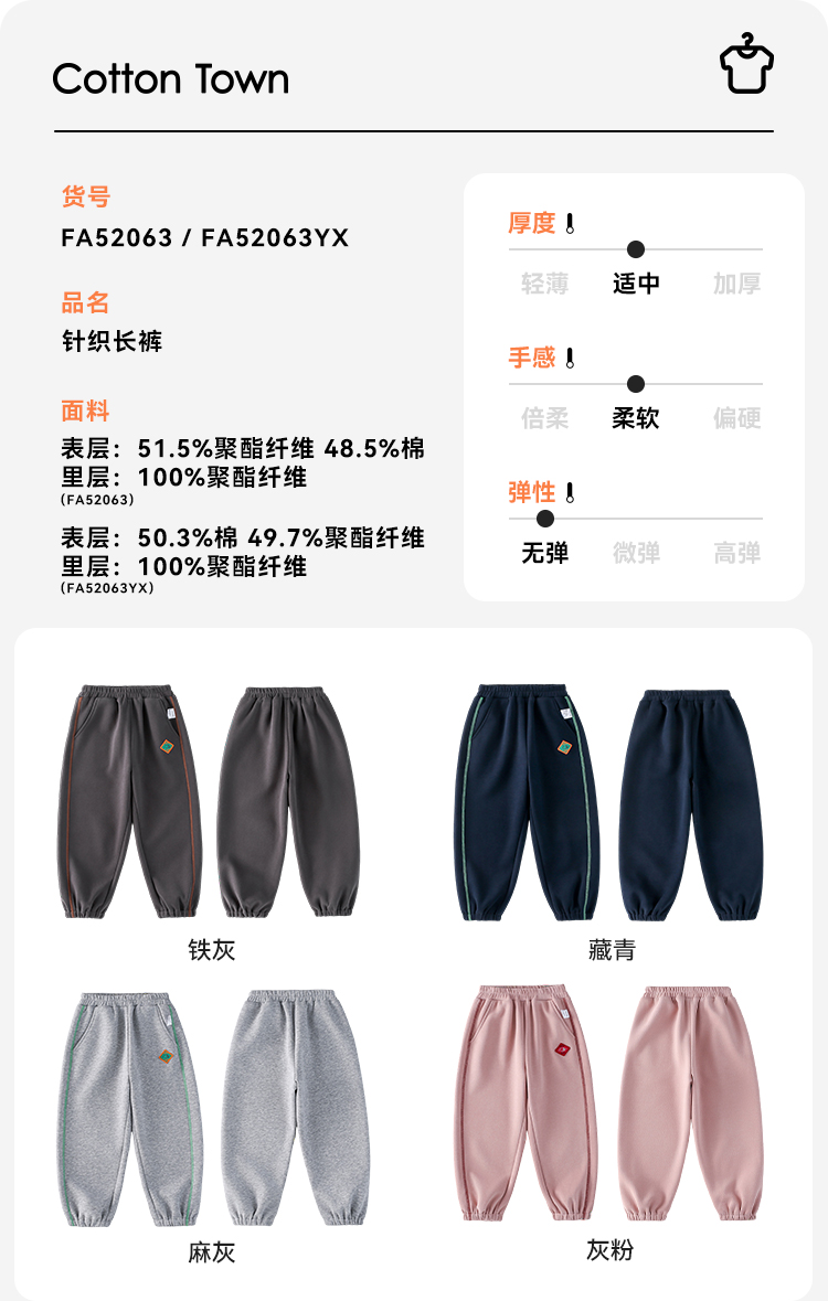 【7A抗菌】棉花堂25年户外针织童装长裤FA52116YX
