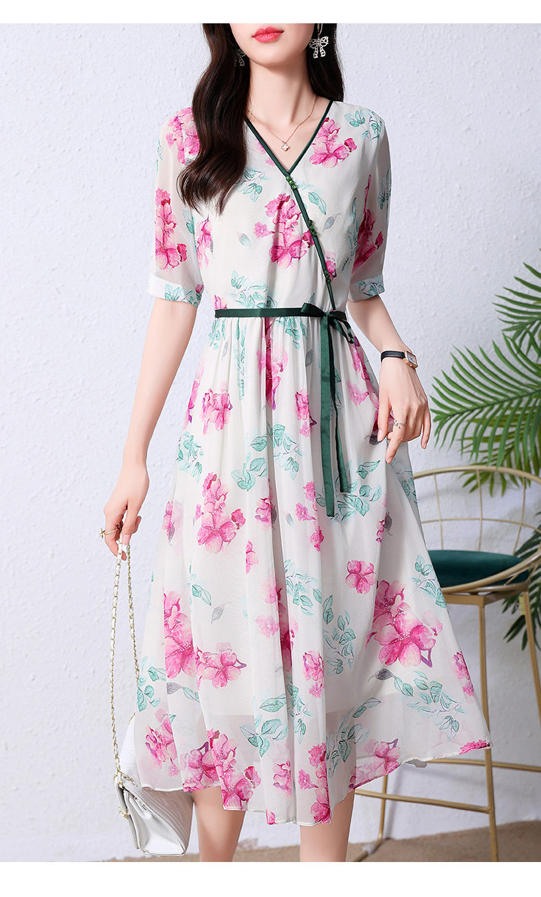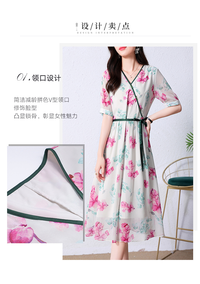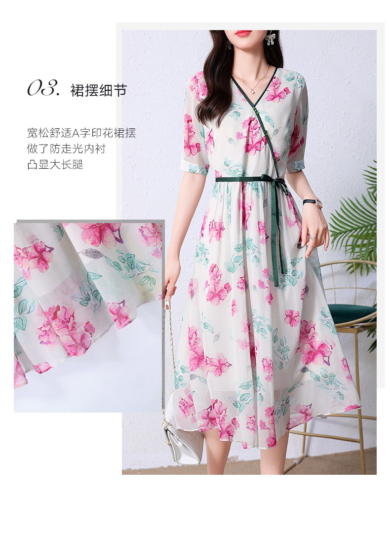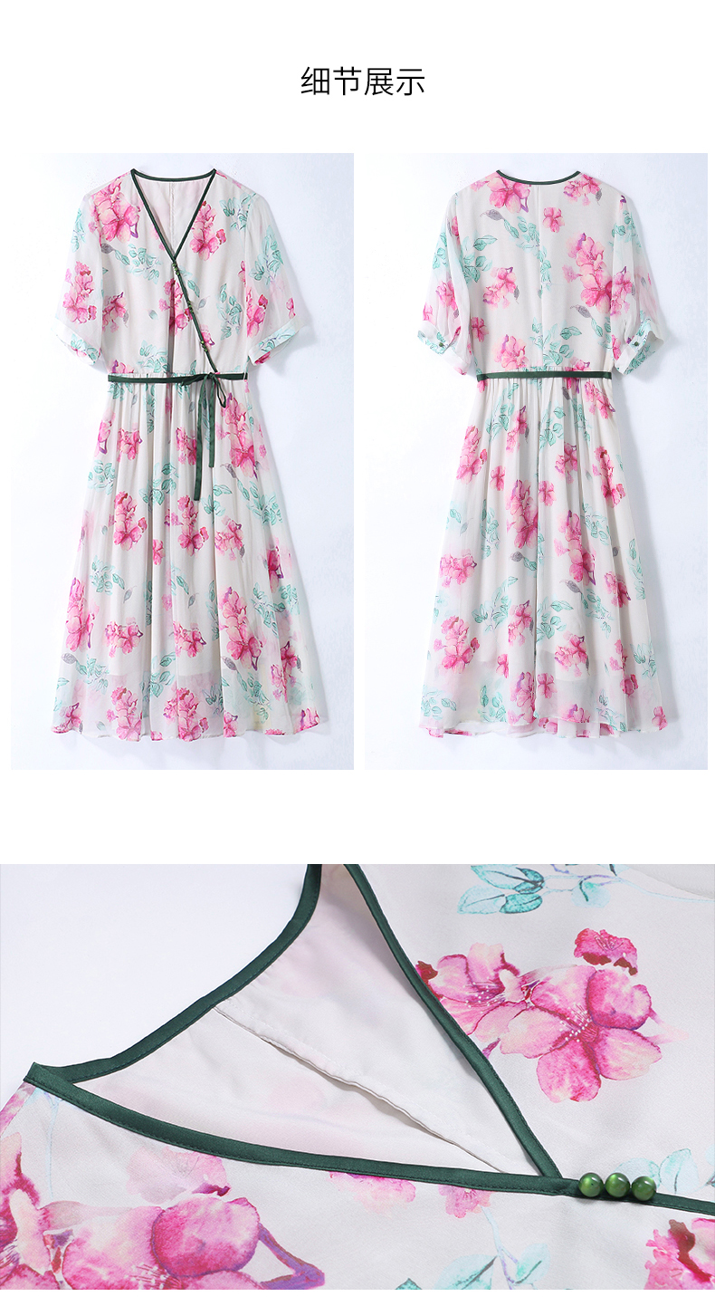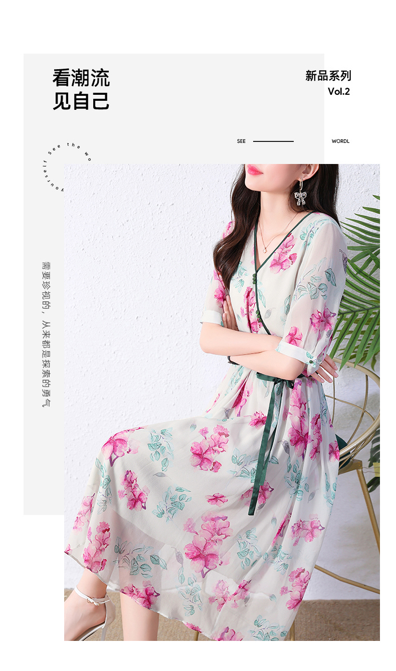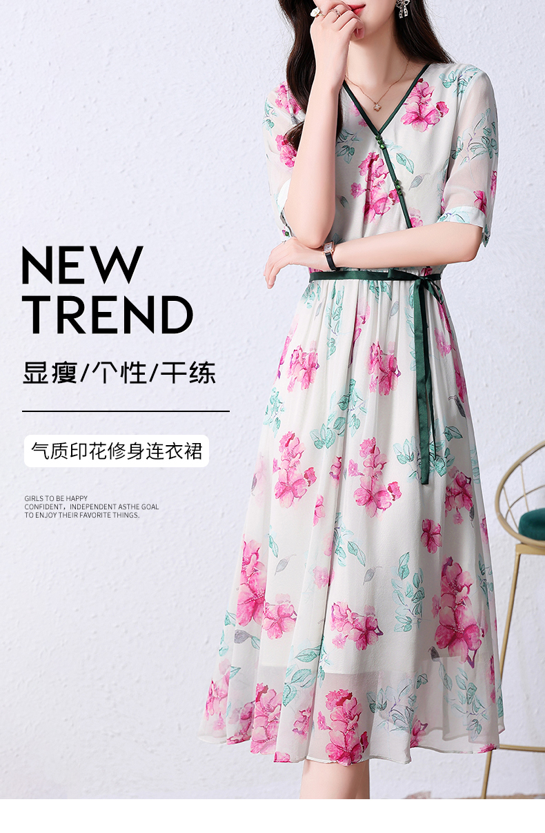 气质印花修身时尚,2022新款夏季短袖碎花改良旗袍别致连衣裙 HRYZ7828