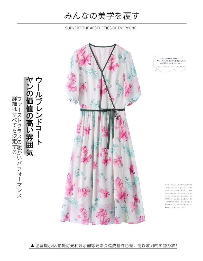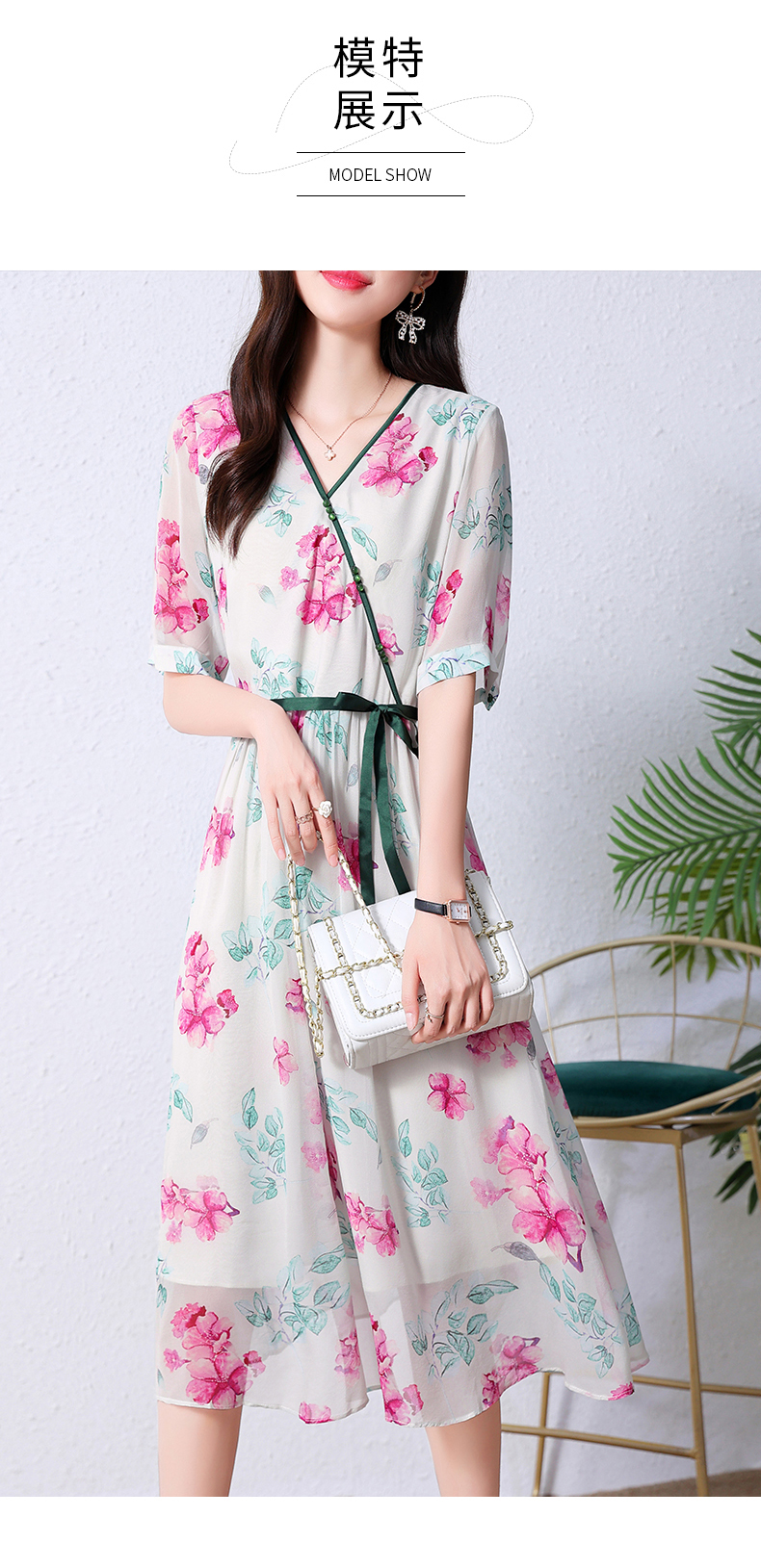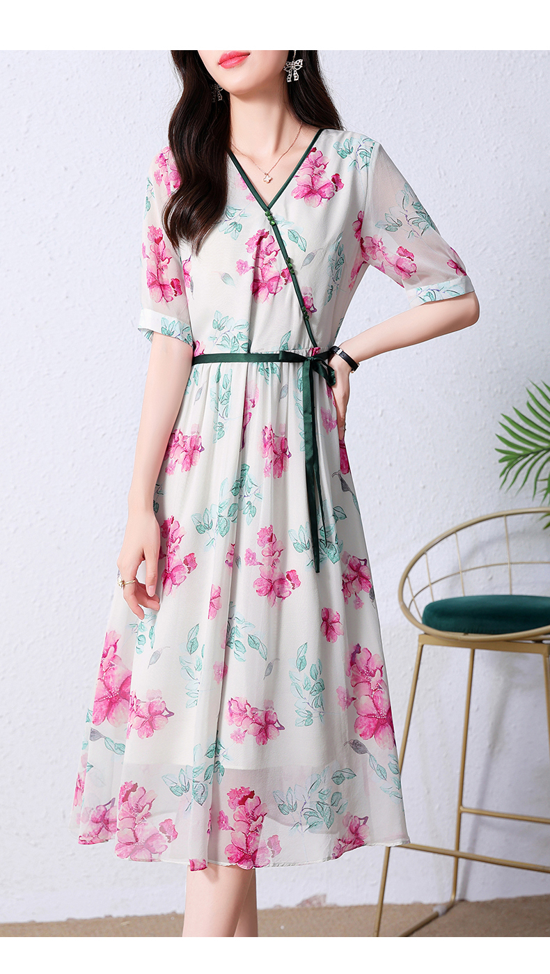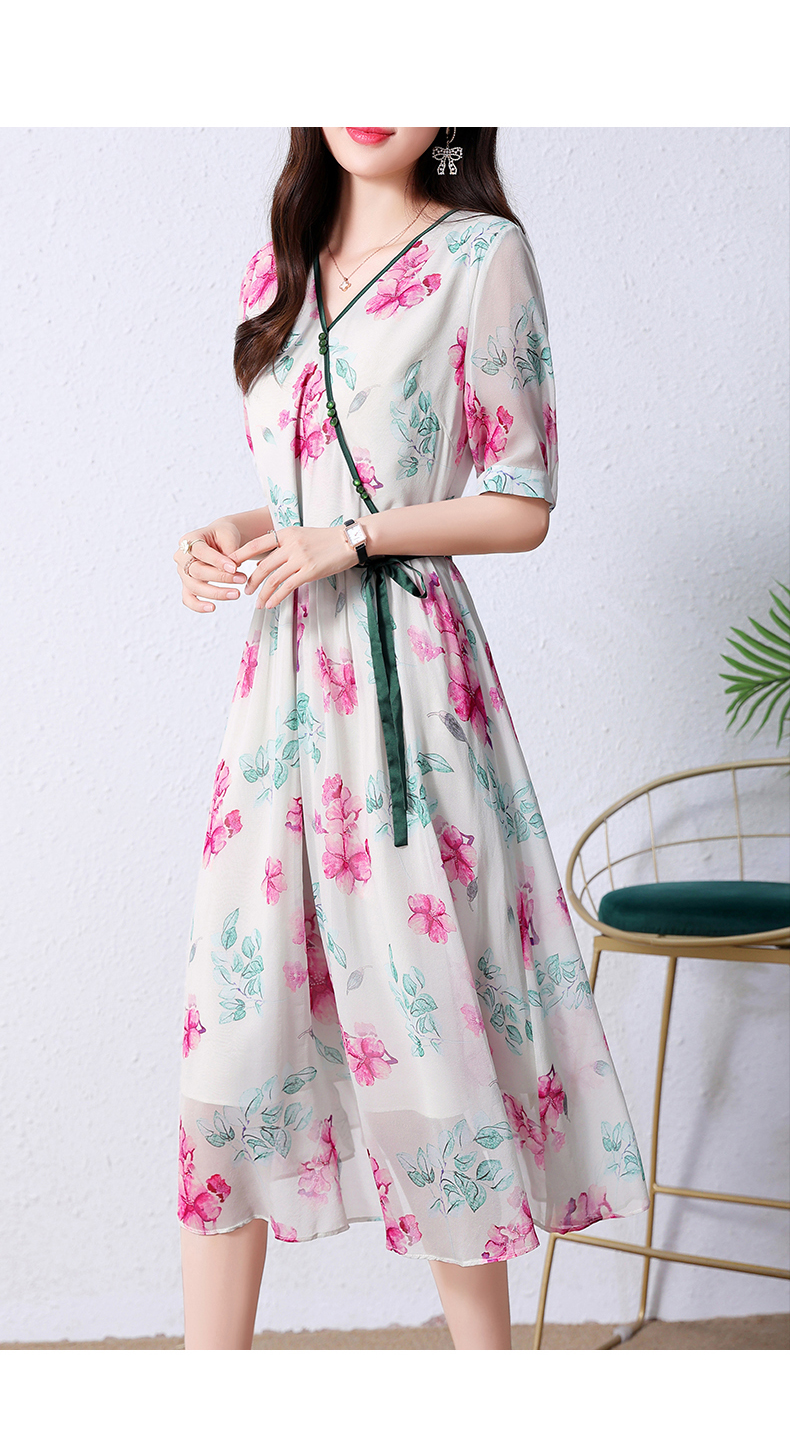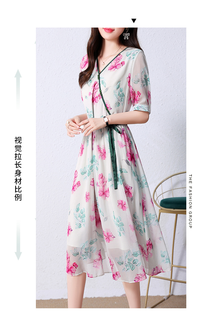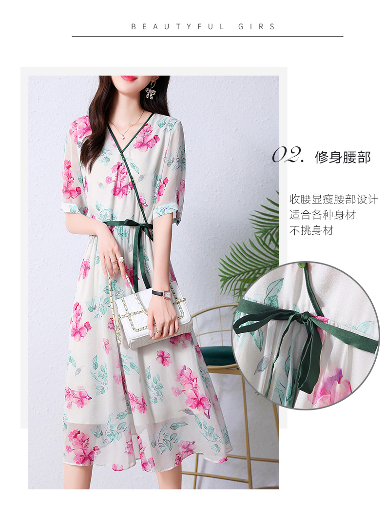 气质印花修身时尚,2022新款夏季短袖碎花改良旗袍别致连衣裙 HRYZ7828