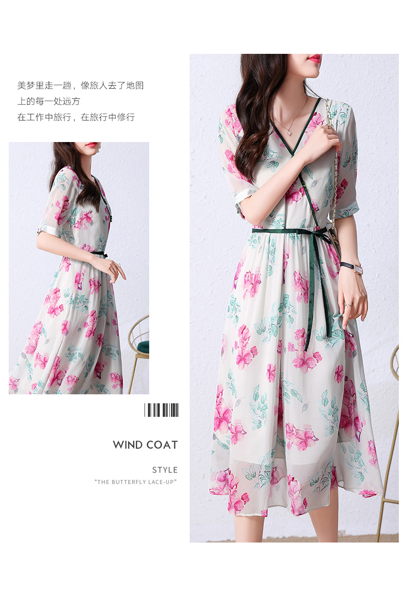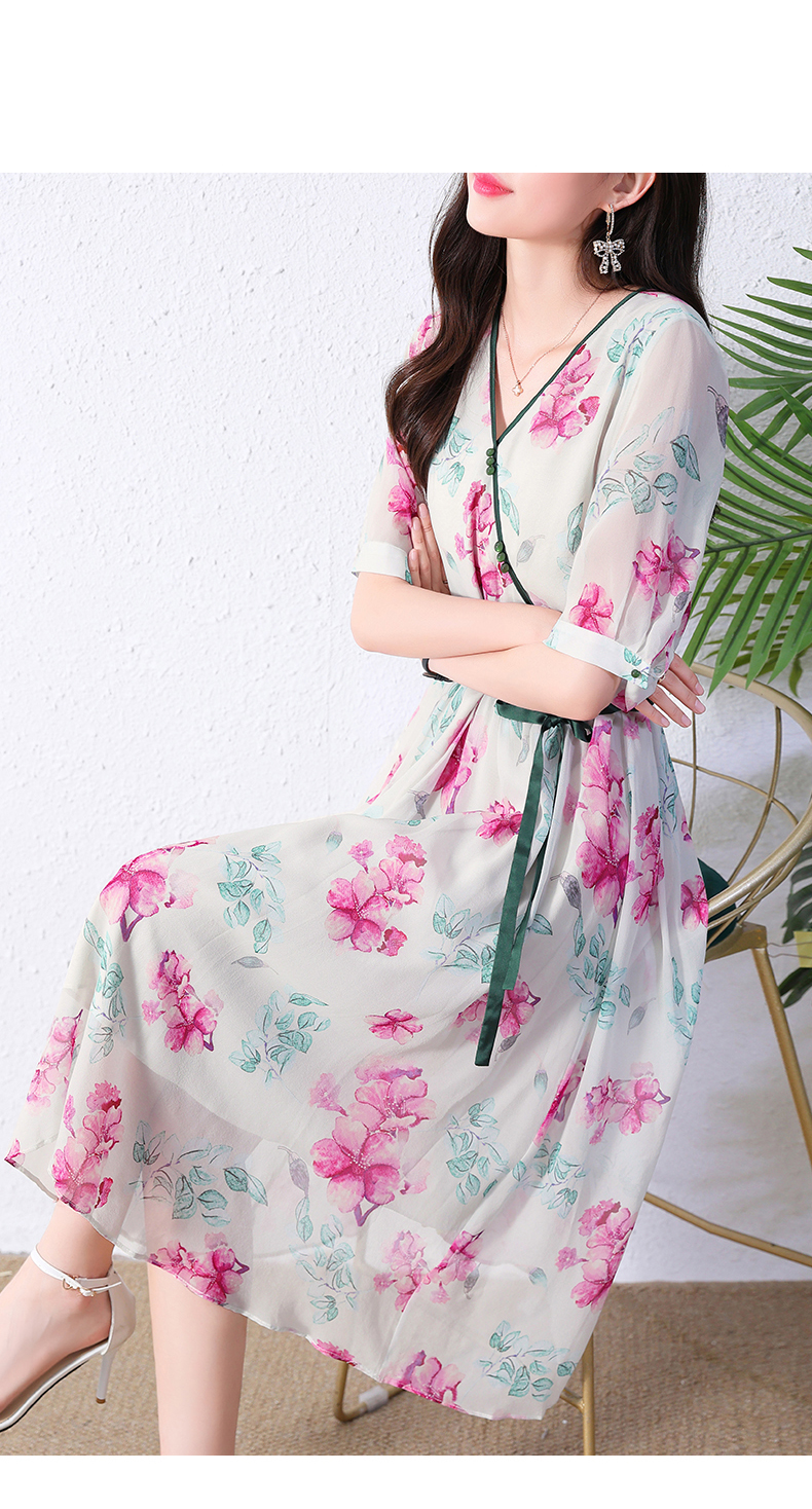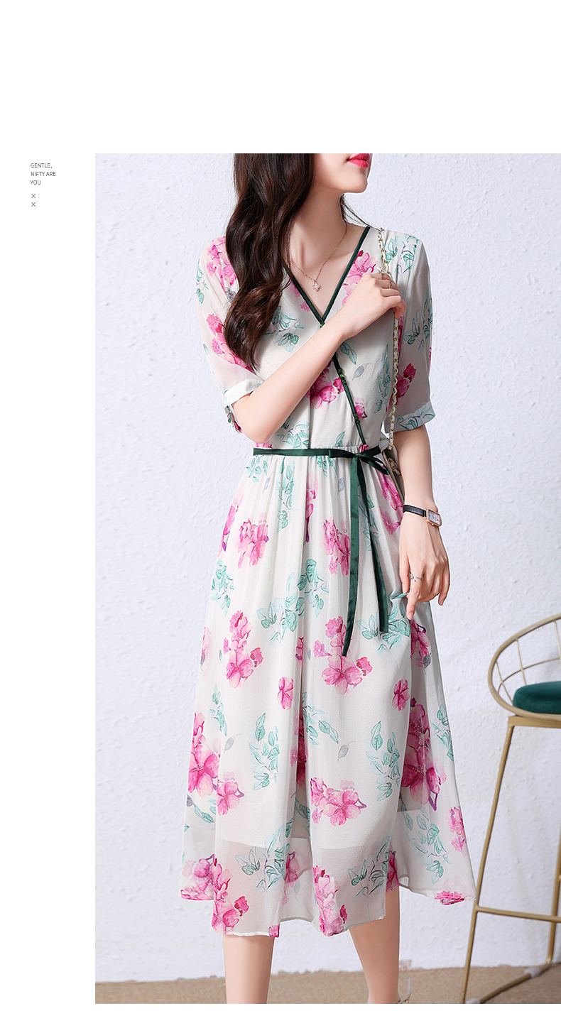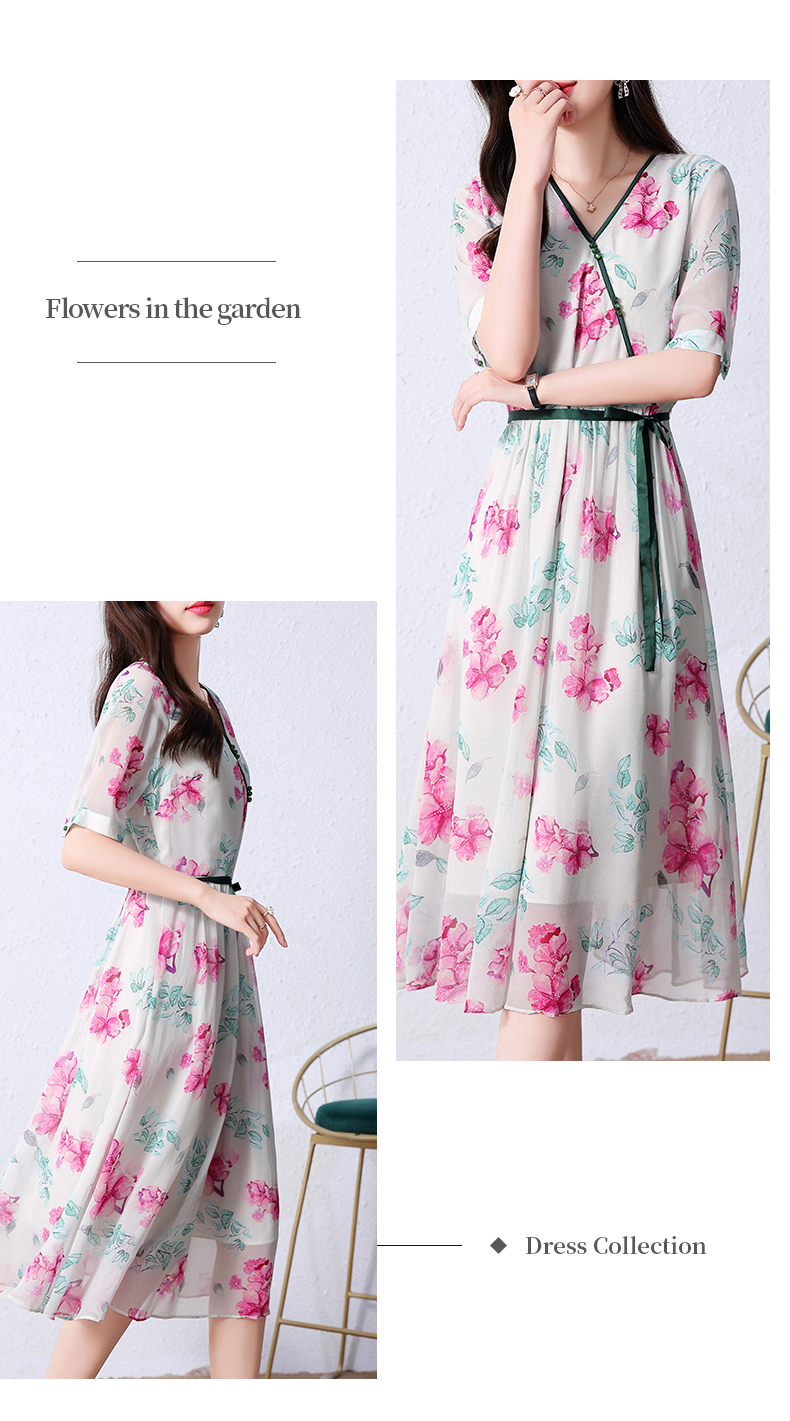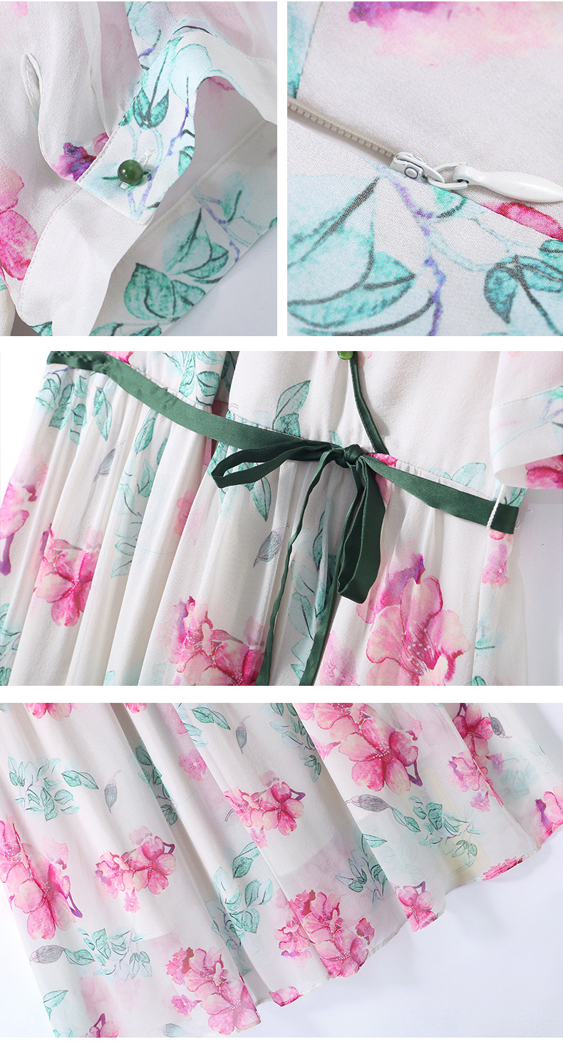 气质印花修身时尚,2022新款夏季短袖碎花改良旗袍别致连衣裙 HRYZ7828