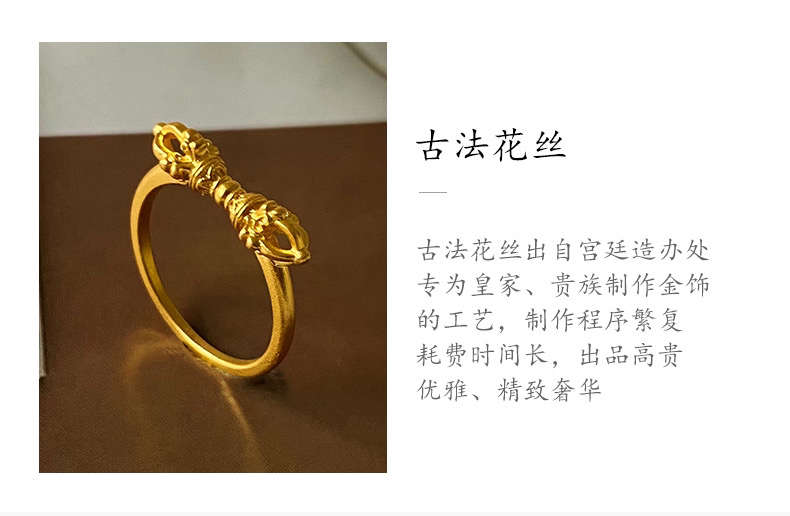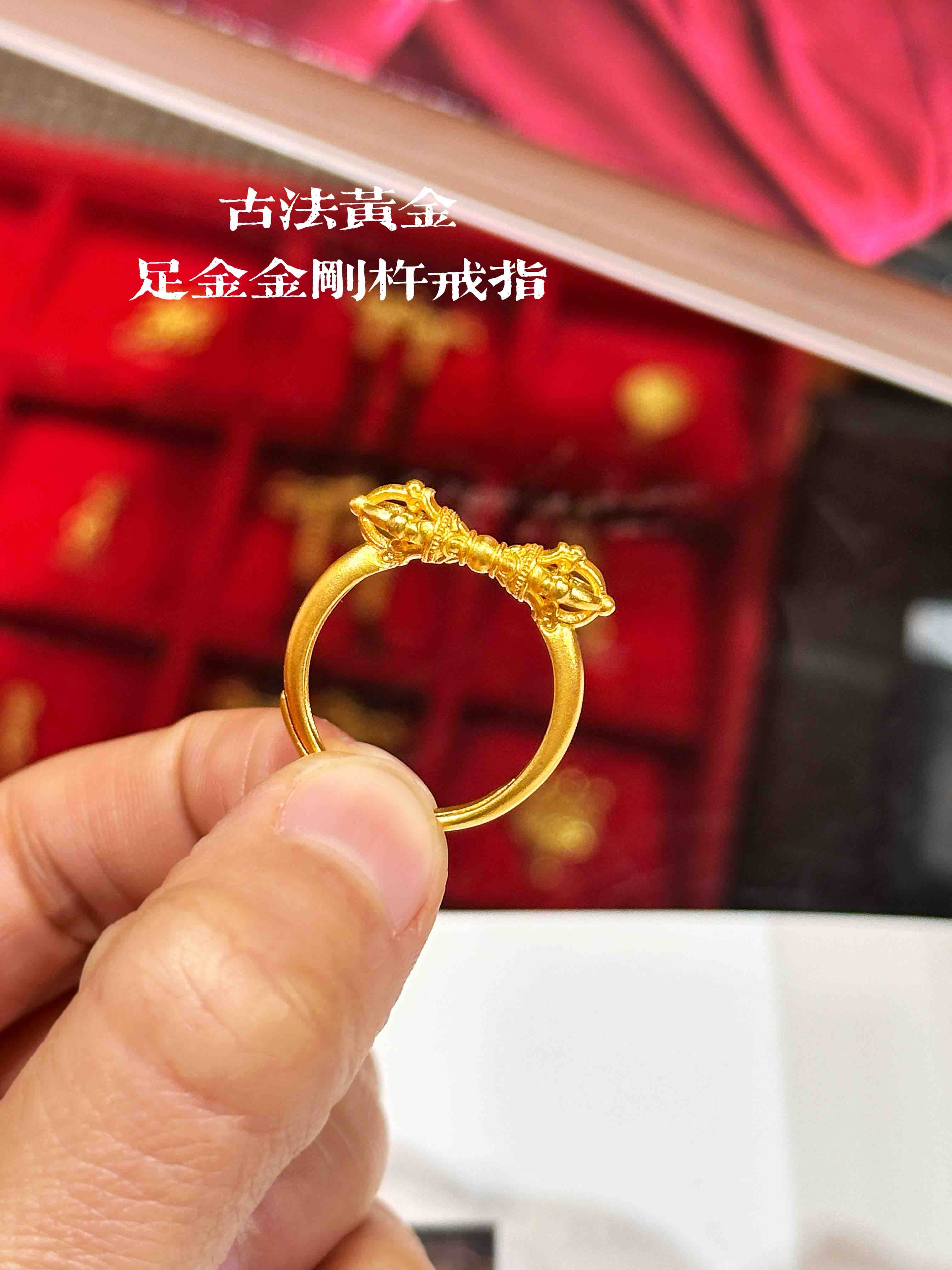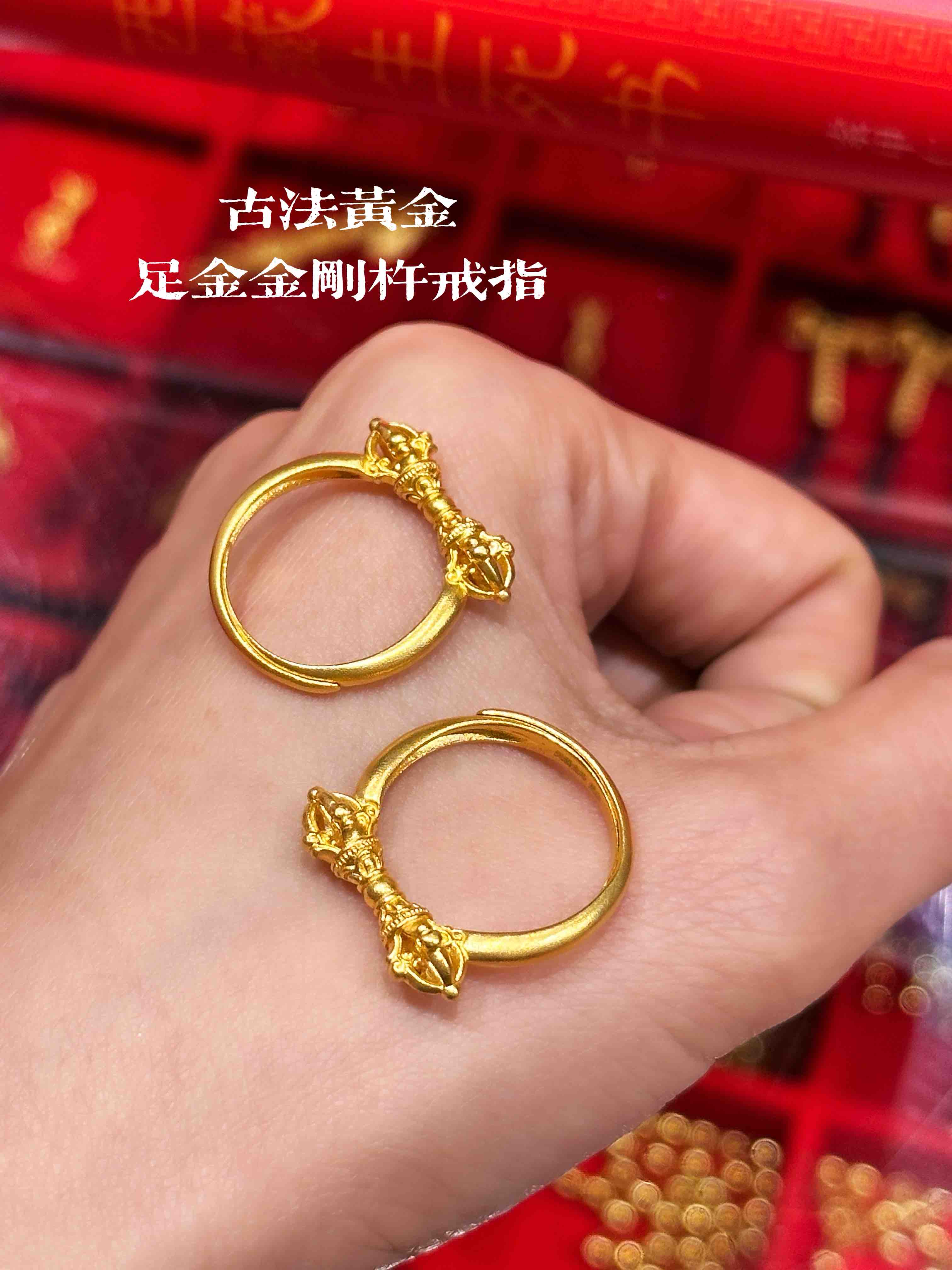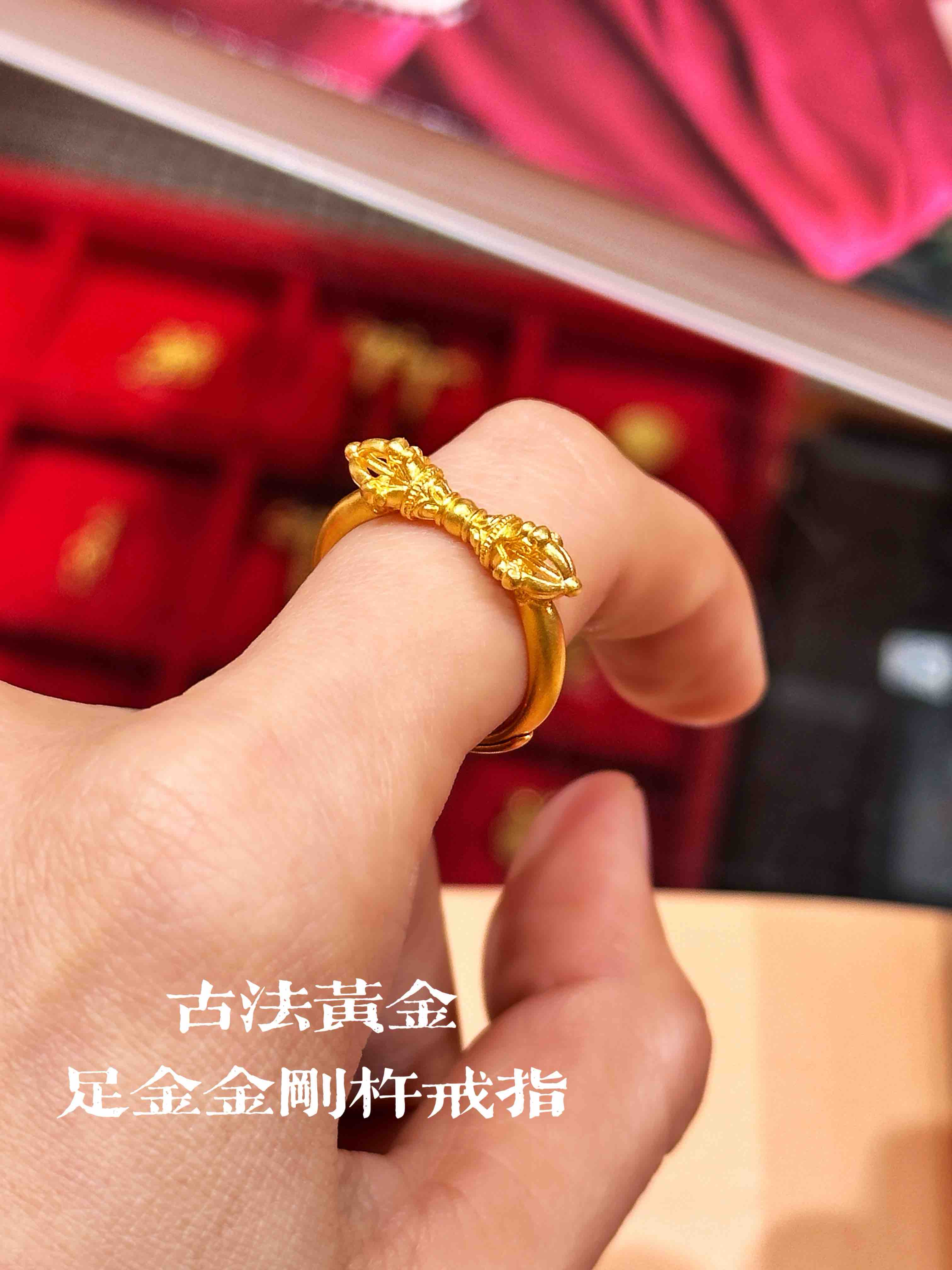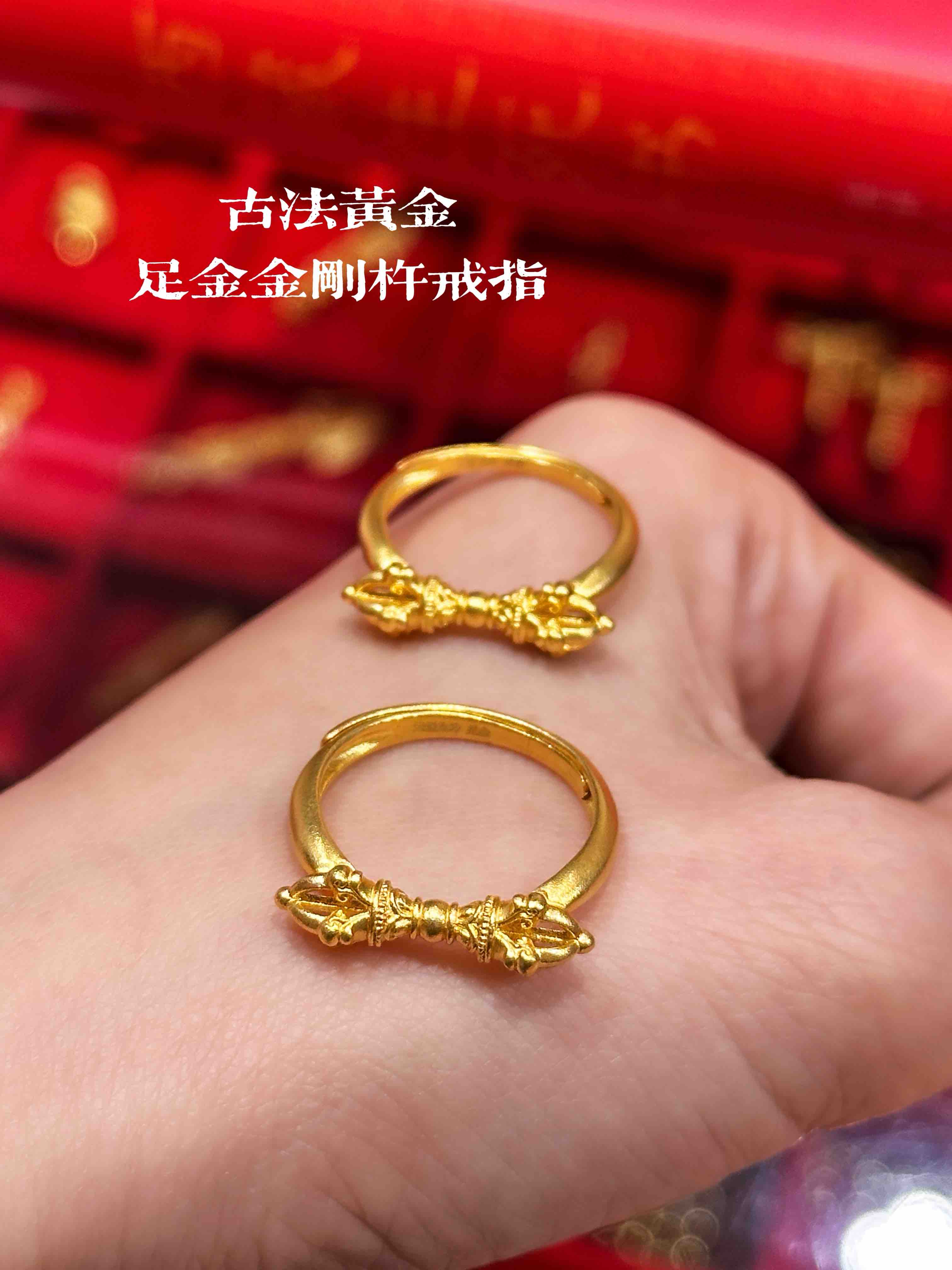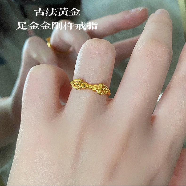 天语龙吟定制款古法工艺古法黄金戒指足金黄金金刚杵戒指实心古法金足金金刚杵戒指黄金首饰男女饰品