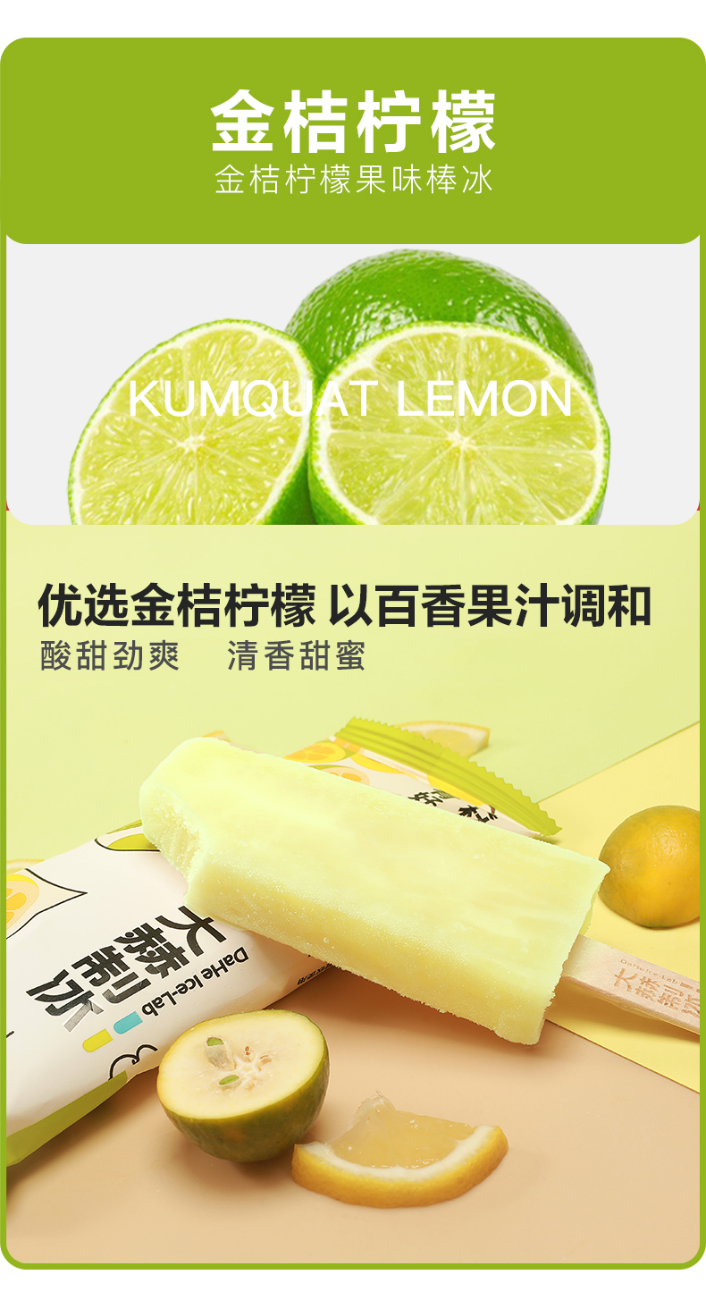 大赫制冰金桔柠檬冰棒75g/130251 酸甜劲爽清香甜蜜 以百香果汁调和