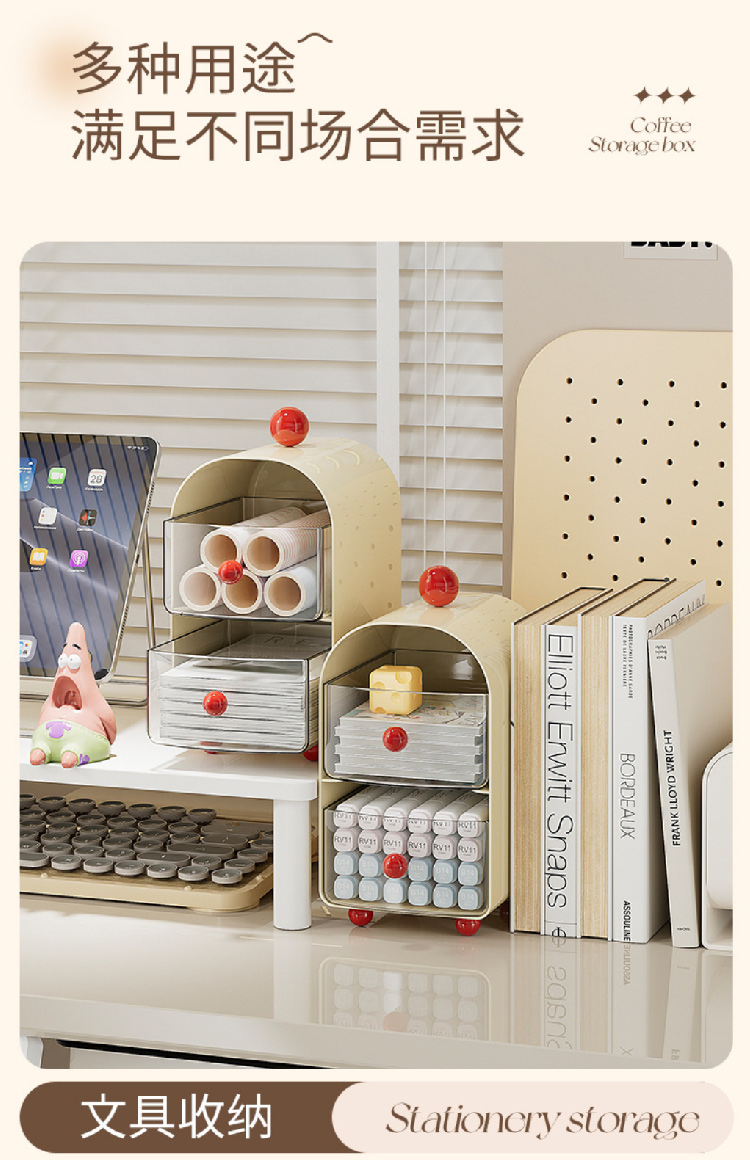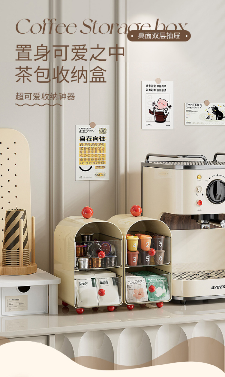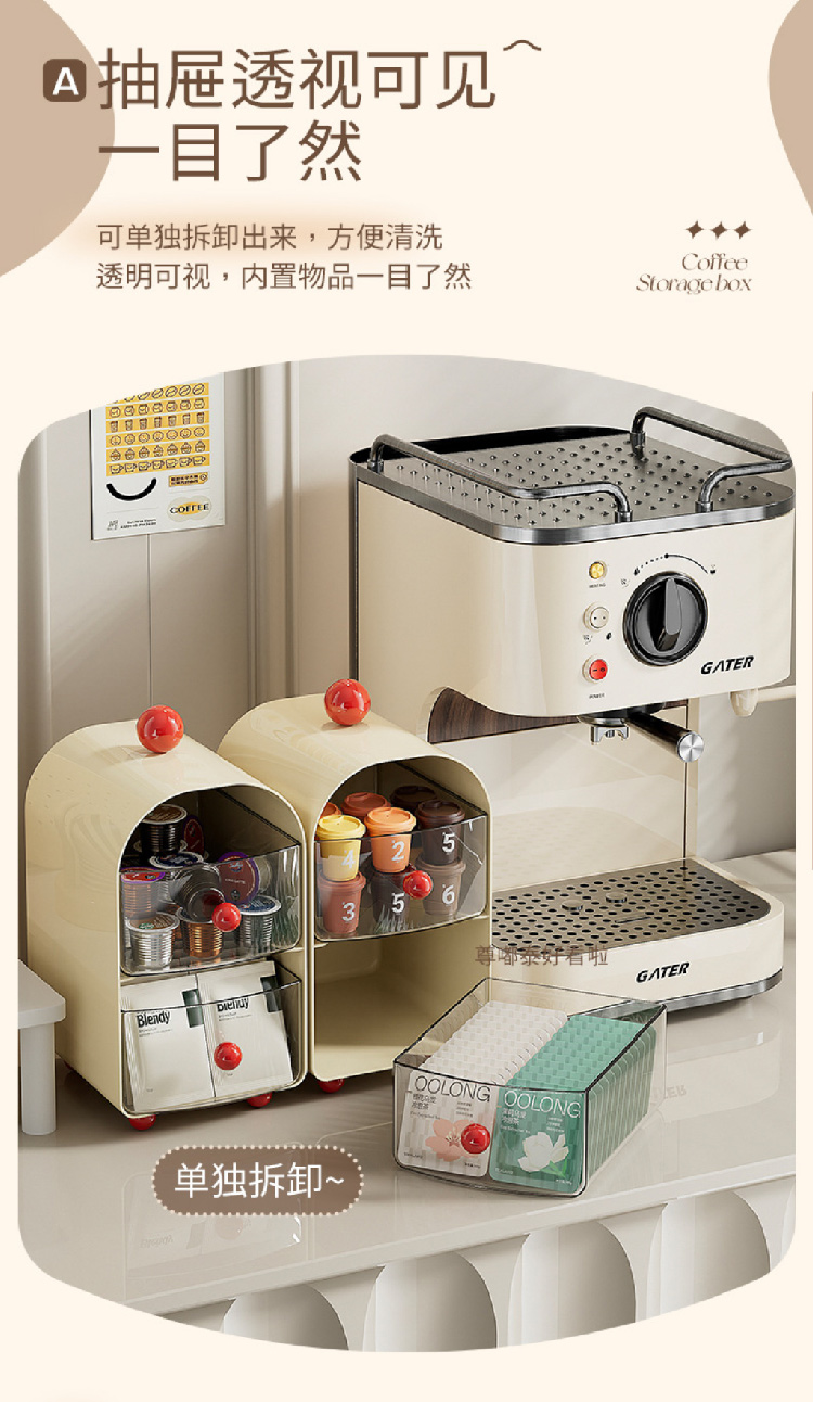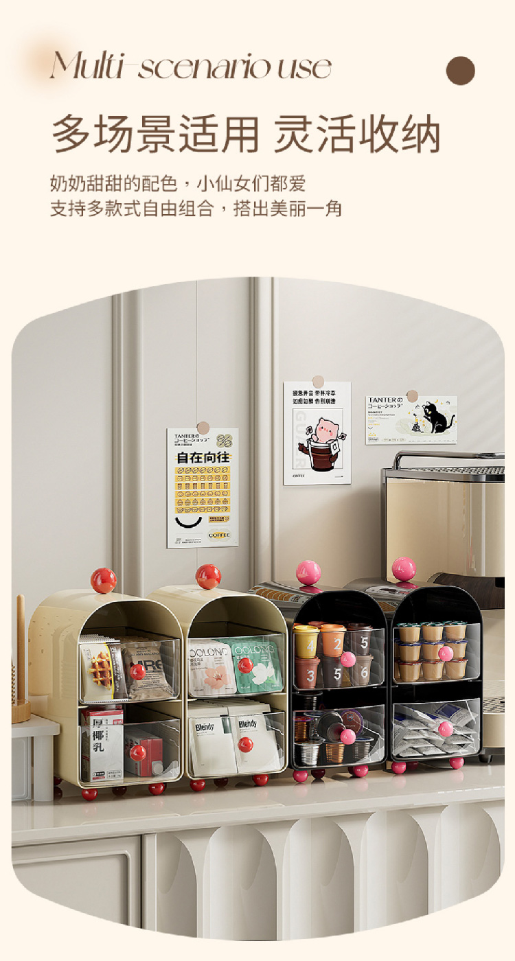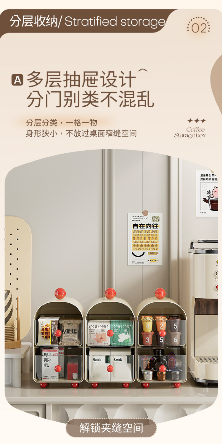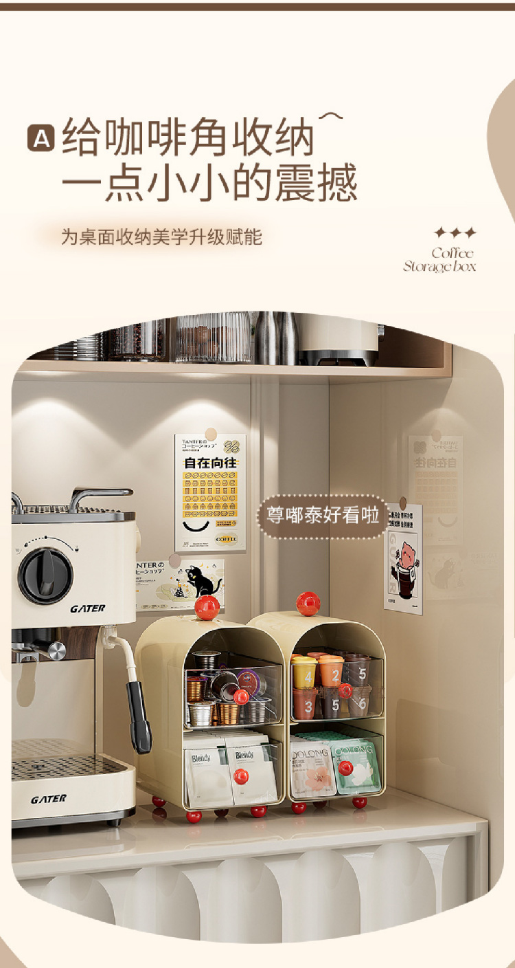 【日式多层收纳柜】化妆品零食收纳盒茶水间咖啡胶囊置物架 办公室吧台多层茶叶整理盒