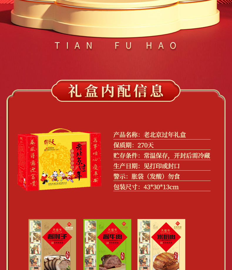 【天福号 老北京过年礼盒】天福美味礼盒1550g 老北京过年礼盒1550g