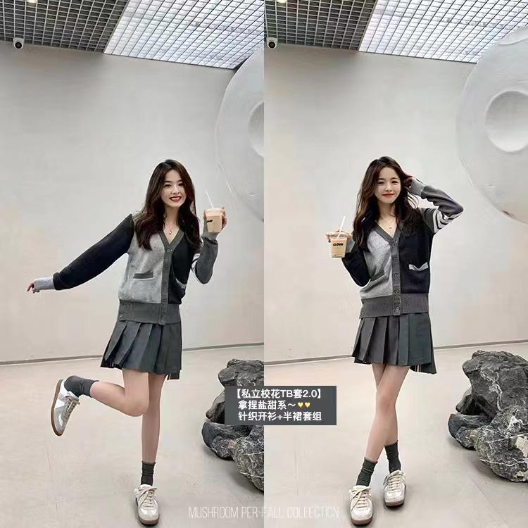 金蘑菇菇【私立校花tb套2.0】拿捏盐甜系!针织开衫+半裙百褶套装