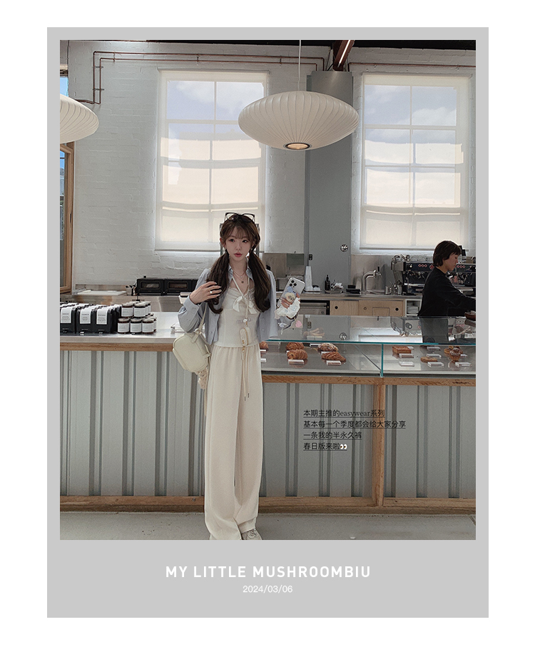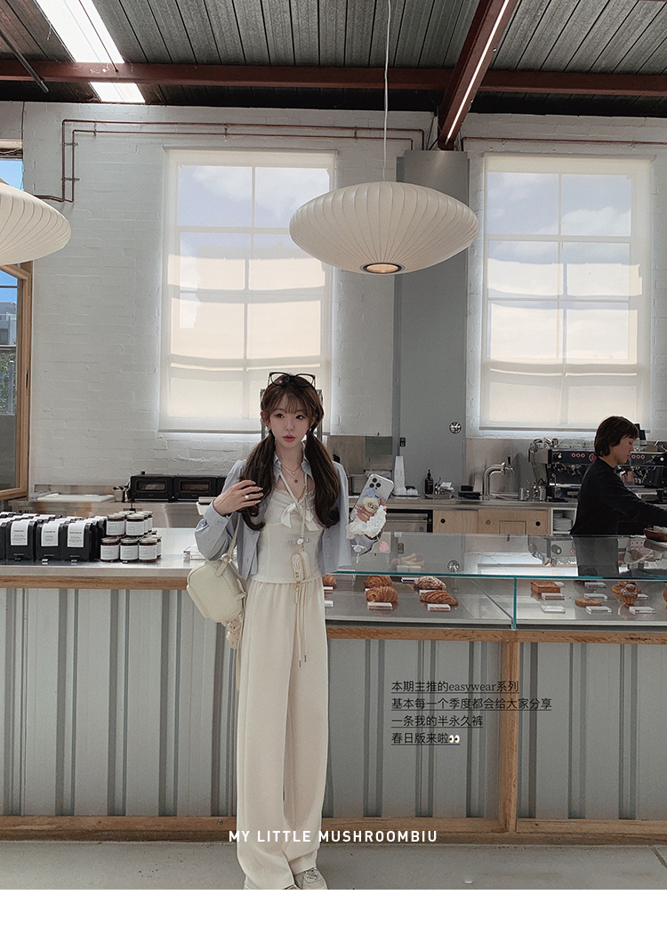 材质:裤:59.83%棉 37.97%6聚酯纤维 2,2%氨纶衬衫:100棉